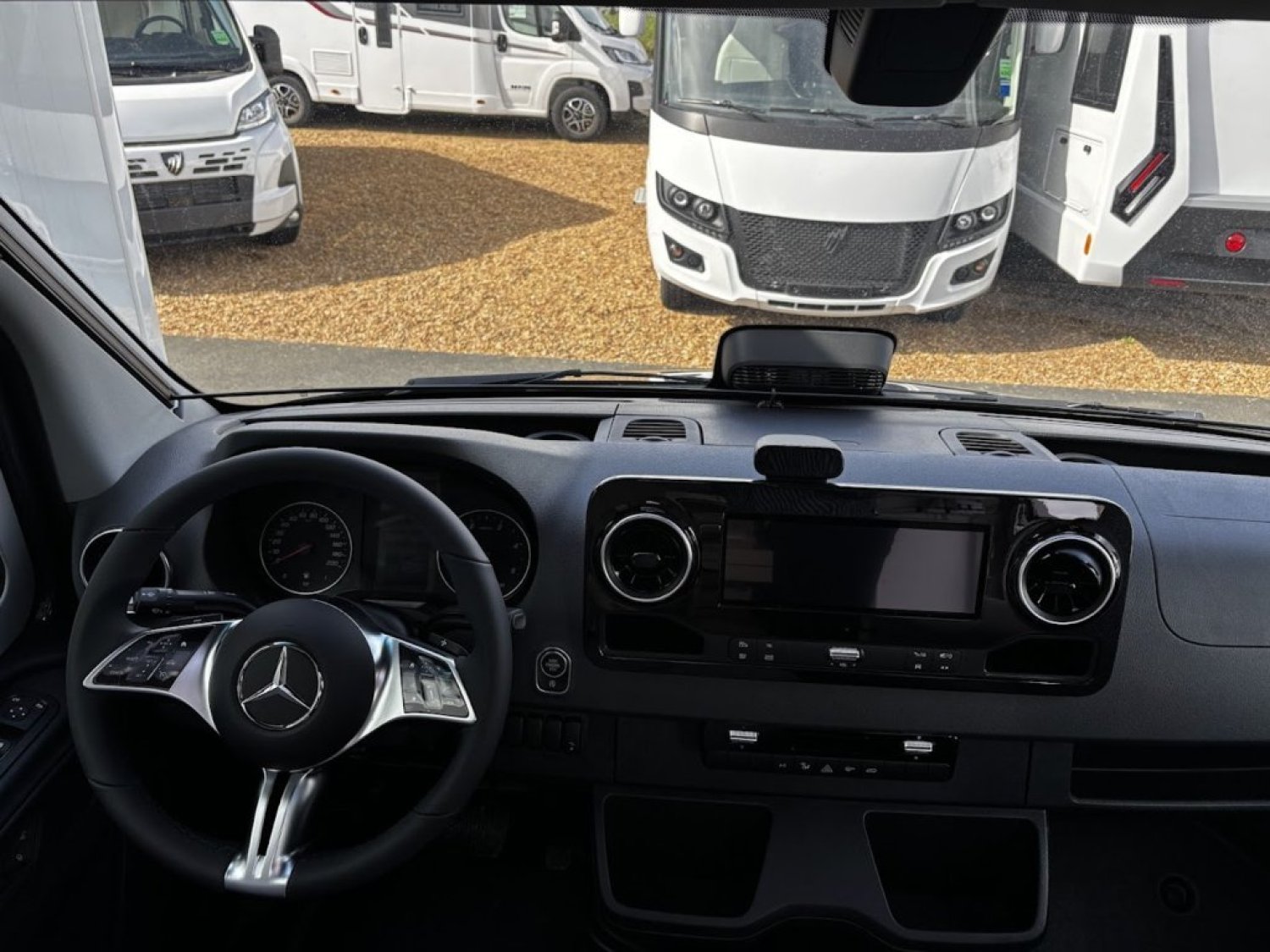 Moteur 317 CDI 170CV - Jantes alu 16, Peinture black grey, Reservoir gazoil 92l, Feux antibrouillards, Porte cellule confort, ventilateur cuisine, serrure de securité, Douchette exterieure, chauffage truma 6ED, support tv 22, complement lit jumeaux, Pack confort cellule, Pack assistance plus : Mbux, regulateur adaptatif, boite auto 9 gtronics : Inclus