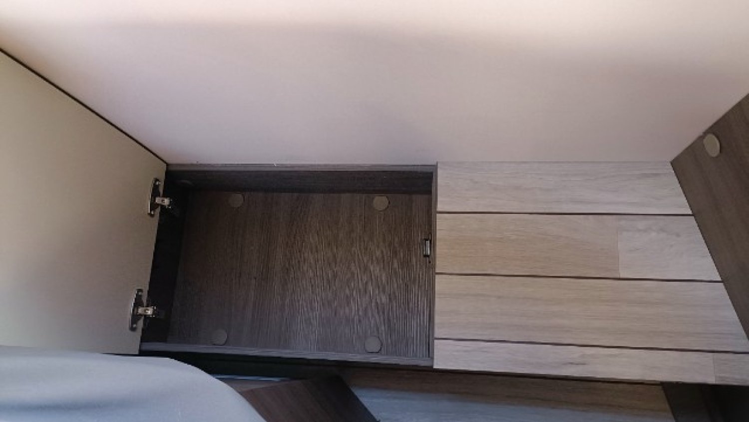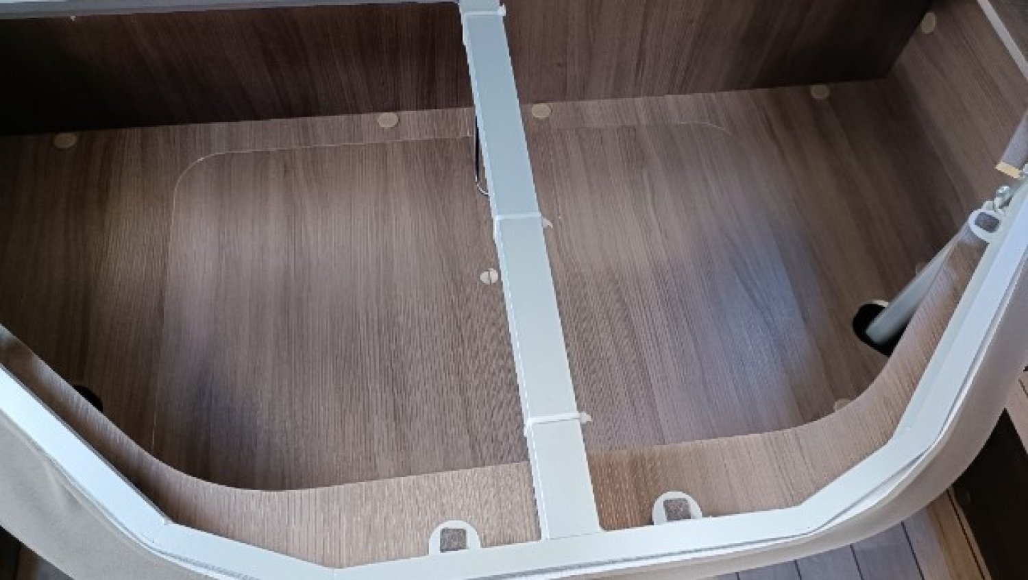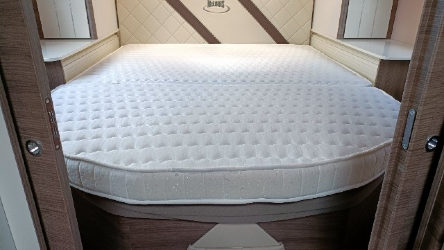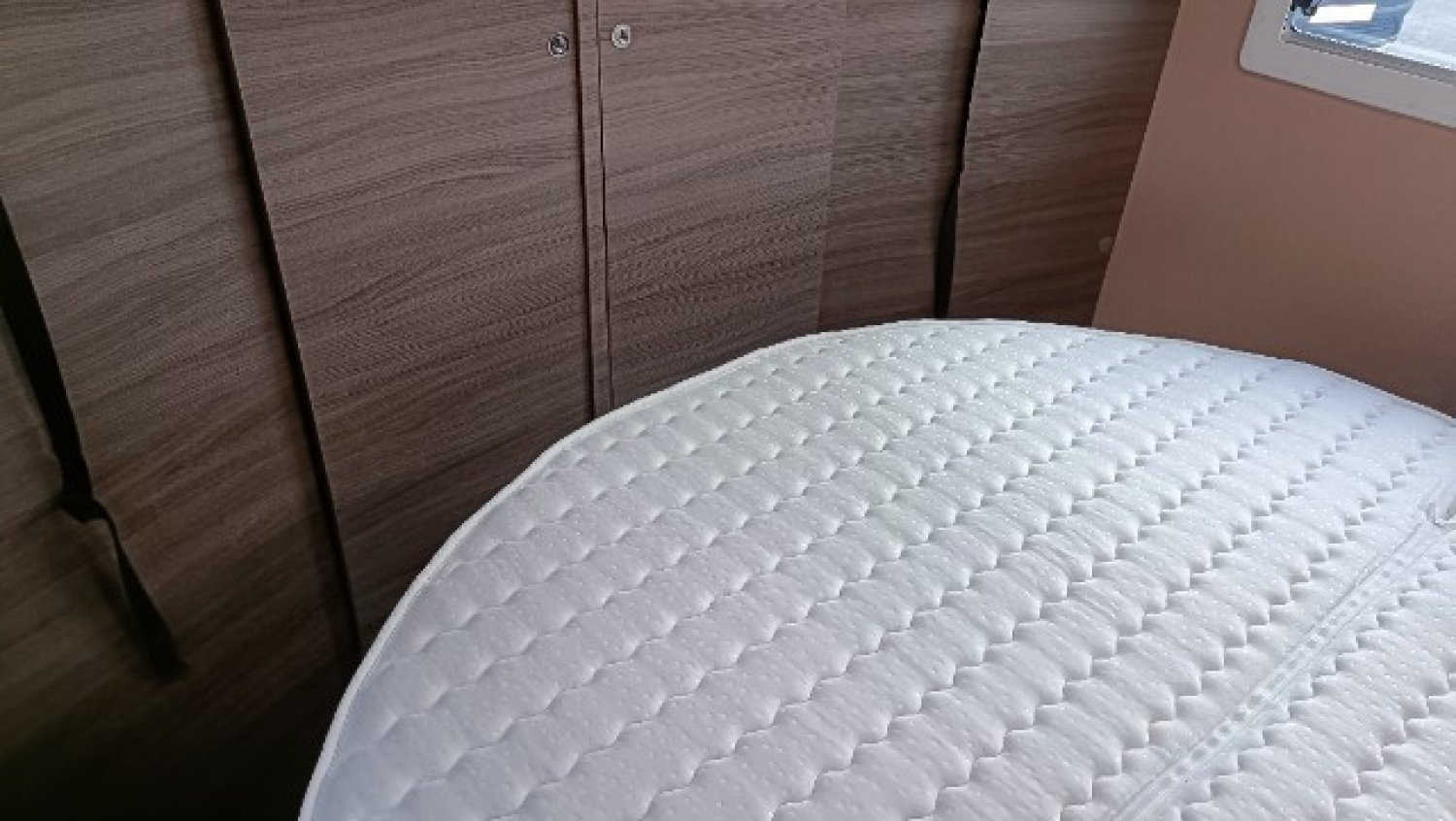 Très bel intégral d'occasion avec un très grand lit central sur soute garage. Possibilité de monté ou descendre le lit électriquement. Le salon en face à face offre un séjour de grande dimension. La douche est séparée du toilette, l'espace salle de bain dispose du double cloisonnement et la cuisine est équipée du frigo avec congélateur.