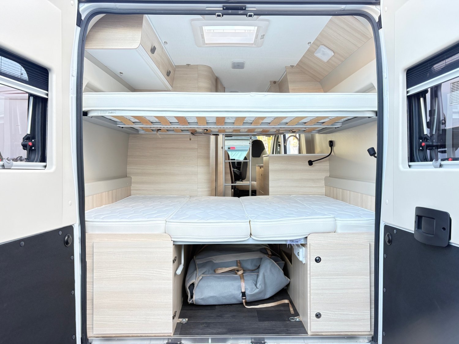 Le secret du succès de V594max ? Ses couchages modulables! En moins de 6 mètres, ce fourgon aménagé propose 4 couchages permanents. Chausson va plus loin en rendant ces couchages amovibles : Vous partez à 2 ou 3 seulement ? Retirez la double couchette supérieure en tout ou partie…