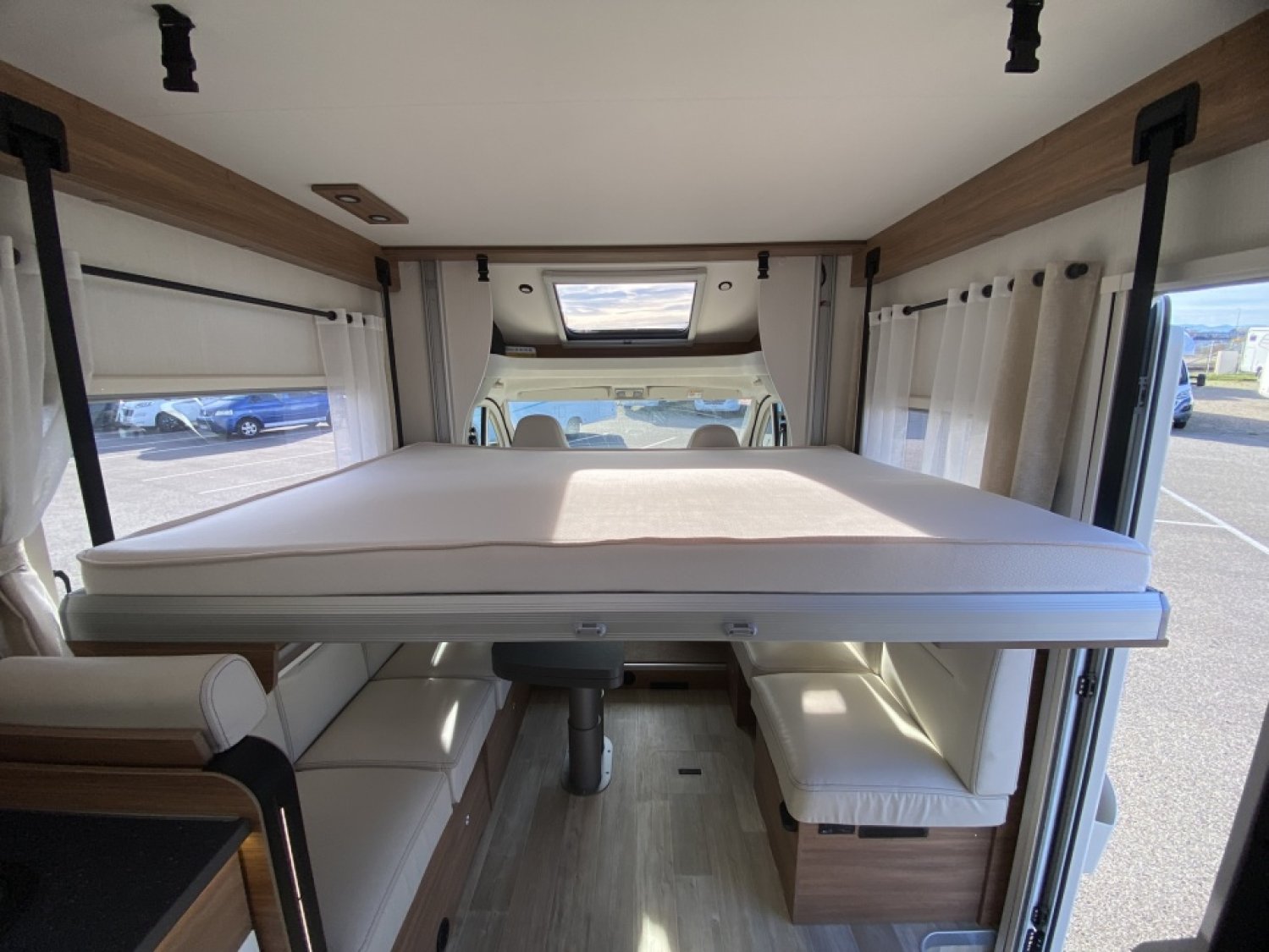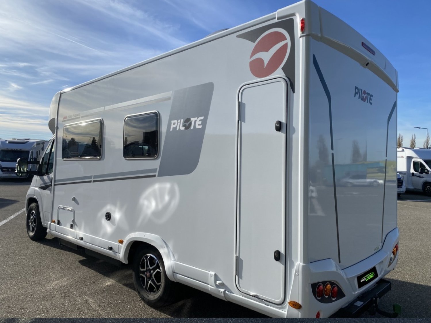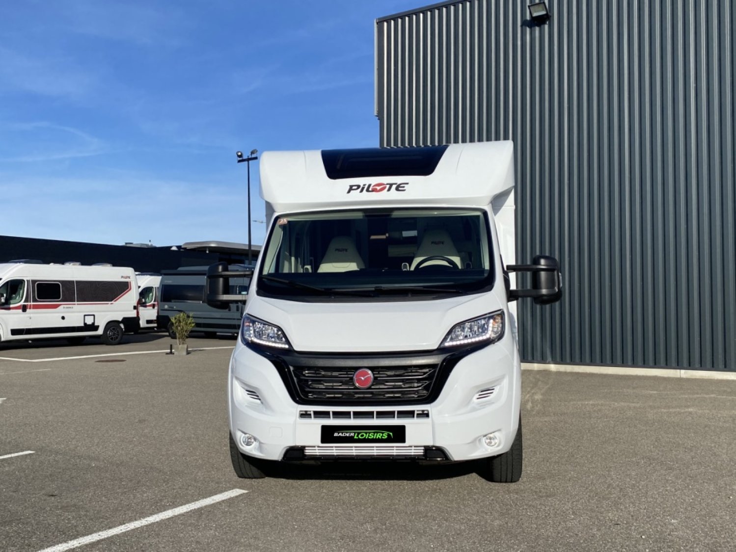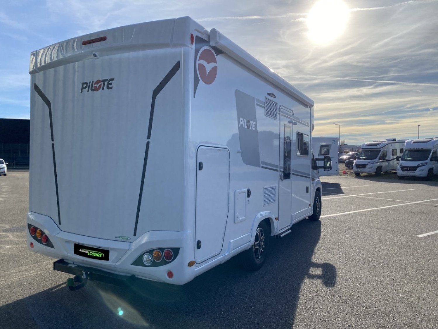 Le Pilote Profilé P696D Evidence Plus est un camping-car de 6,99 m, offrant une motorisation de 2,2L et une boîte automatique. Il dispose de 4 couchages et de nombreux équipements : chauffage Truma, réfrigérateur de 153L, store banne, jantes alliage, panneaux solaires, et climatisation cabine. Il est aussi équipé d'un lit pavillon électrique, d'une caméra de recul, et de systèmes de sécurité comme les airbags. Des options sont disponibles, comme un couchage supplémentaire et la boîte automatique.
