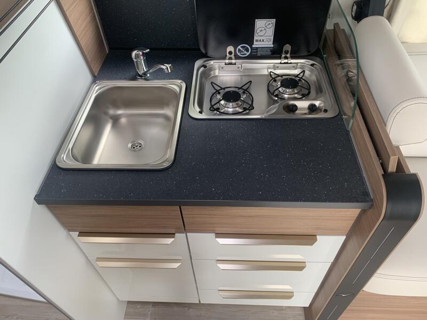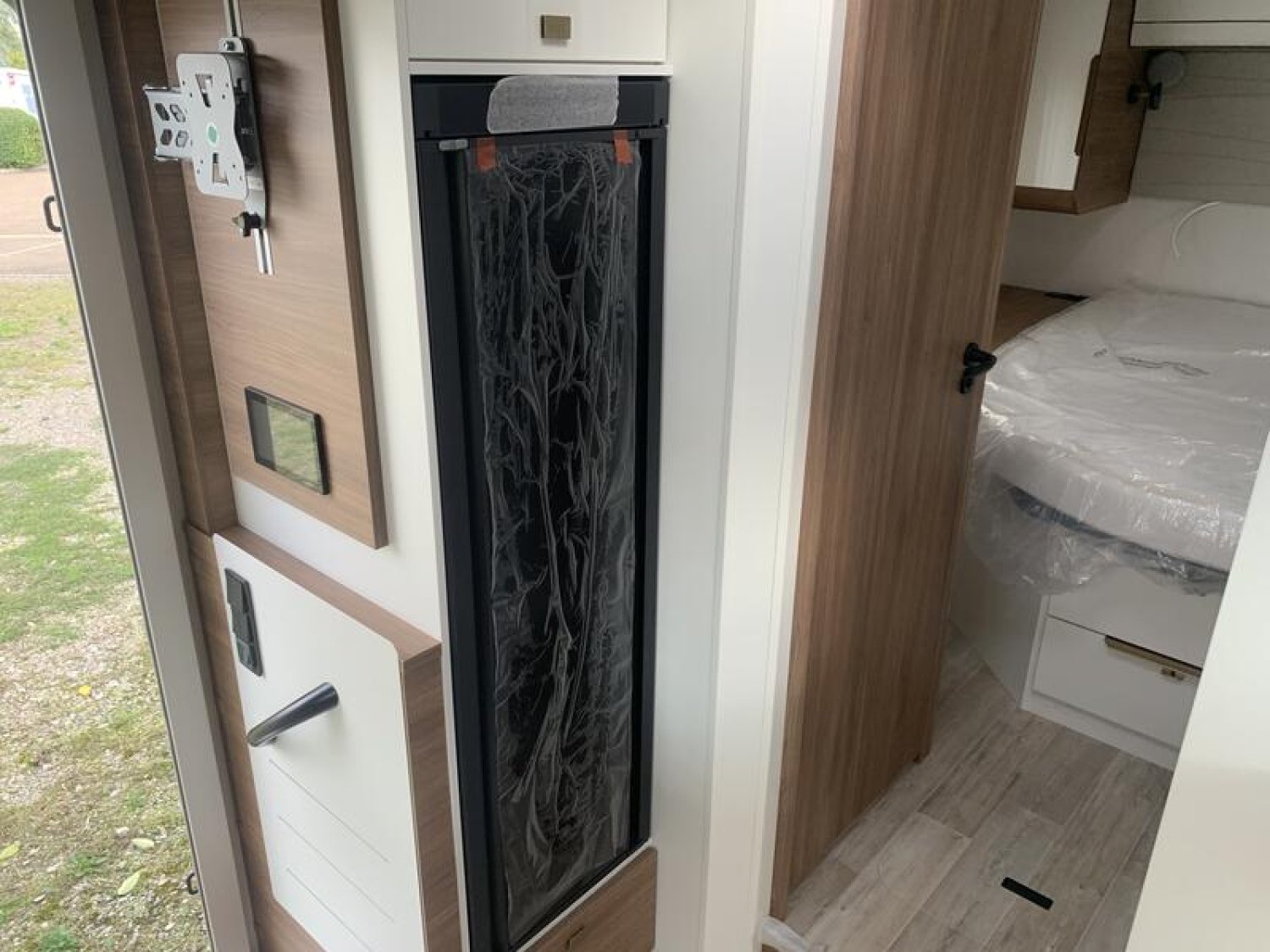 Réservoir diesel 90 L. • ABS, ASR, ESP, Traction+ avec contrôle de vitesse en descente. • Jantes Alu 16” • Skydôme Sièges cabine pivotants et réglables en hauteur • Éclairage extérieur à LED. • Occultations cabine à ventouses. • Panneau de commandes Xperience 2.0. • Pré-câblage de l’antenne satellite. • Support TV réglable et alimentation. Combi 6 Truma® chauffage et boiler • Coffre à gaz 2 bouteilles de 13 kg. • Simple détendeur – Crash Sensor Truma®. • Booster de charge rapide • Lanterneau ouvrant panoramique. Réfrigérateur trimixte 133 L • Prises 230 V, 12 V et USB A/C. • Matelas confort haute résilience. Panneau solaire 100 W, 2 batteries cellule 95 Ah AGM. Porte cellule vitrée fermeture 2 points centralisée, moustiquaire, moquette cabine, occultations plissées et marchepied électrique. Autoradio 6,7”, Android Auto, Apple CarPlay connection par câble, FM/DAB, caméra de recul et haut-parleurs.