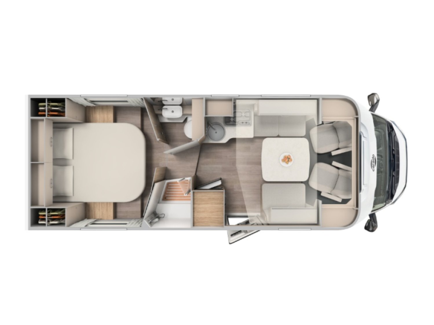 Parce qu’il offre le confort d’un grand camping-car familial avec une implantation ultra recherchée : lits jumeaux, lit pavillon, sanitaires séparés et grande soute.