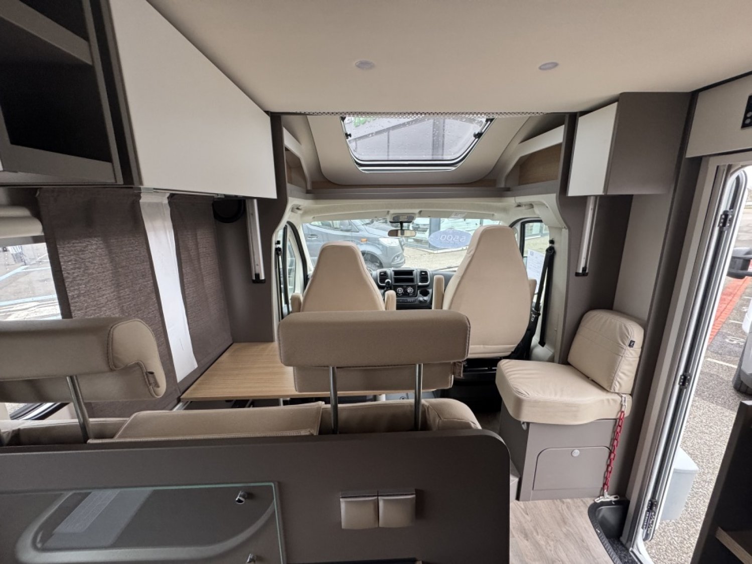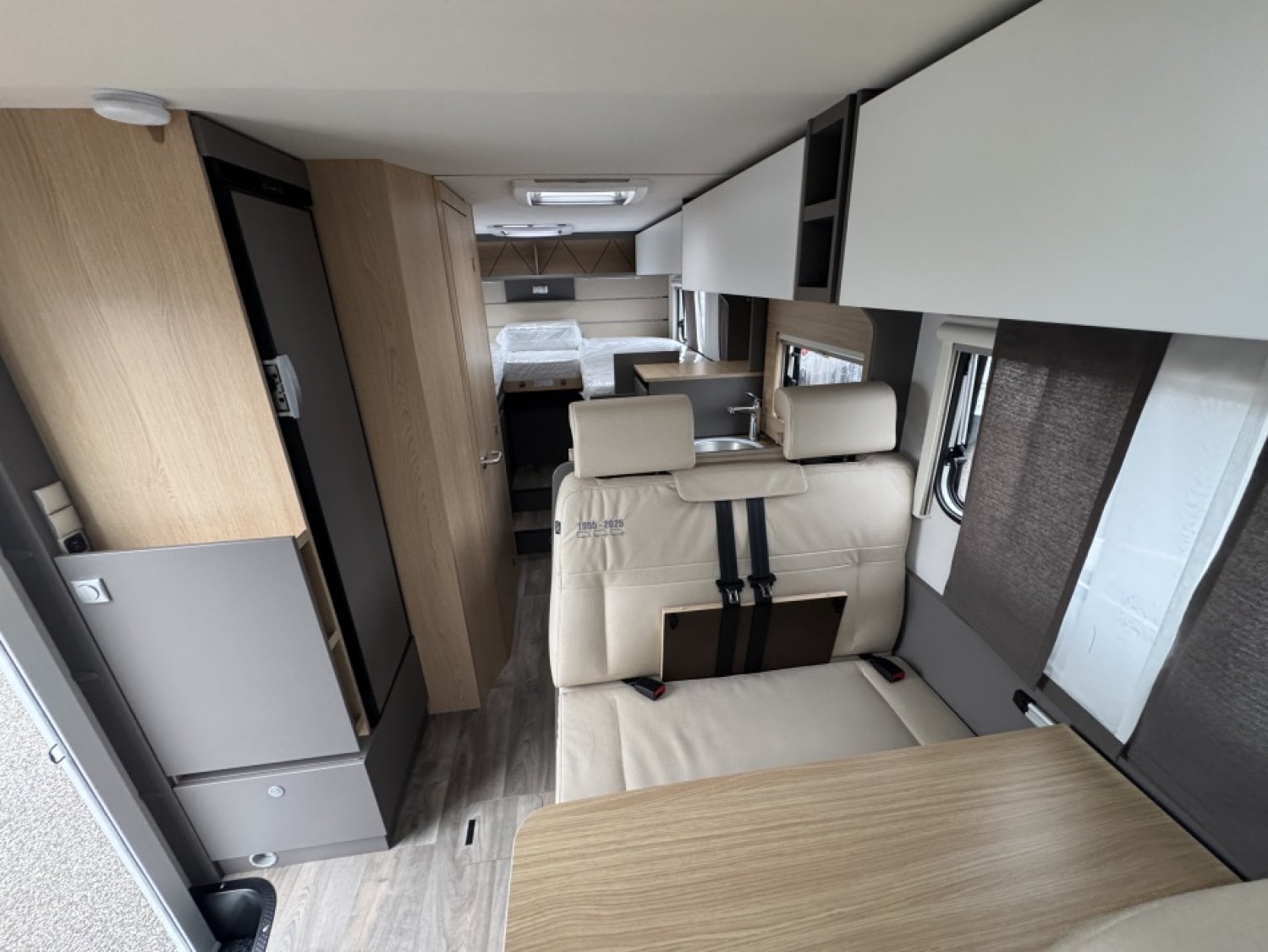 Basé sur le Fiat Ducato 2.2 DCI 140 ch avec boîte automatique, ce modèle propose une conduite fluide et agréable. Son implantation avec lits jumeaux, complétée par un lit pavillon, permet d’accueillir confortablement jusqu’à 4 personnes, tout en conservant une circulation intérieure fluide et une grande capacité de rangement.