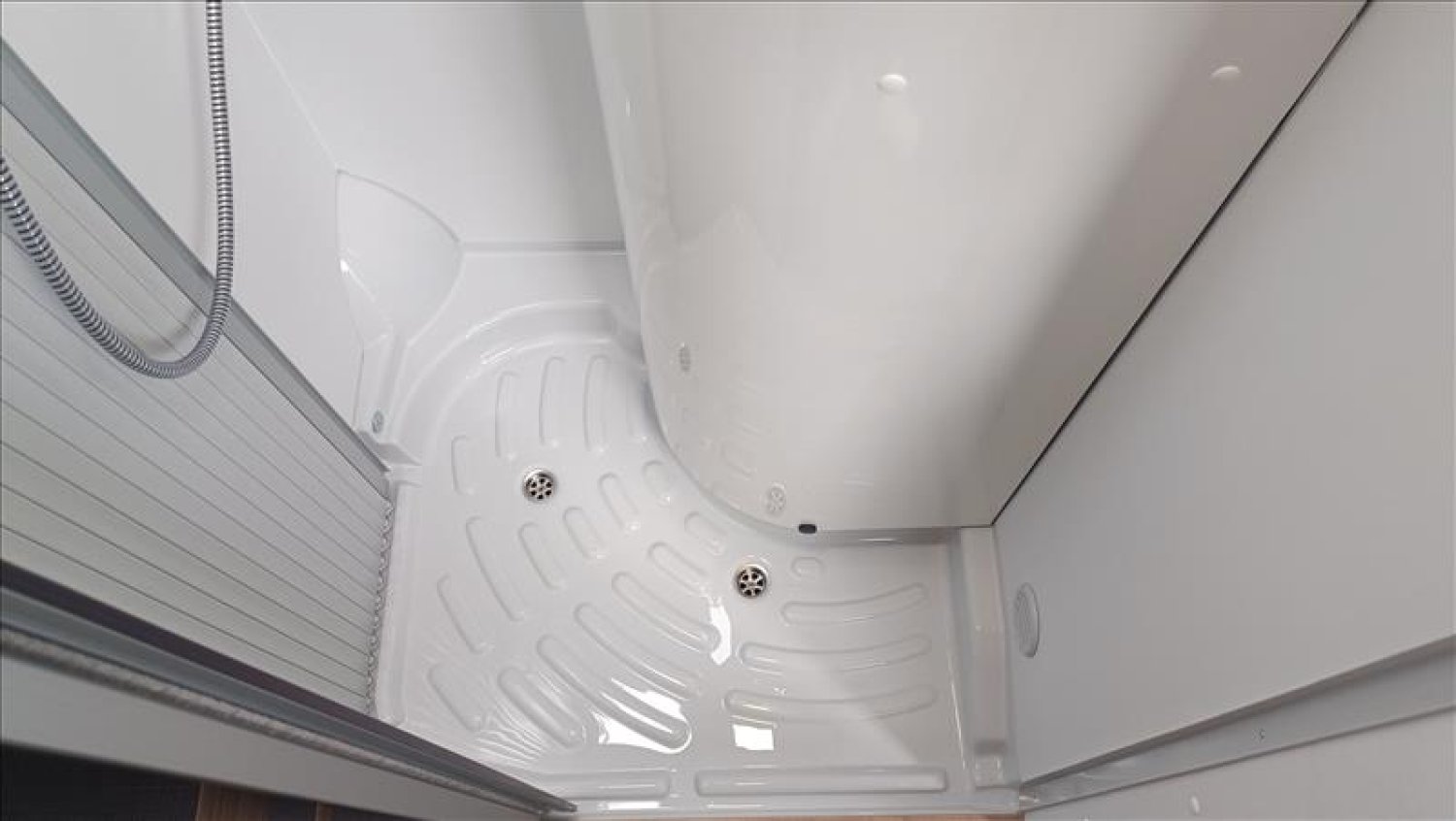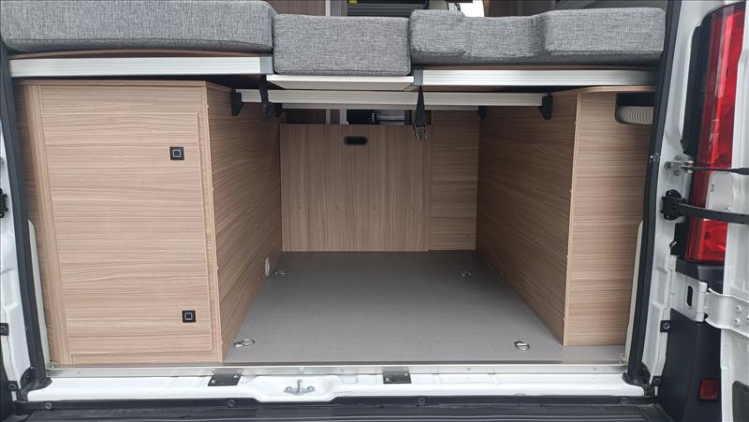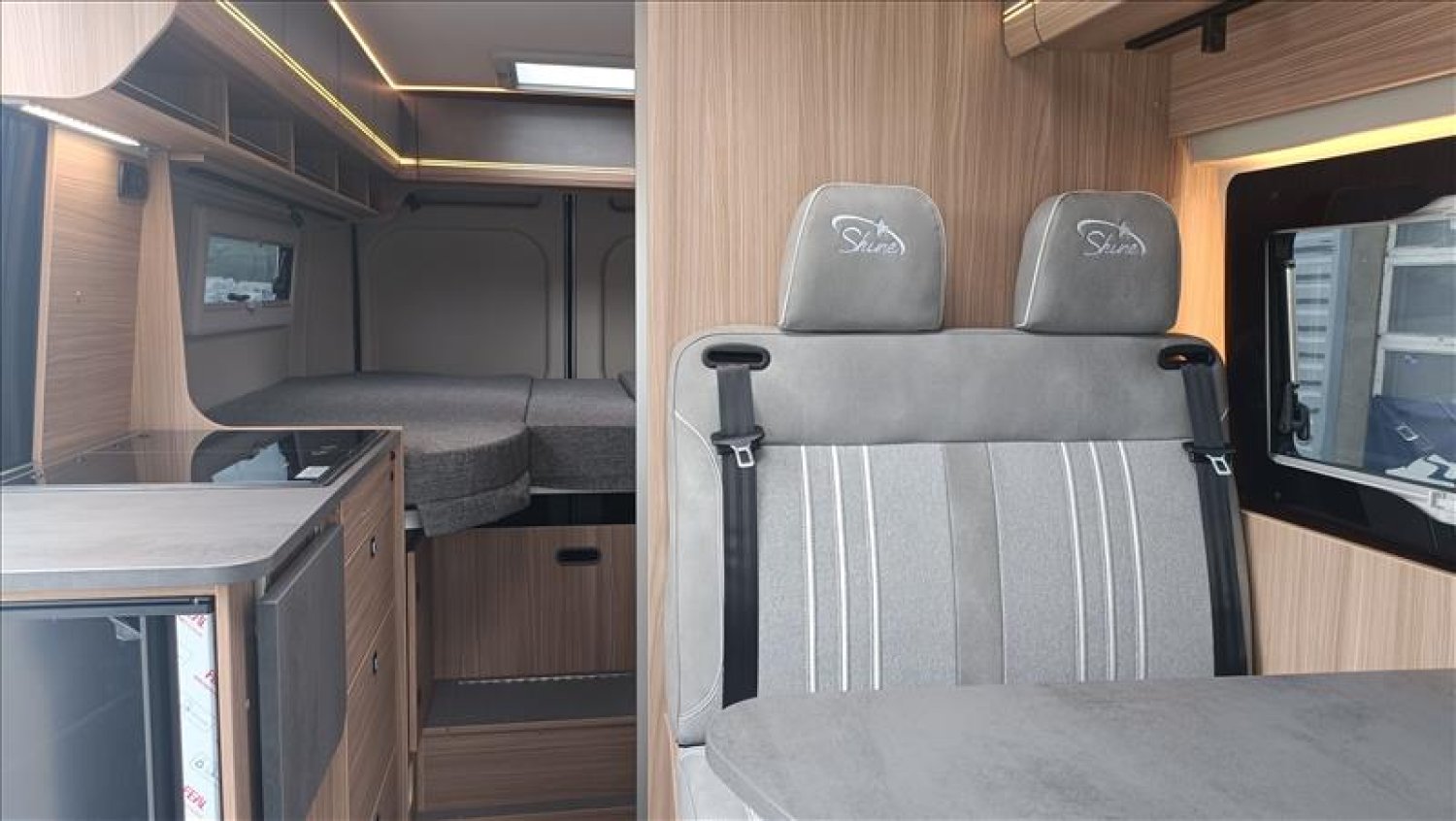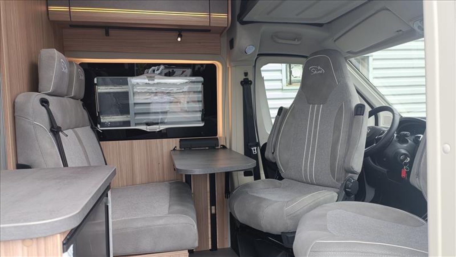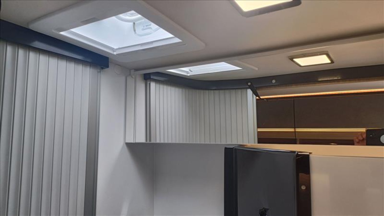 Fourgon aménagé du spécialiste allemand. Ce modèle en 5m99 dispose de lits jumeaux arrières. On y retrouve des rangements astucieux, une dinette innovante et une salle de bain avec paroi pivotante, une belle cuisine latérale et un grand espace de chargement sous les lits.