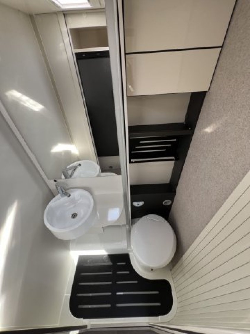 •Carrosserie EXPS : Étanchéité maximale et isolation acoustique de l’habitacle. Intérieur murs et sol en matière plastique imperméable •Épaisseur du sol : 54 mm •Épaisseur du plafond et des murs : 30 mm •Toit extérieur en fibre de verre •Murs intérieurs/extérieurs en fibre de verre •Zone inférieure plancher châssis recouvert de fibre de verre »