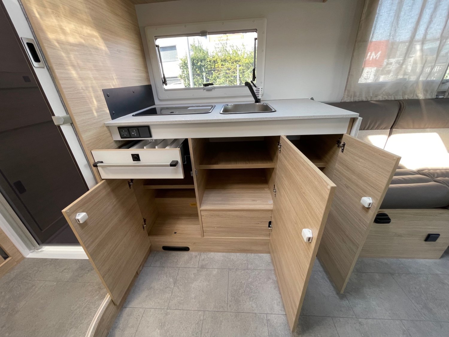 Pour ceux qui veulent de l’espace, beaucoup d’espace : Le 640 est incroyablement spacieux en seulement 6,99m : Maxi salon, maxi cuisine, maxi salle de bains, Garage à vélos ou scooter, dressing et lit largeur 1,60m, qui dit mieux ?