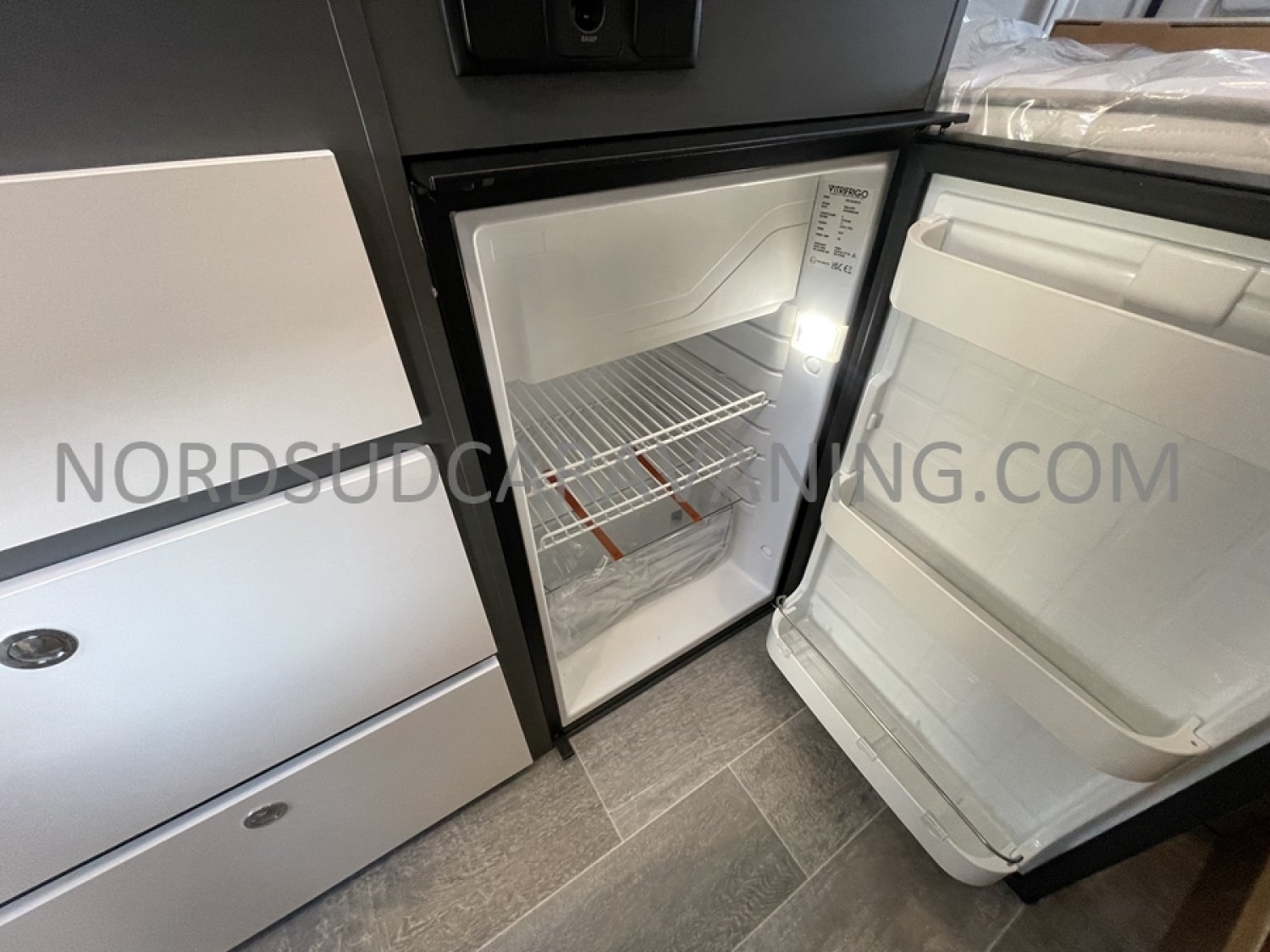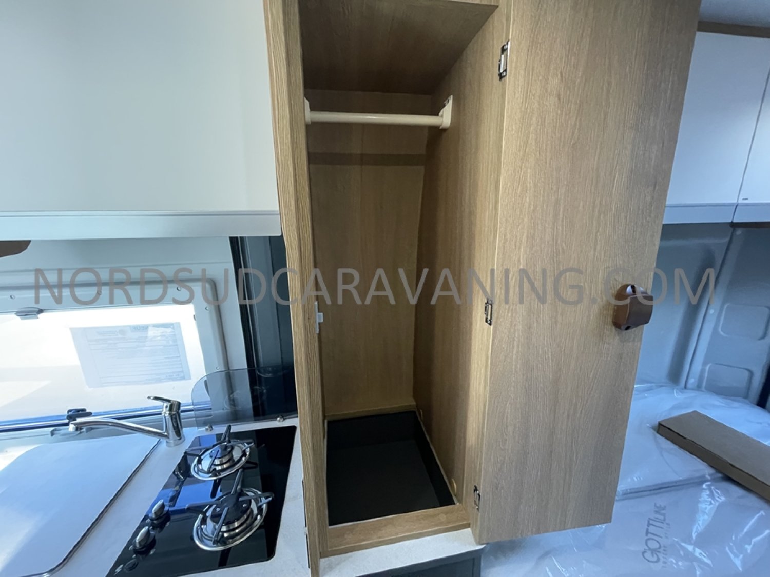 Sa dinette agréable et lumineuse se transforme en couchage d’appoint. Sa cuisine latérale pratique et fonctionnelle est équipée d’un réchaud 2 feux, évier et plan de travail rabattable. En face, une salle d’eau compacte tout-en-un qui ne manque de rien (Lavabo, miroir, WC, Douche). A l’arrière, c’est un couchage transversal confortable et agréable sur soute qui est proposé, vous permettant de ranger vos vélos, de retour de balades. Sans oublier ses nombreux rangements astucieux !