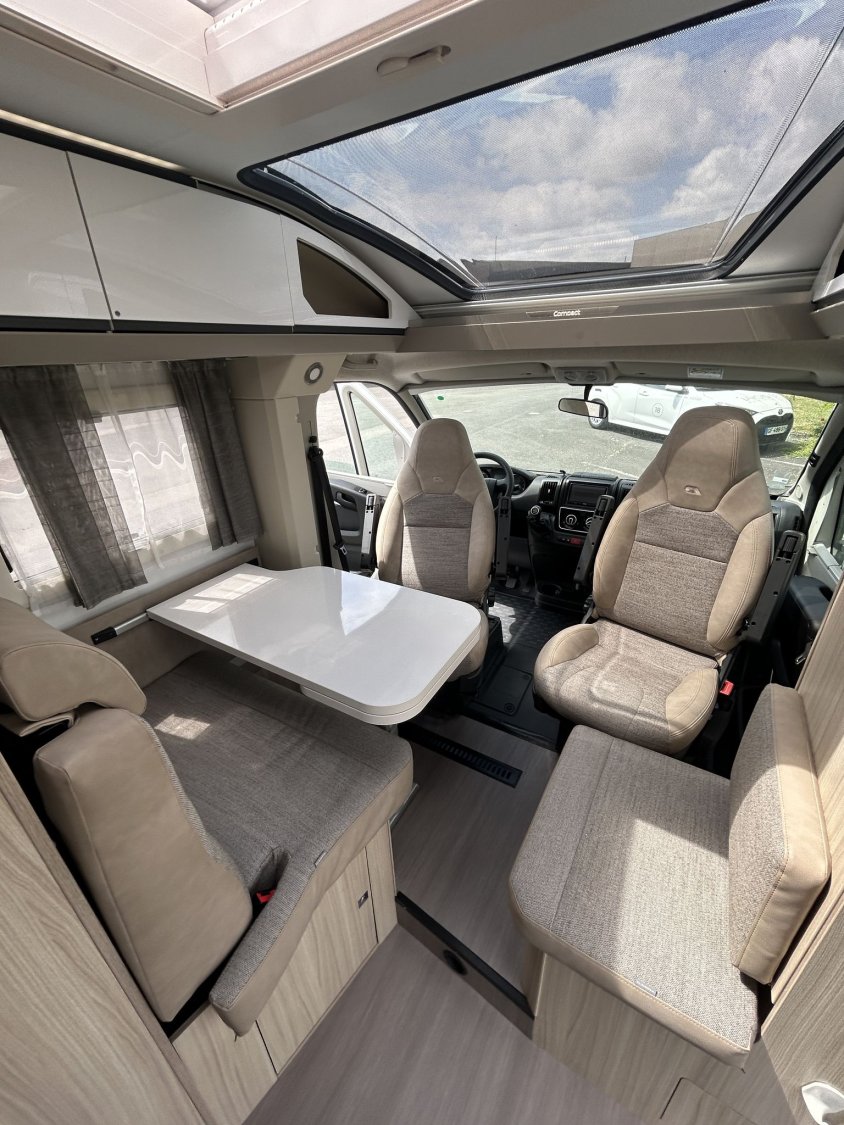 REGULATEUR VITESSE – STORE EXT – AUTORADIO DIGITAL – RADAR DE RECUL – CAMERA DE RECUL – REFREGERATEUR A COMPRESSION – HOTTE – ANTENNE TNT DIRECTIONNELLE – TELEVISION CHAMBRE – PANNEAU SOLAIRE – STORE PLISSES CABINE – SKYROOF – RESERVOIR EU CHAUFFE – LIT ARRIERE 198×137/130cm – LIT DINETTE 168×100/50cm – MONO CONTROL