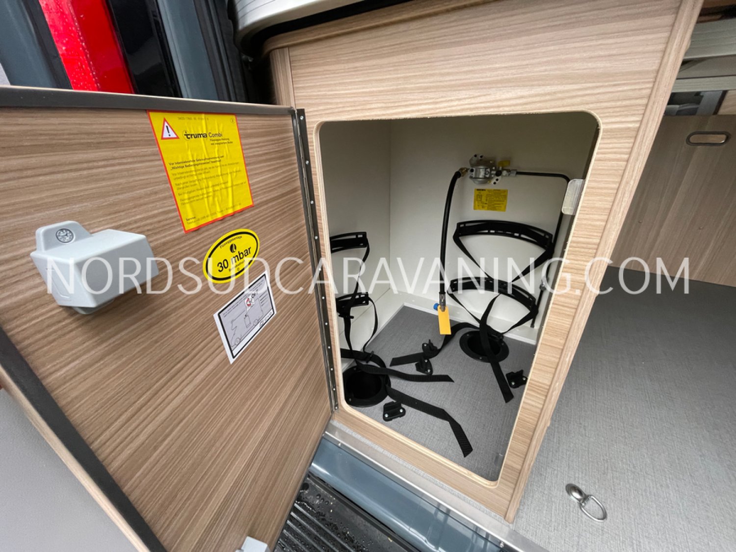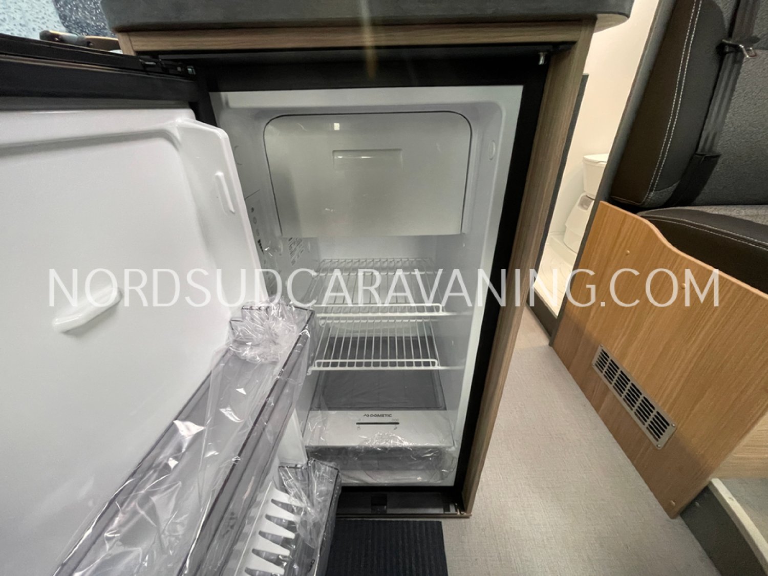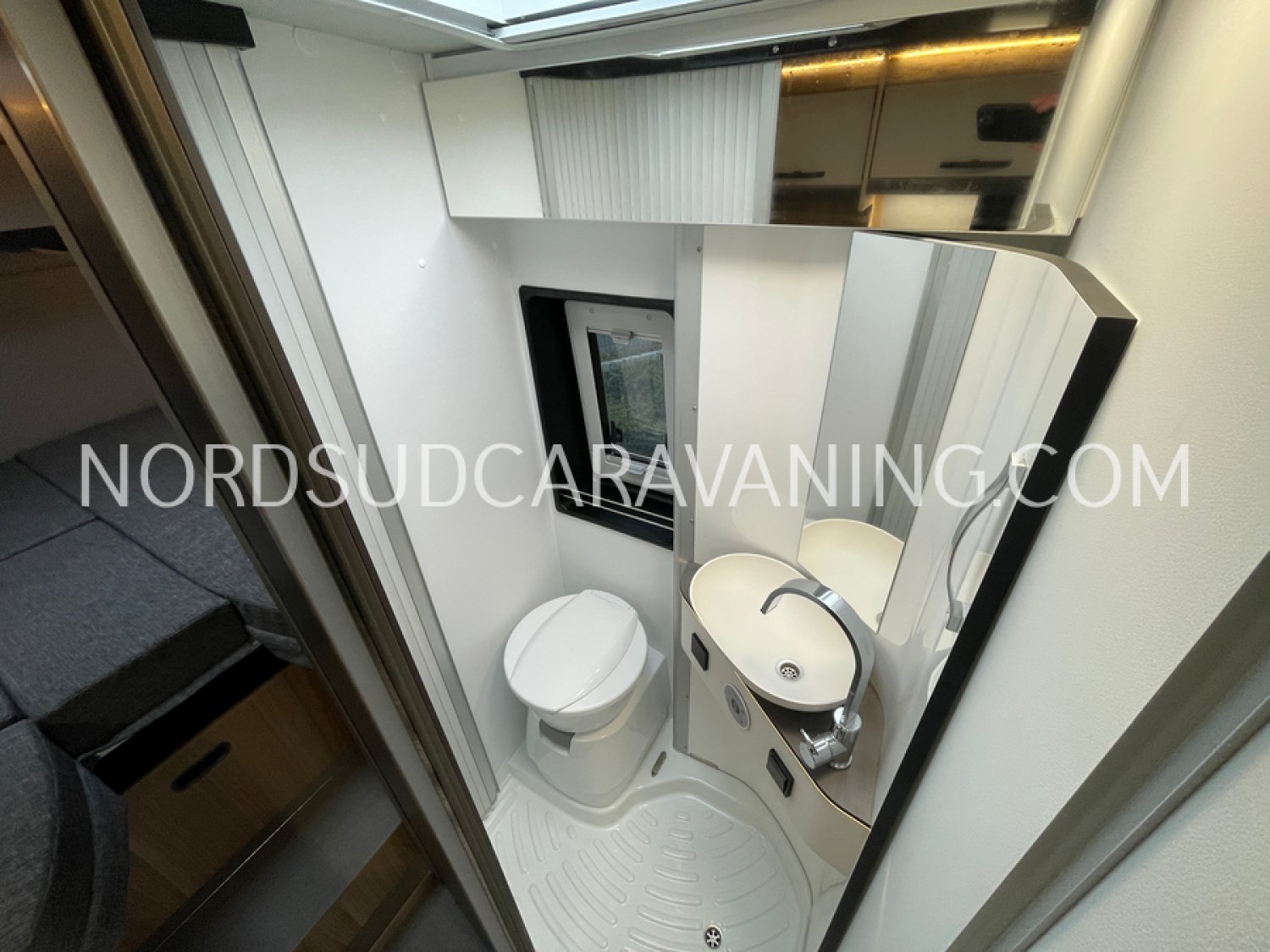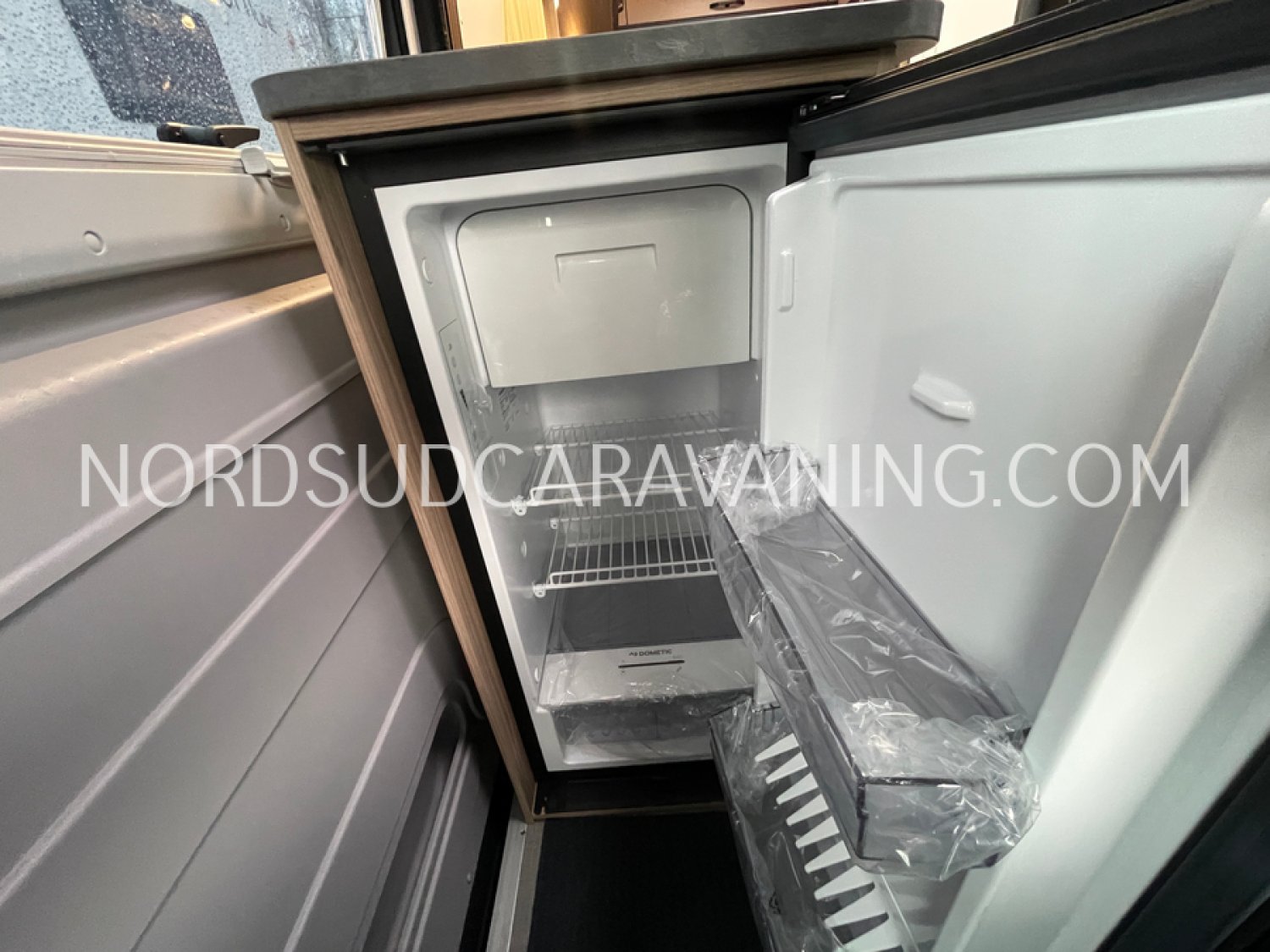 Sa dinette agréable et lumineuse pour une ambiance conviviale. Sa cuisine latérale pratique et fonctionnelle est équipée d’un réchaud 2 feux, évier, plan de travail rabattable et un réfrigérateur 98L. En face, une salle de bain avec WC, lavabo, et une douche vario. A l’arrière, ce sont des lits jumeaux, pour des nuits confortables et agréables, et plus d’espace. Sans oublier ses nombreux rangements astucieux !