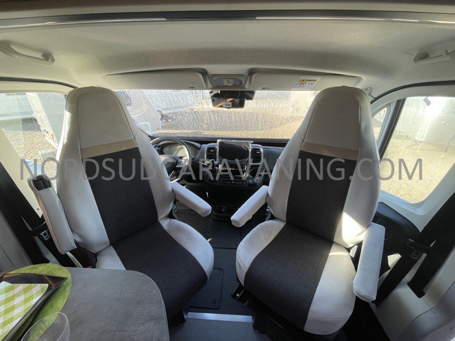 Alliant confort, innovation et design, ce modèle est parfait pour vos escapades. Imaginez partir à l’aventure avec tout le confort de chez vous : dinette agréable et lumineuse, cuisine équipée pratique et fonctionnelle, salle de bain moderne avec douche spacieuse, lit transversal confortable et nombreux rangements astucieux. Il est conçu pour ceux qui rêvent de liberté sans compromis sur le confort. Profitez de ses équipements haut de gamme et de ses finitions soignées pour vivre des moments inoubliables sur la route.