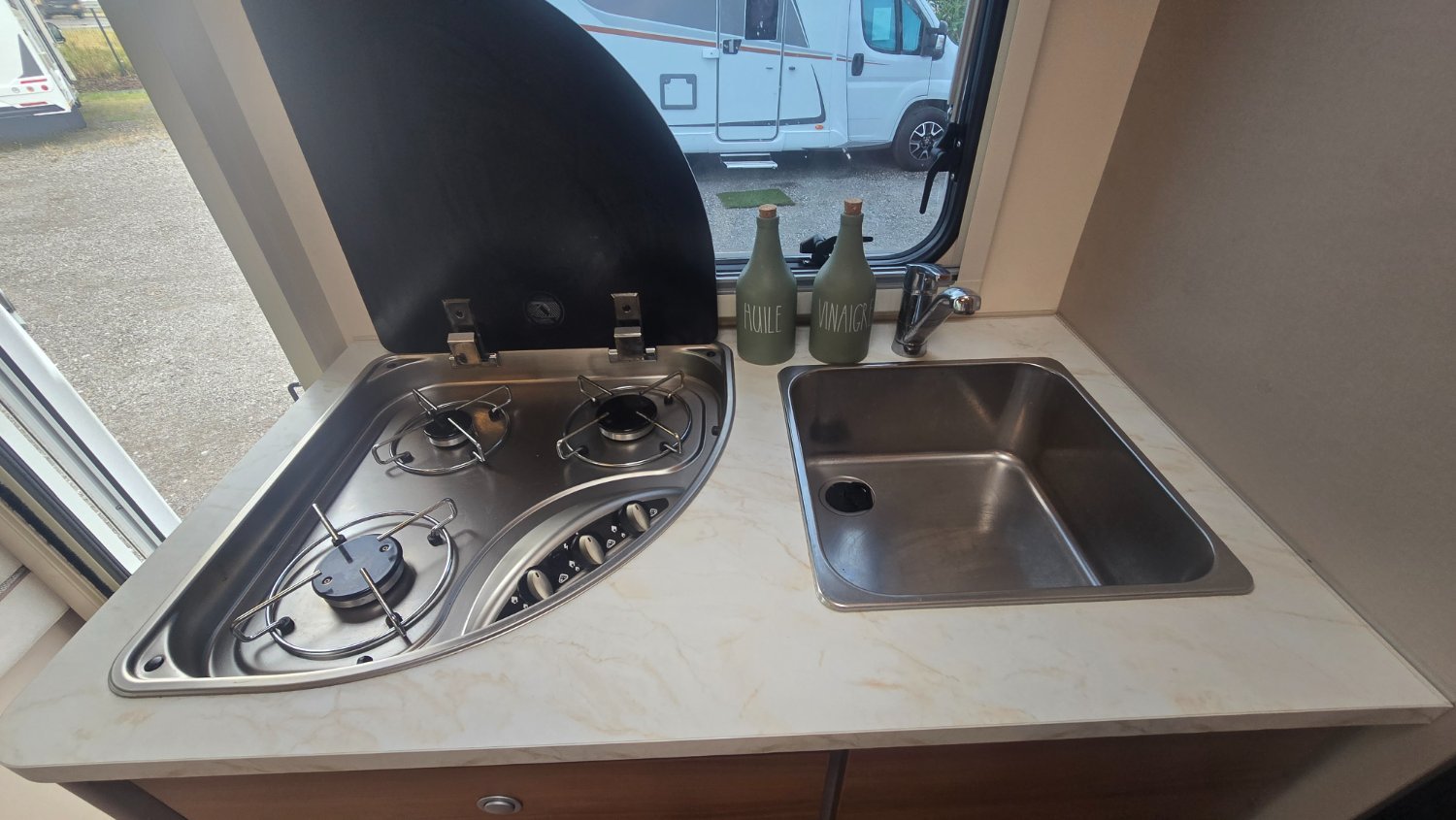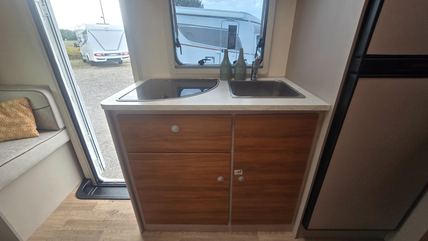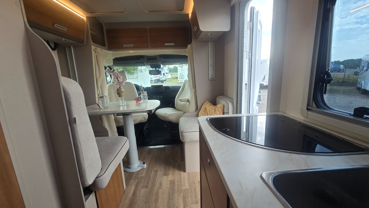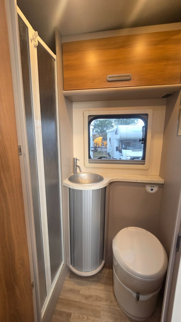 PROFILÉ RIMOR HYGG14 en 6.81mètres, idéal pour partir en vacances avec votre famille, à l'arrière une grande soute, son salon en L, offre un espace de vie plus agréable pour passer de bon moments avec vos proches.