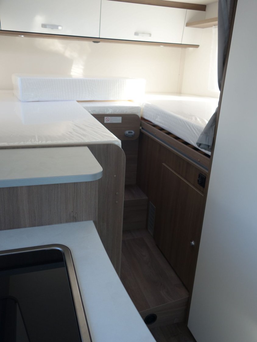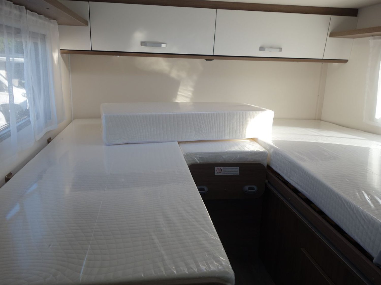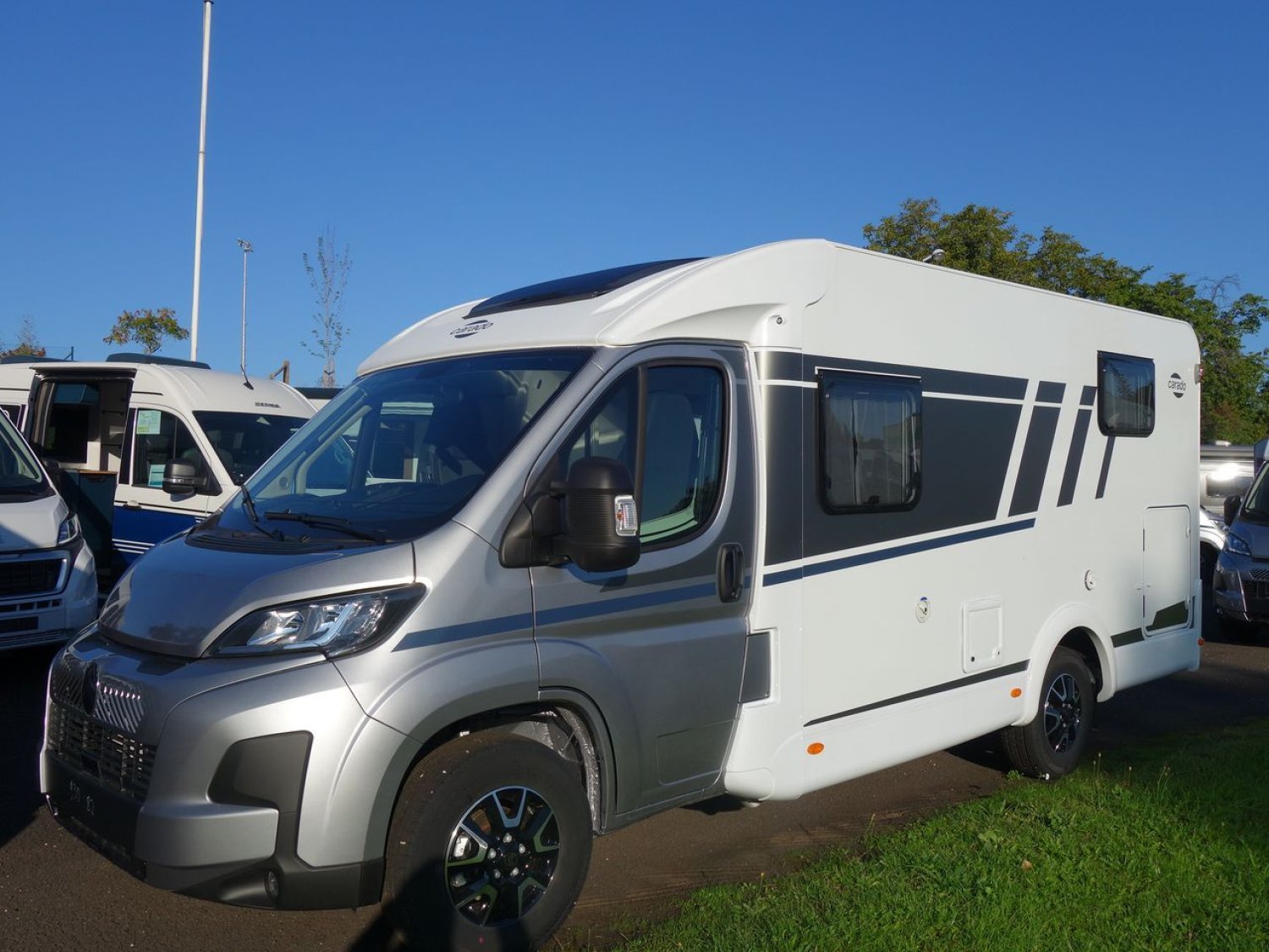 profilé compact, largeur 2,14 m, lits jumeaux transformables sur garage, cabinet de toilette avec douche vario et WC , avec pack PRO +, gris artense, jantes alu 16 pouces....