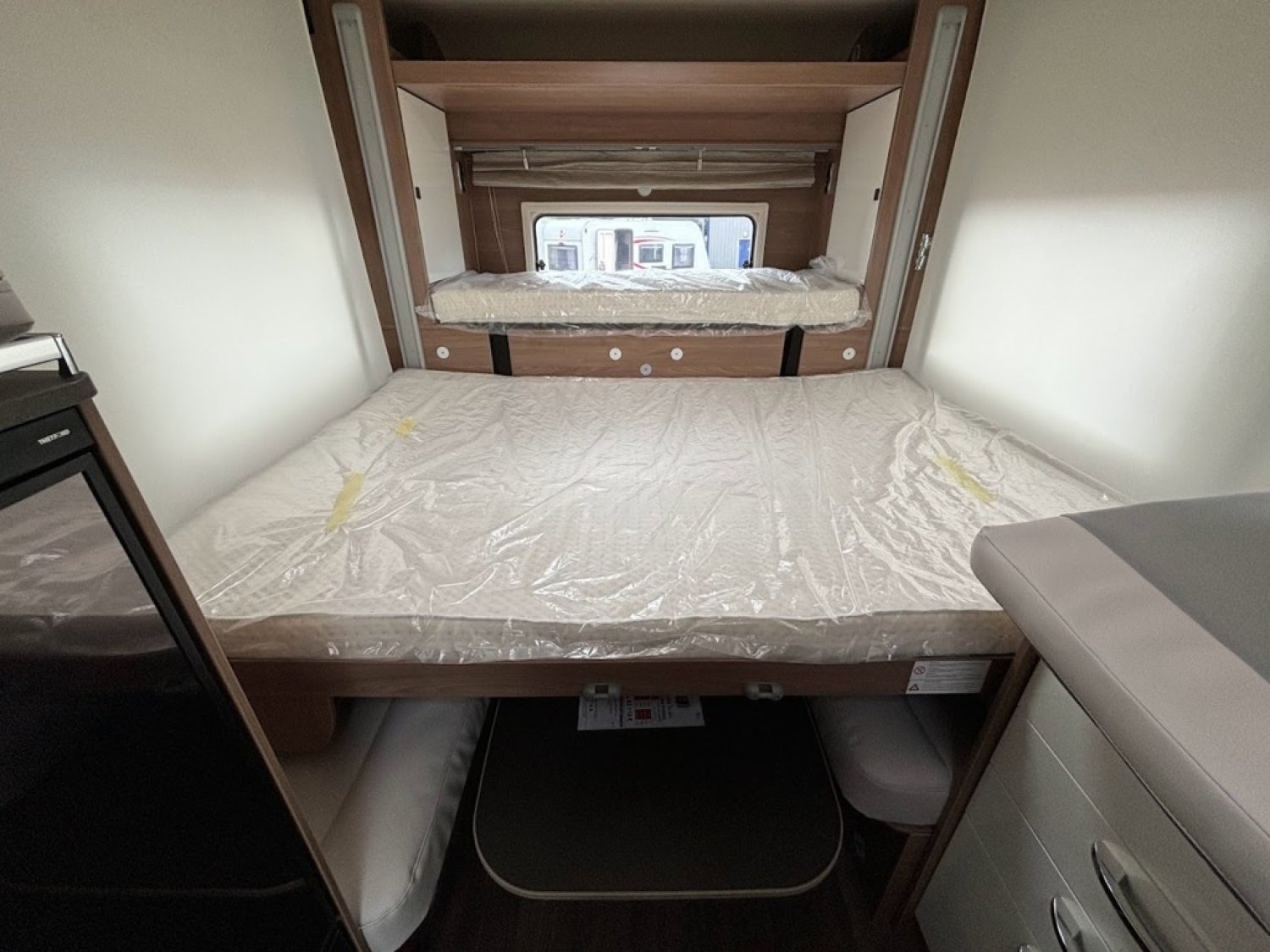 Cuisine en long, Douche indépendante, Lit dînette avant, lit pavillon, lit superposés, Maxi salon, Salon en U arrière, WC Cassette.