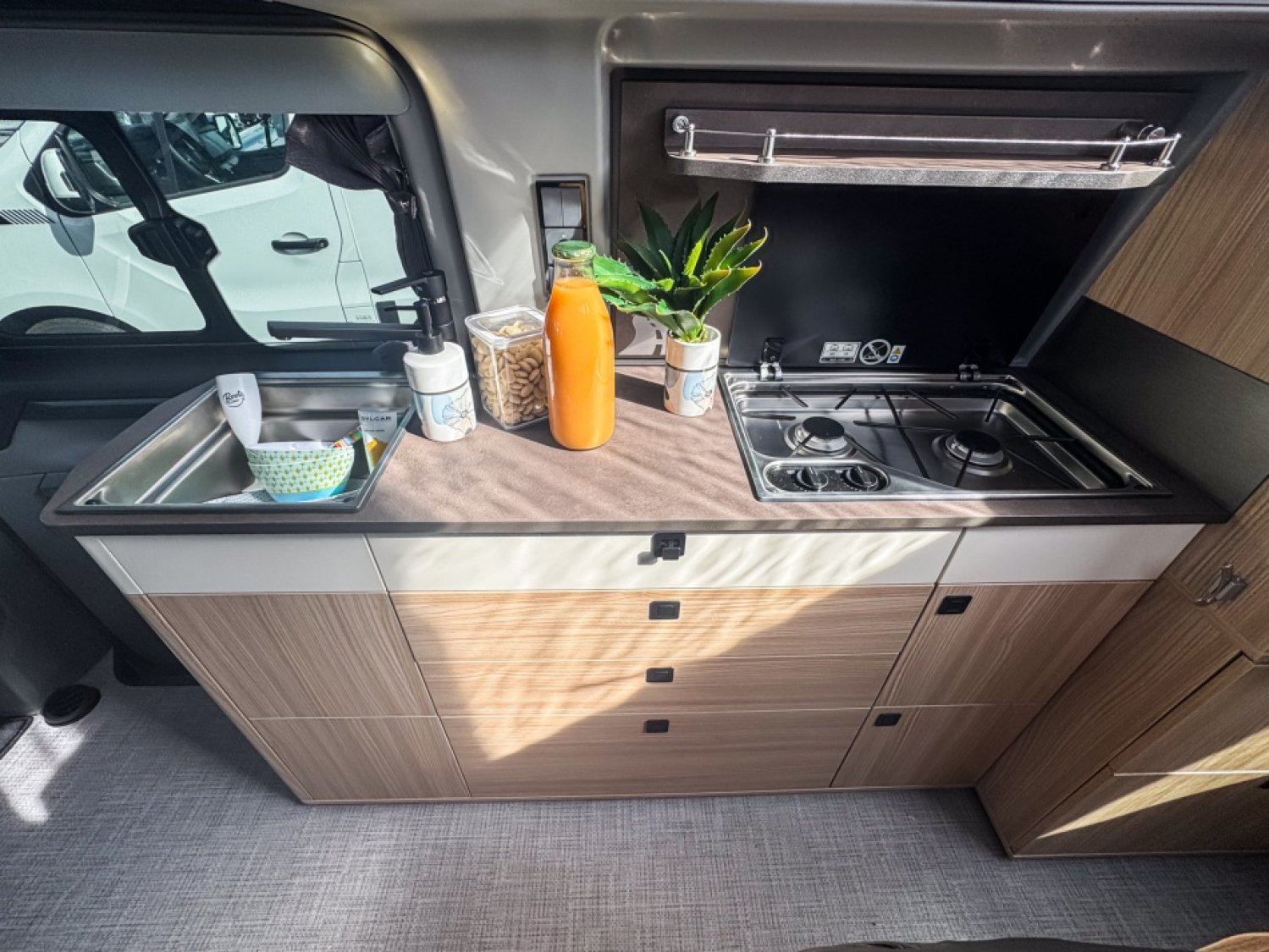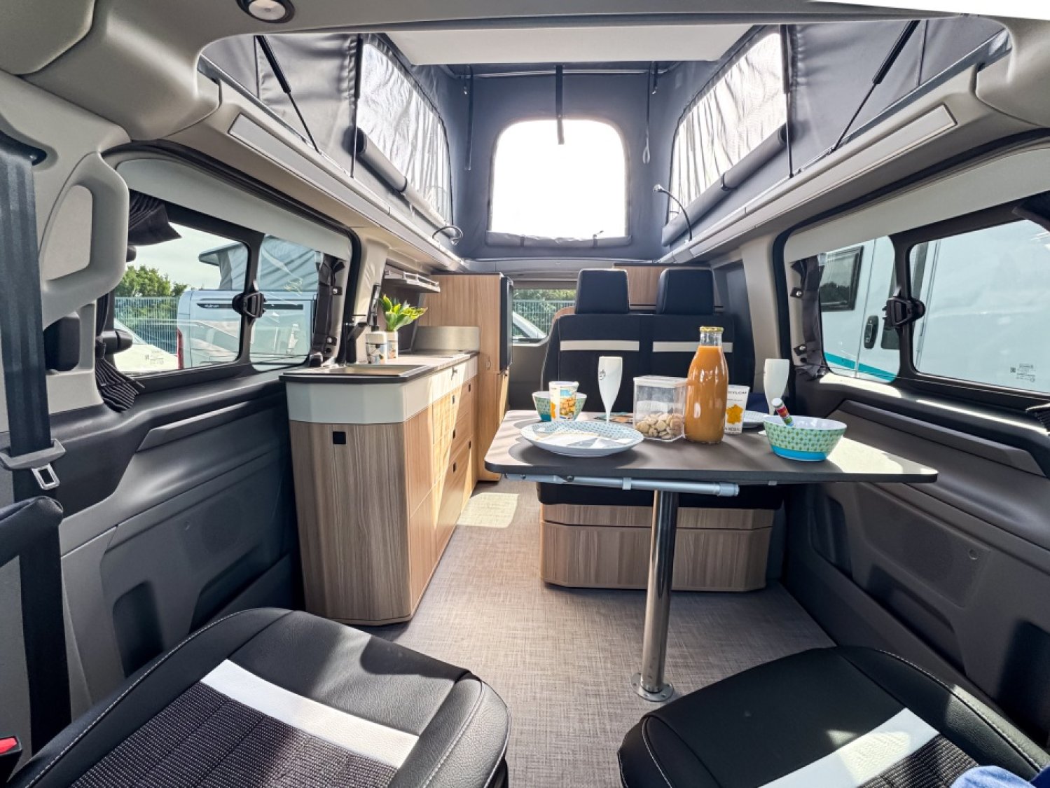 PACK CUSTOM : PRE-DISPOSITION PANNEAU SOLAIRE - BANQUETTE BZ ELECTRIQUE - CHAUFFE-EAU TRUMA (EAU CHAUDE AVEC BOILER DE 10L) -BATTERIE CELLULE AGM 92AH - PREPARATION : FAISCEAU ELECTRIQUE POUR ATTELAGE - TABLE CAMPING AVEC 4 PIEDS AJUSTABLES - TAPIS DE SOL CABINE - VARIATEUR DE LUMINOSITE - 2EME PORTE LATERALE VITREE A GAUCHE - RIDEAUX OPACIFIANTS