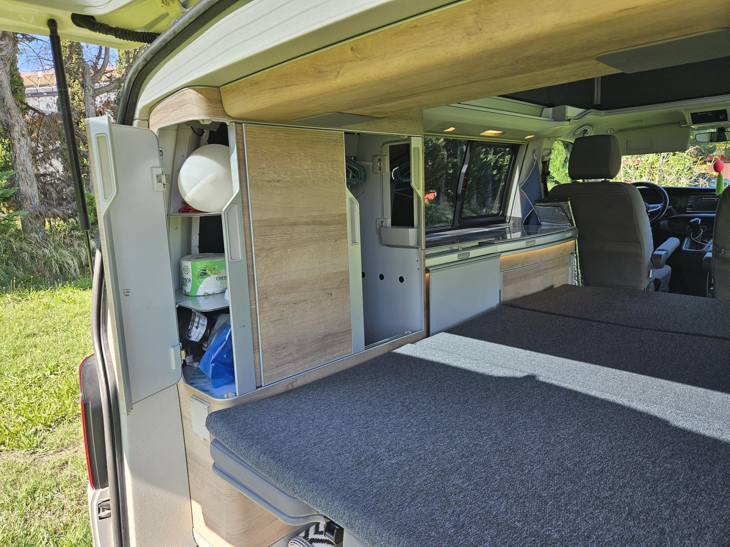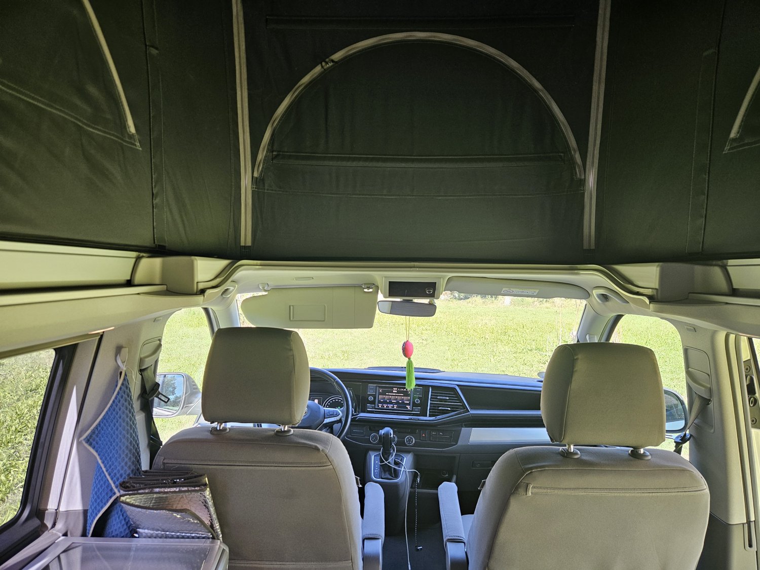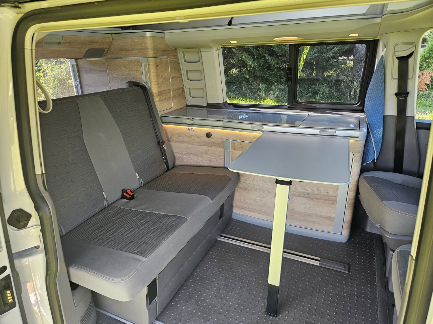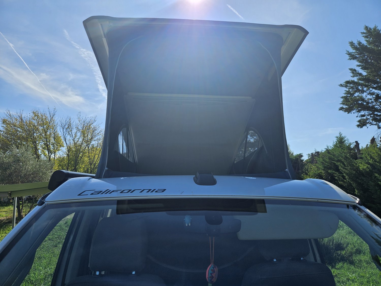 Le toit relevable électrique abrite un lit pavillon spacieux et la banquette arrière se transforme facilement en couchage.