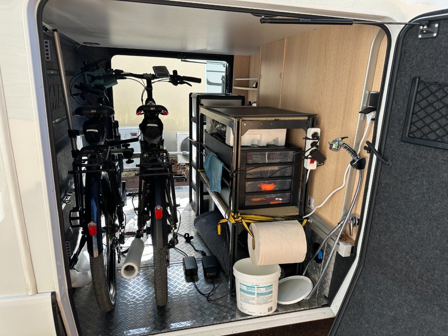 Soute équipée, rangements, Porte vélos bike, Plancha électrique, douche extérieure