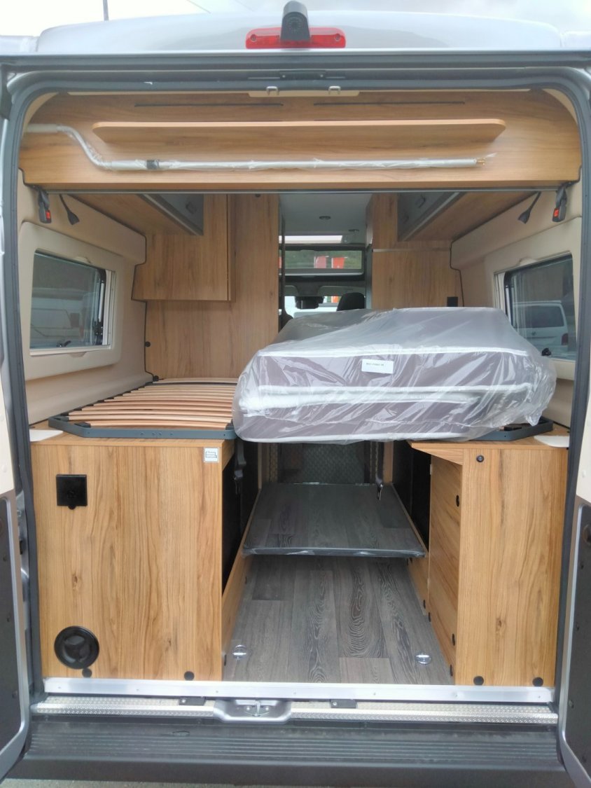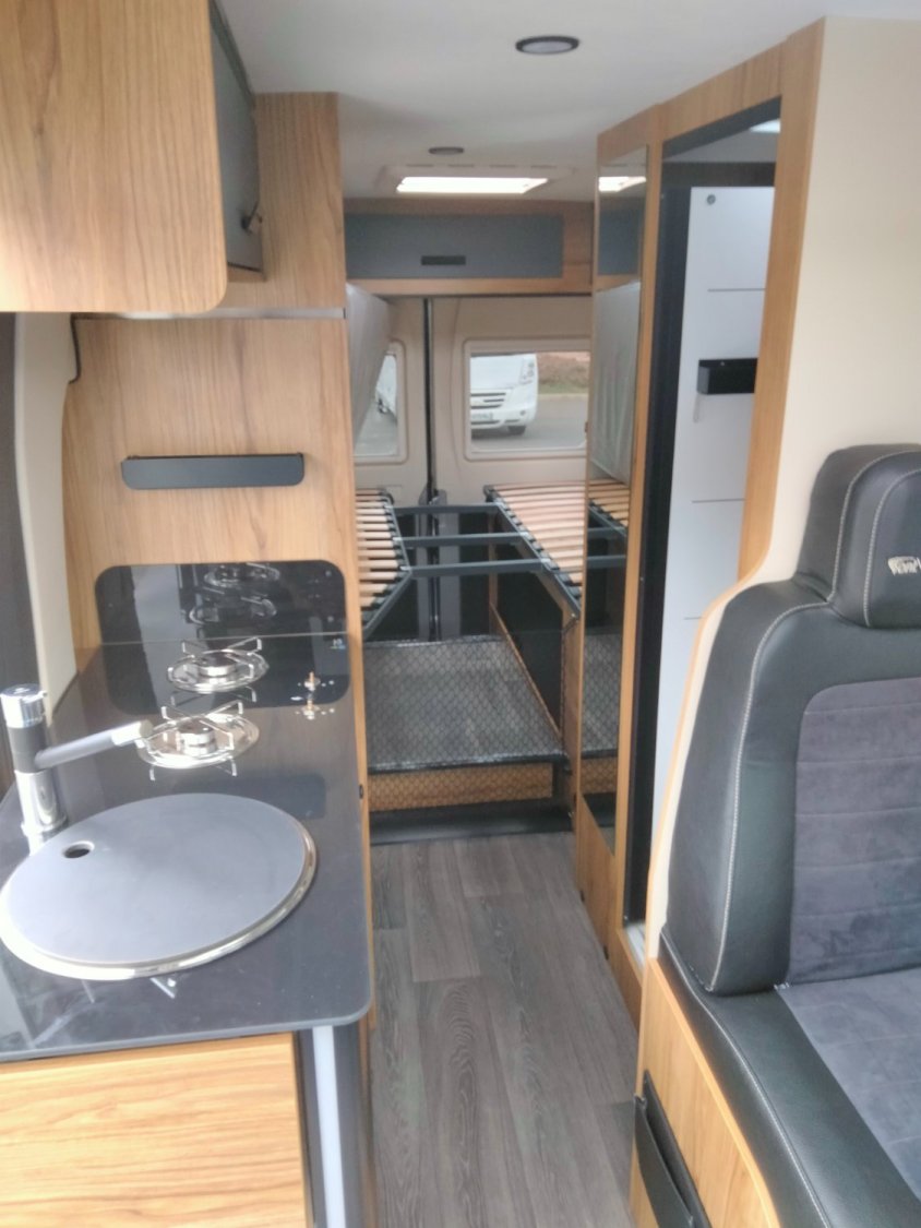 Frigo à compression 138L, combi chauffage chauffe eau gasoil avec kit altitude, occultants, store, panneau solaire, pack multimédia avec android auto et Apple carplay, aide à la conduite, pack safety, batterie Lithium, salle d'eau modulable, caméra de série