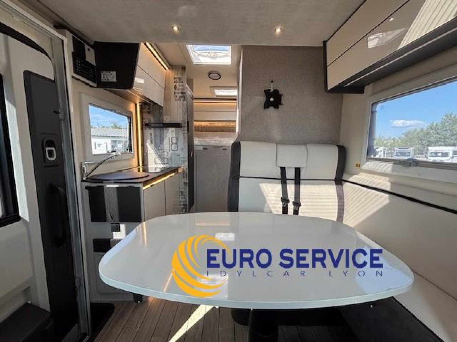 Motorisation 165 CV, Feux "High Series" adaptatifs, Boîte à gants avec serrure, Habillage intérieur et tableau de bord finition "Trend", Pare-chocs et bas de caisse latérales peints couleur de la carrosserie, Porte XL avec 2 points de fermeture, fenêtre et fermeture centralisée, Panneau solaire 200W avec régulateur MPPT, Panneau de commandes CP-Plus, Support TV, Skyroof, Couvercle d'évier, Housses de sièges cabine, Stores occultants plissées cabine : 1€ au lieu de 3 950€