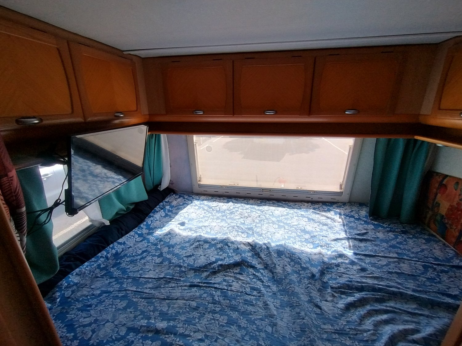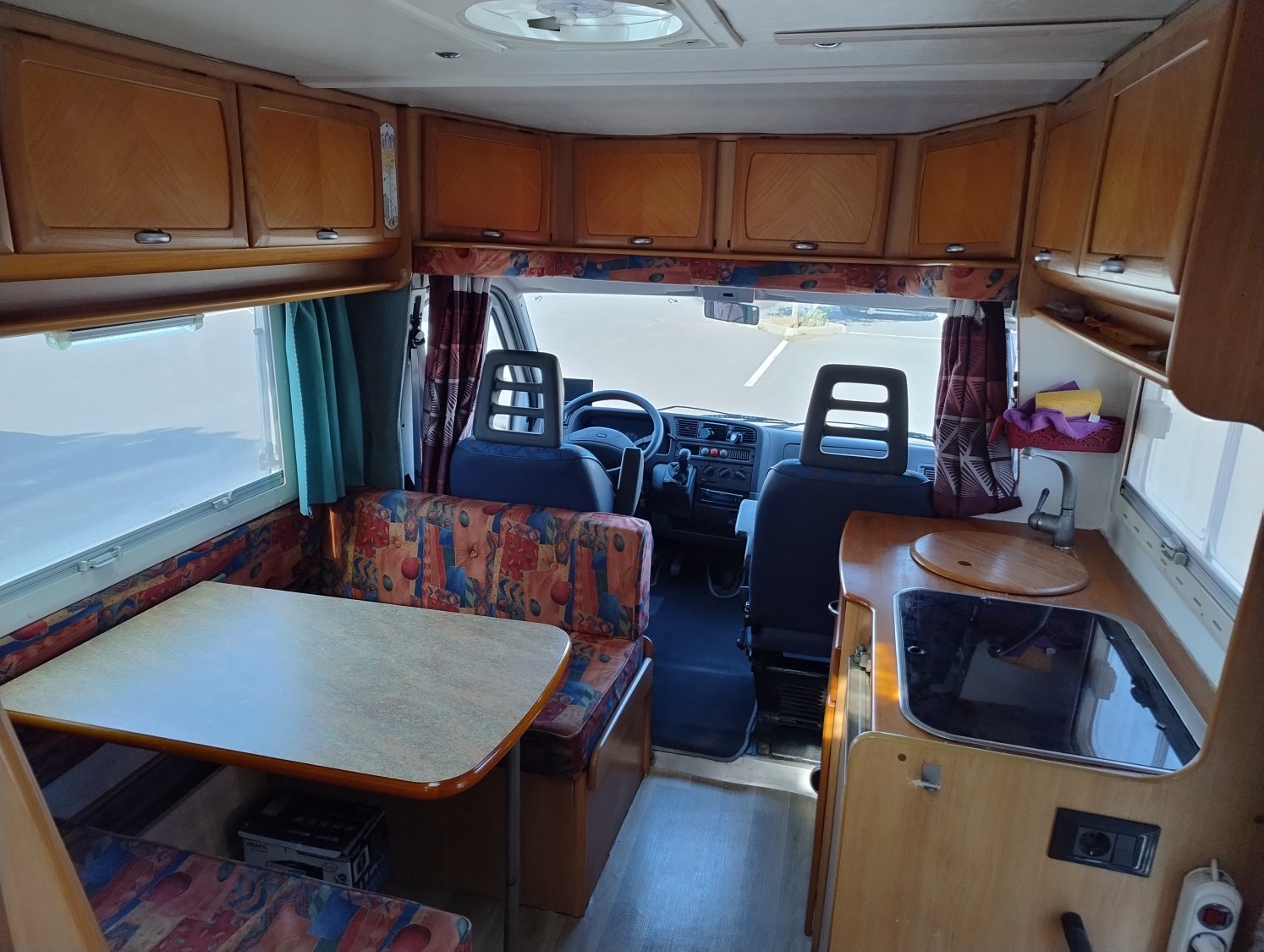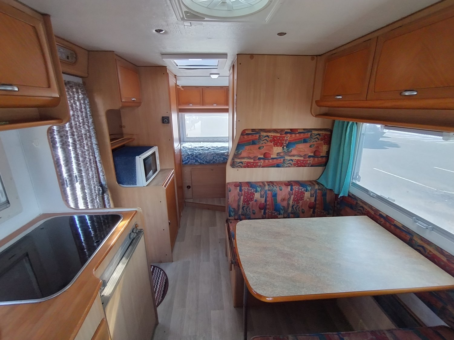 Une implantation idéale pour un couple pouvant s’adapter à une famille : un lit transversal sur soute à l’arrière et un grand salon à l’avant pouvant accueillir 2 couchages supplémentaires. La sellerie est en bon état !