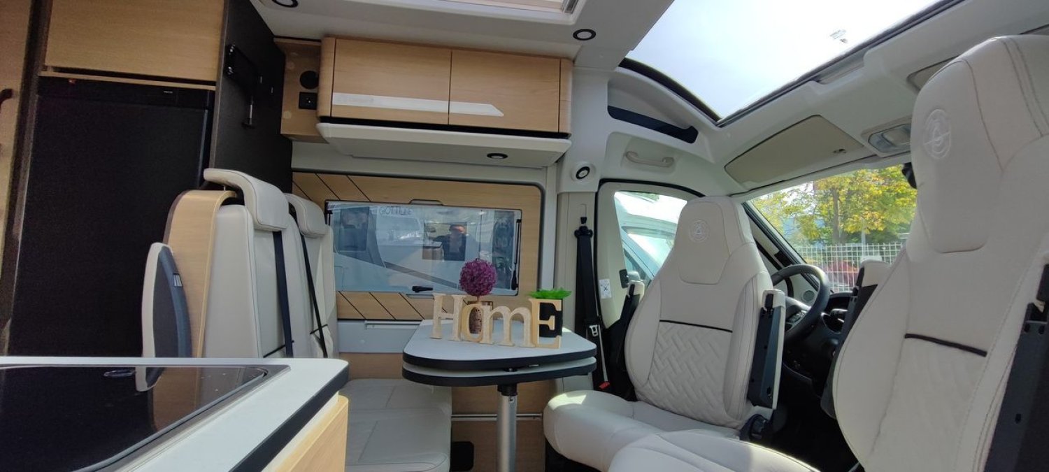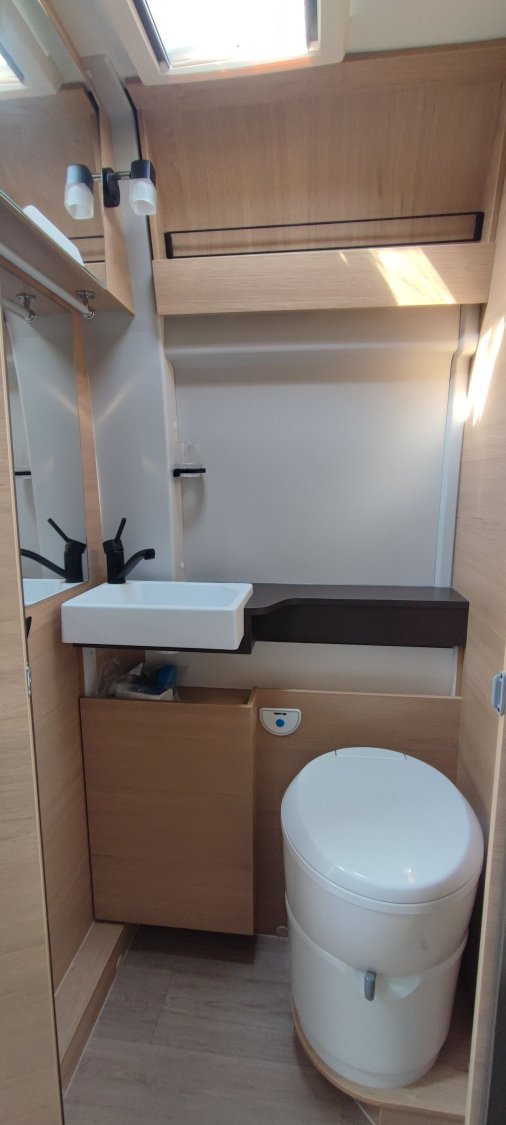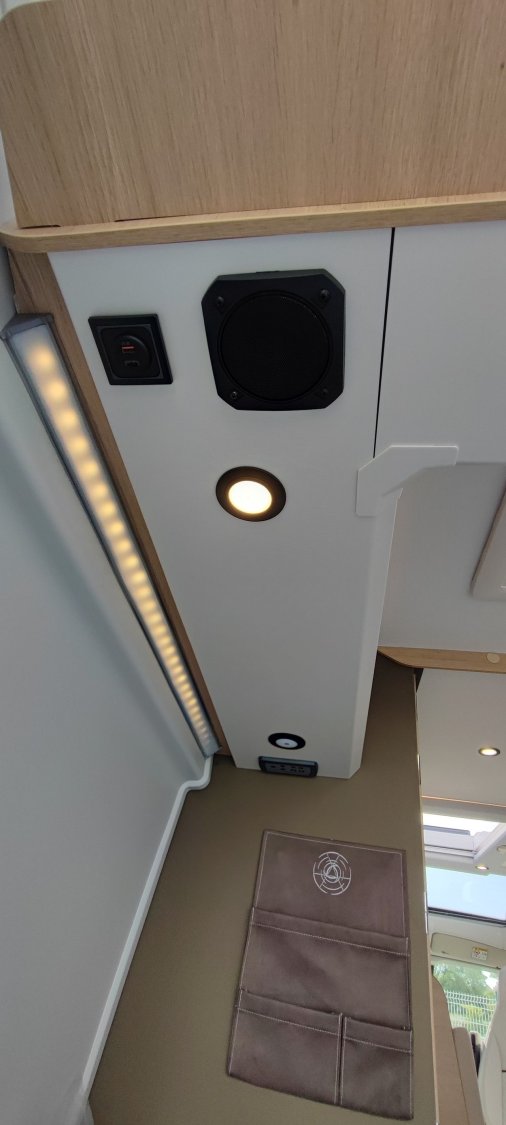 Profitez d’un confort optimal avec une douche et WC séparés, d’un grand lit modulable grâce à son système peigne, permettant un espace maximisé dans la soute. La penderie brevetée MODUL’SPACE, équipement exclusif de nos fourgons, offre une optimisation intelligente de l’espace à bord pour un confort et une praticité renforcés.
