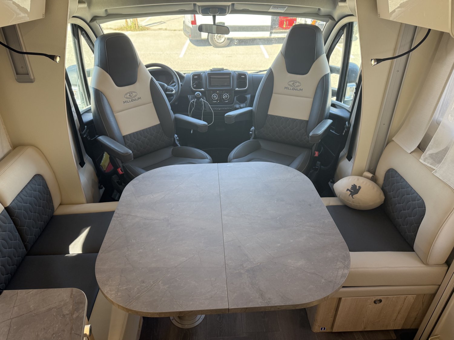 Le Florium Mayflower 70 LMF de 2025 que nous vous proposons, totalisant seulement 4 660 km, incarne le profilé haut de gamme familial par excellence. Monté sur Fiat Ducato 2,2 Multijet 140 ch associé à une boîte manuelle 6 rapports, il allie modernité, confort et sécurité, parfaitement adapté aussi bien aux escapades de week-end qu’aux grands voyages.
