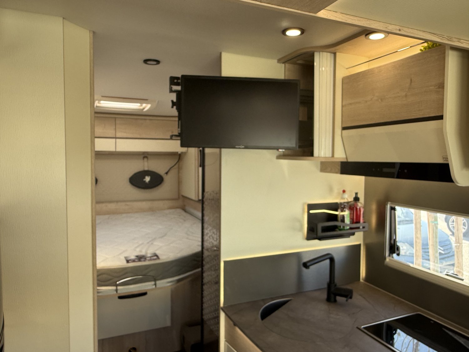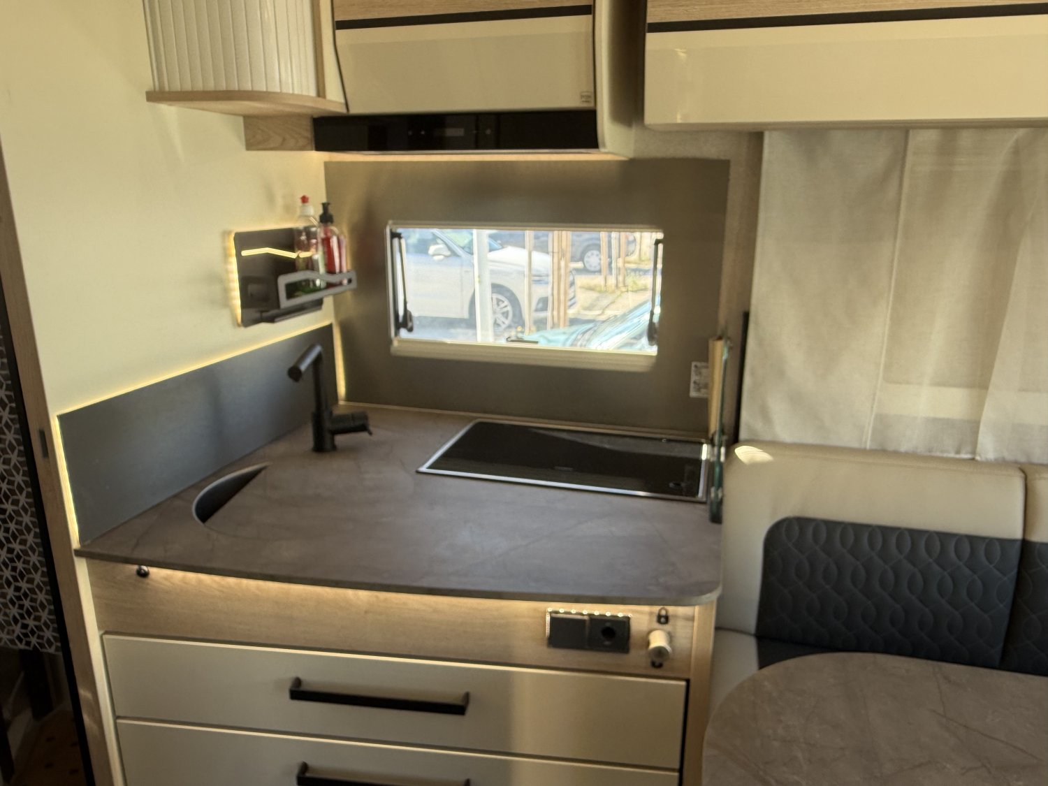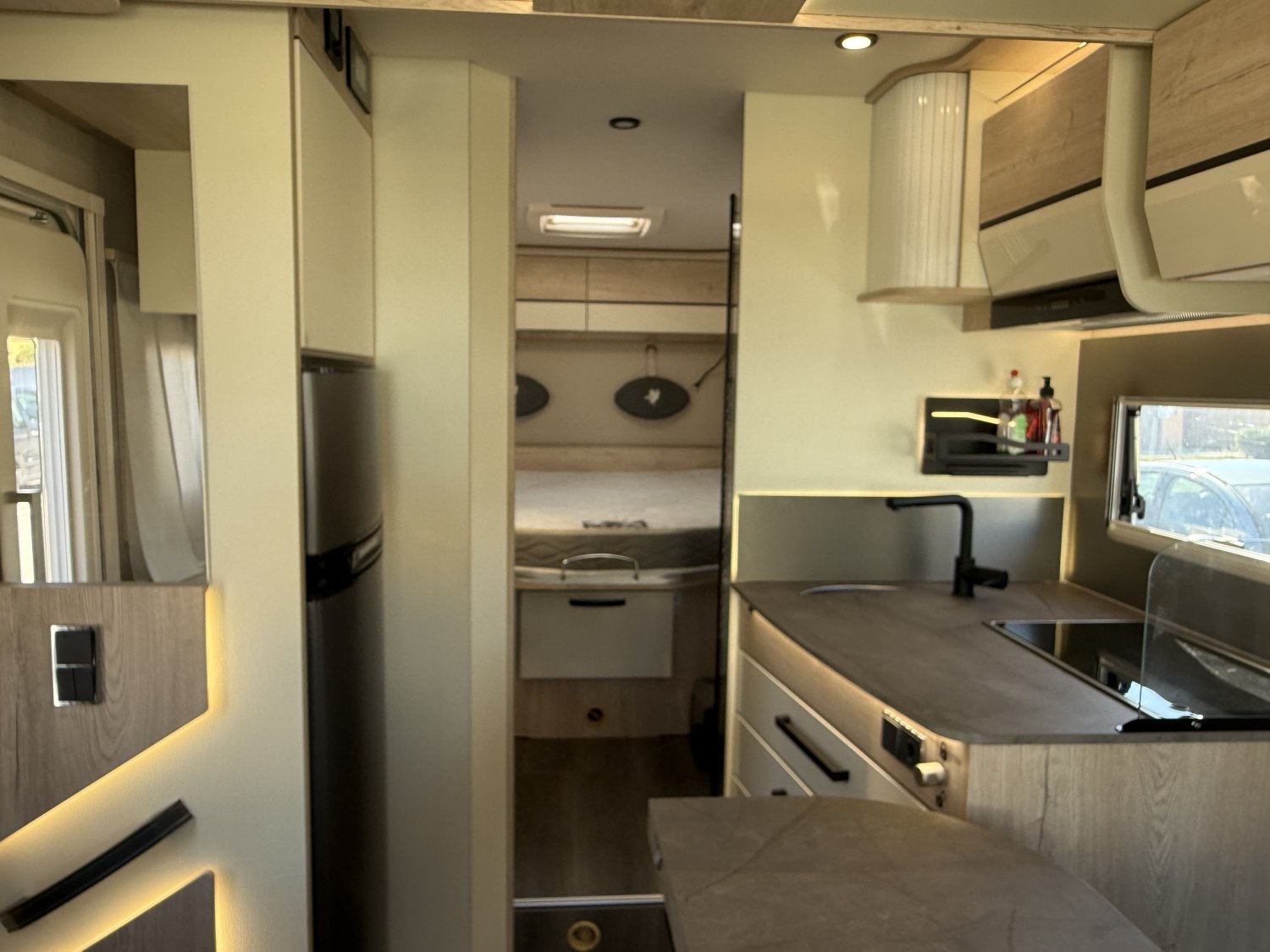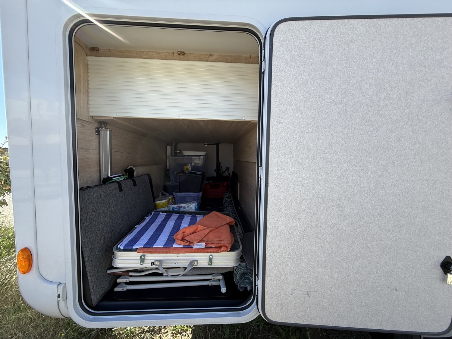 Le confort est assuré en toutes saisons grâce au chauffage Truma Combi 6 et aux réservoirs isolés/chauffés, tandis que l’autonomie est renforcée par un panneau solaire et une batterie AGM. La soute garage réglable électriquement, spacieuse et pratique, permet de transporter vélos ou matériel volumineux en toute sérénité.