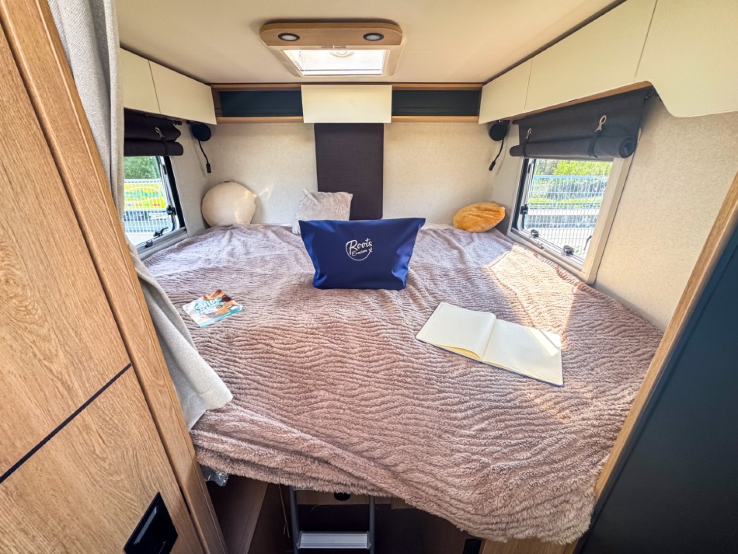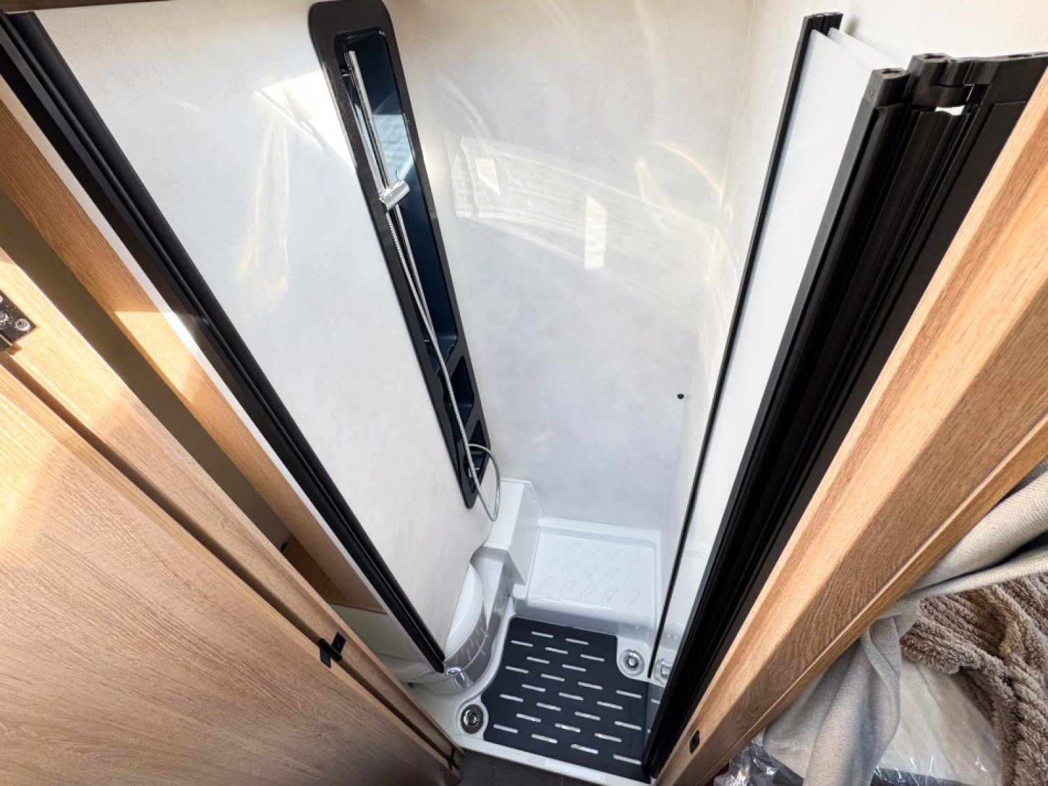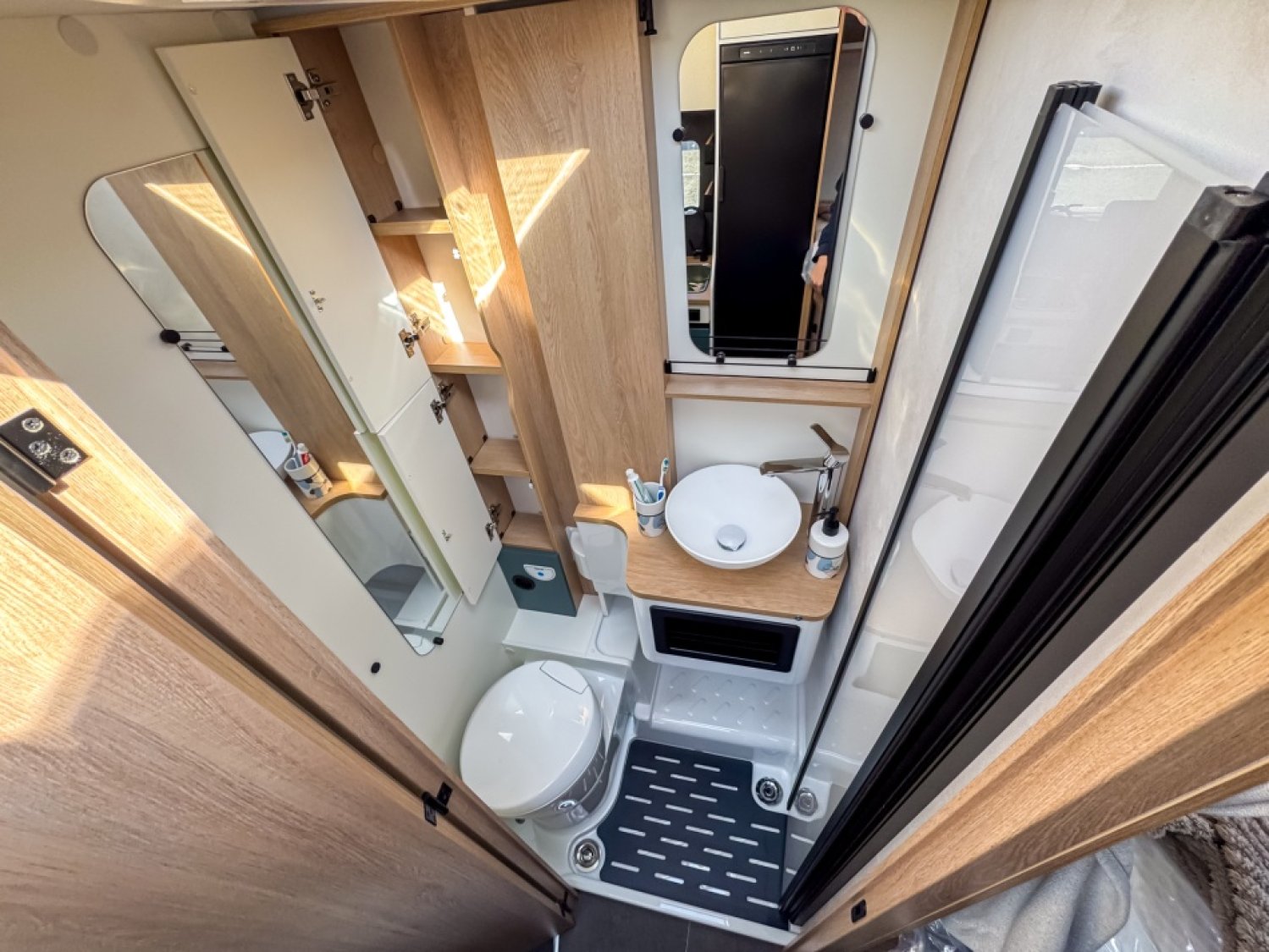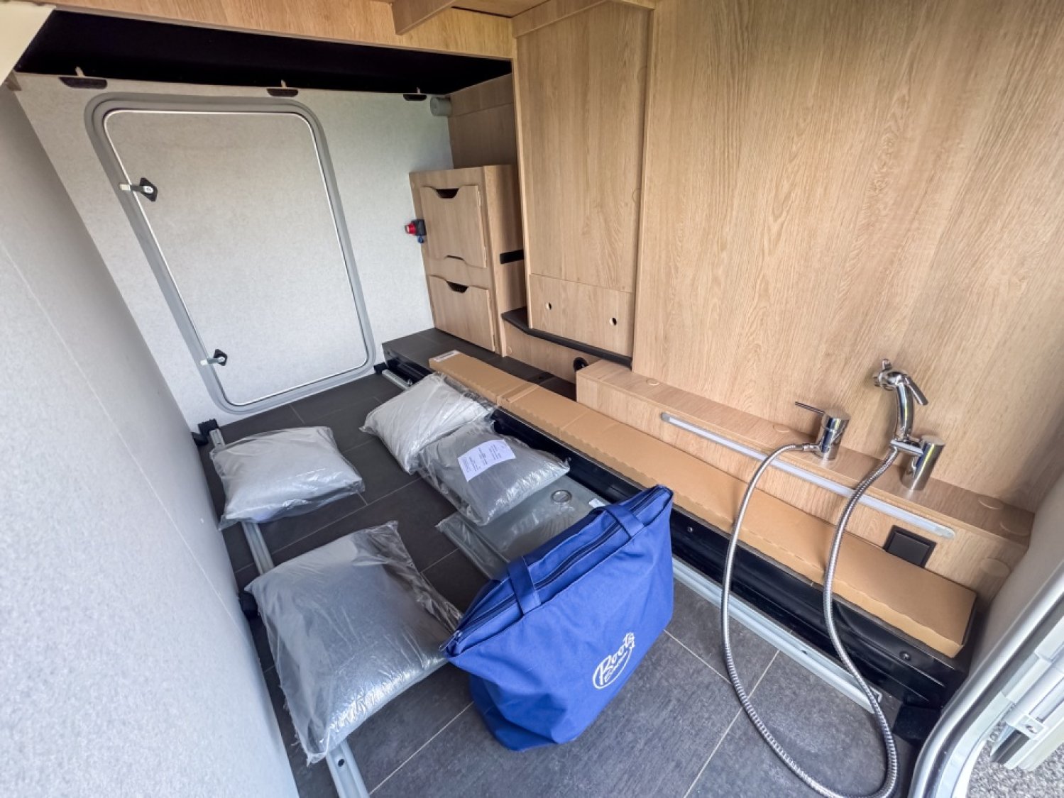 PACK GRAND CONFORT : ECLAIRAGE, RAILS ET PRISE 230 V EN SOUTE, DOUCHETTE EAU FROIDE/CHAUDE ENSOUTE, STORE BANNE, CAILLEBOTIS DANS LA DOUCHE, DETENDEUR/INVERSEUR AUTOMATIQUE - CRASH SENSORTRUMA®, RESERVOIR DES EAUX USEES HORS-GEL, POUBELLE INTEGREE ET PORTE-SERVIETTE REPLIABLE
