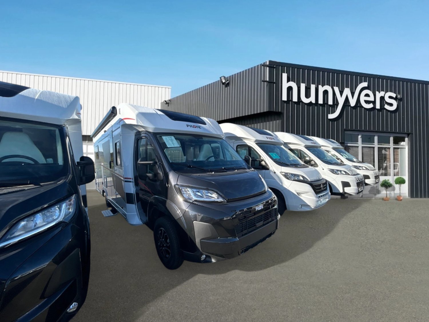 • Motorisation 2,2 L - 140 ch - boîte automatique. • Châssis Fiat 3,5 T. • Cabine noire. • PACK JANTES : jantes alliage 16”, volant en simili, aérateurs gris aluminium. • PACK MÉDIA 7” : autoradio 7” Pioneer® , DAB, AppleCar / Android Auto, caméra de recul, haut-parleurs dans la cabine et la cellule. • Batterie lithium 200 Ah et 2 panneaux solaires 100 W monocristallin TOPCon haute performance. • Booster pour une charge rapide de la batterie • Chauffage hybride Truma® D 6E (Diesel / 230 V). • Réfrigérateur à compression Thedford® 150 ou 158 l, selon modèle. • Store banne. • Tiroir bas de caisse. • Douchette eau froide/chaude dans la soute arrière. • Lit pavillon électrique avec sommier à lattes. • Sellerie bi-ton et bi-matière simili et tissu «Sand»