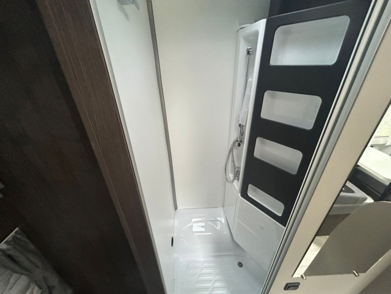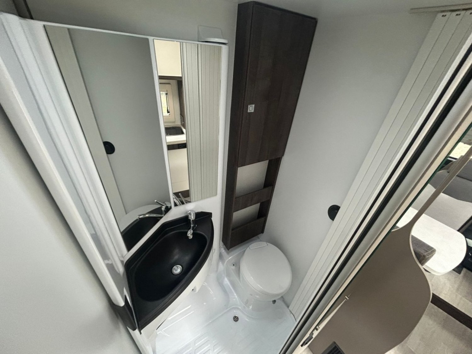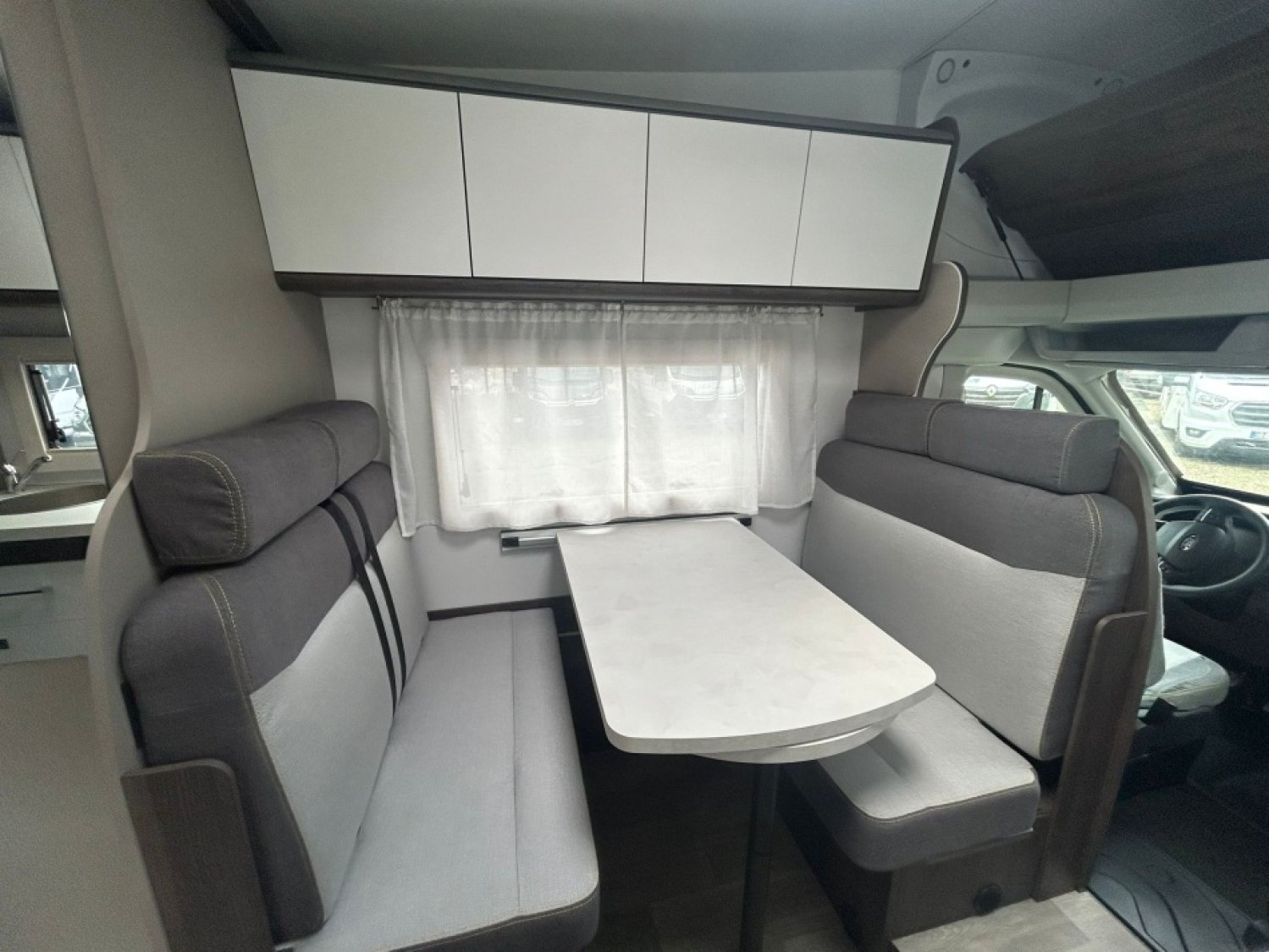 Une grande soute, un grand salon avec double dinette et table à rallonge et surtout une salle de bain moderne compacte et fonctionnelle