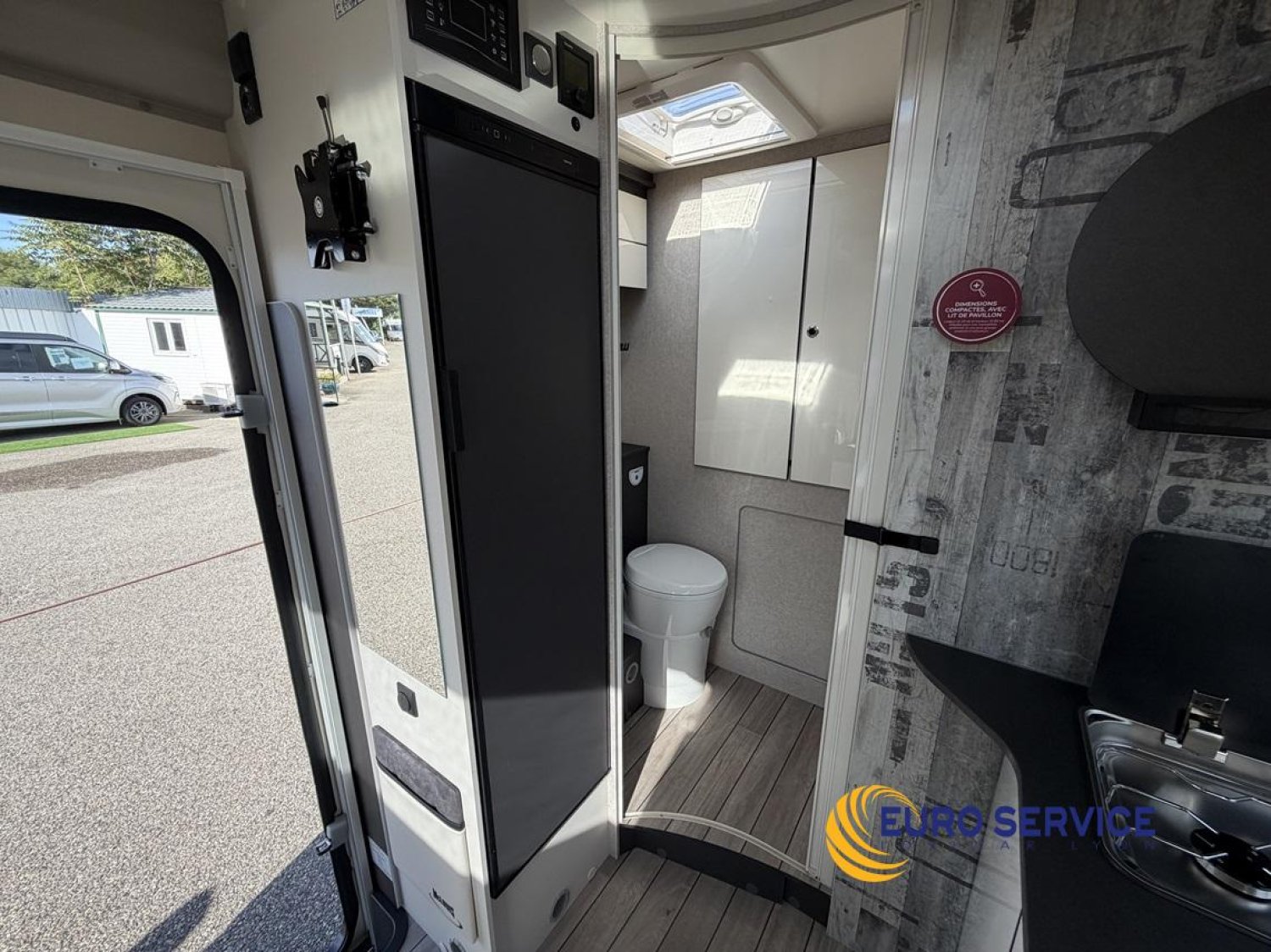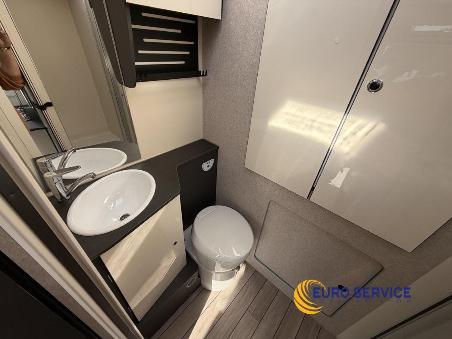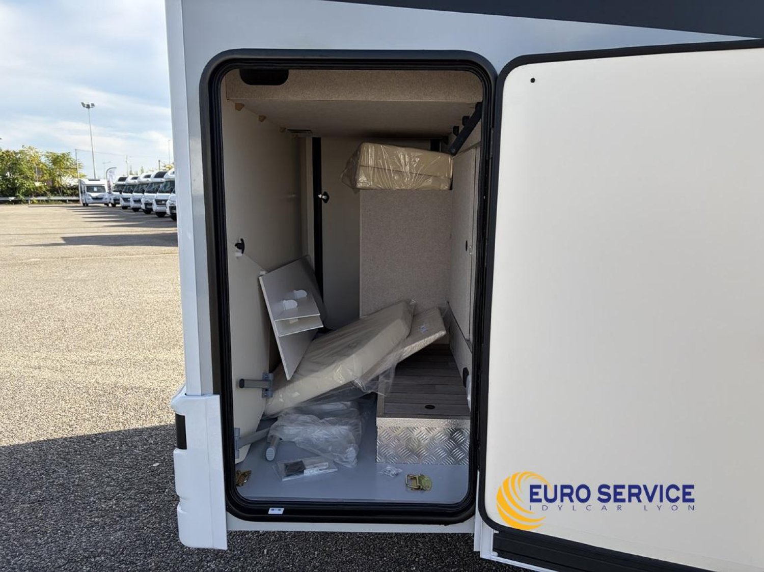 Pare-chocs avant blanc, Porte XL avec 2 points de fermeture fenêtre et fermeture centralisée, Panneau solaire 200W avec régulateur MPPT, Panneau de commandes CP-Plus, Support TV