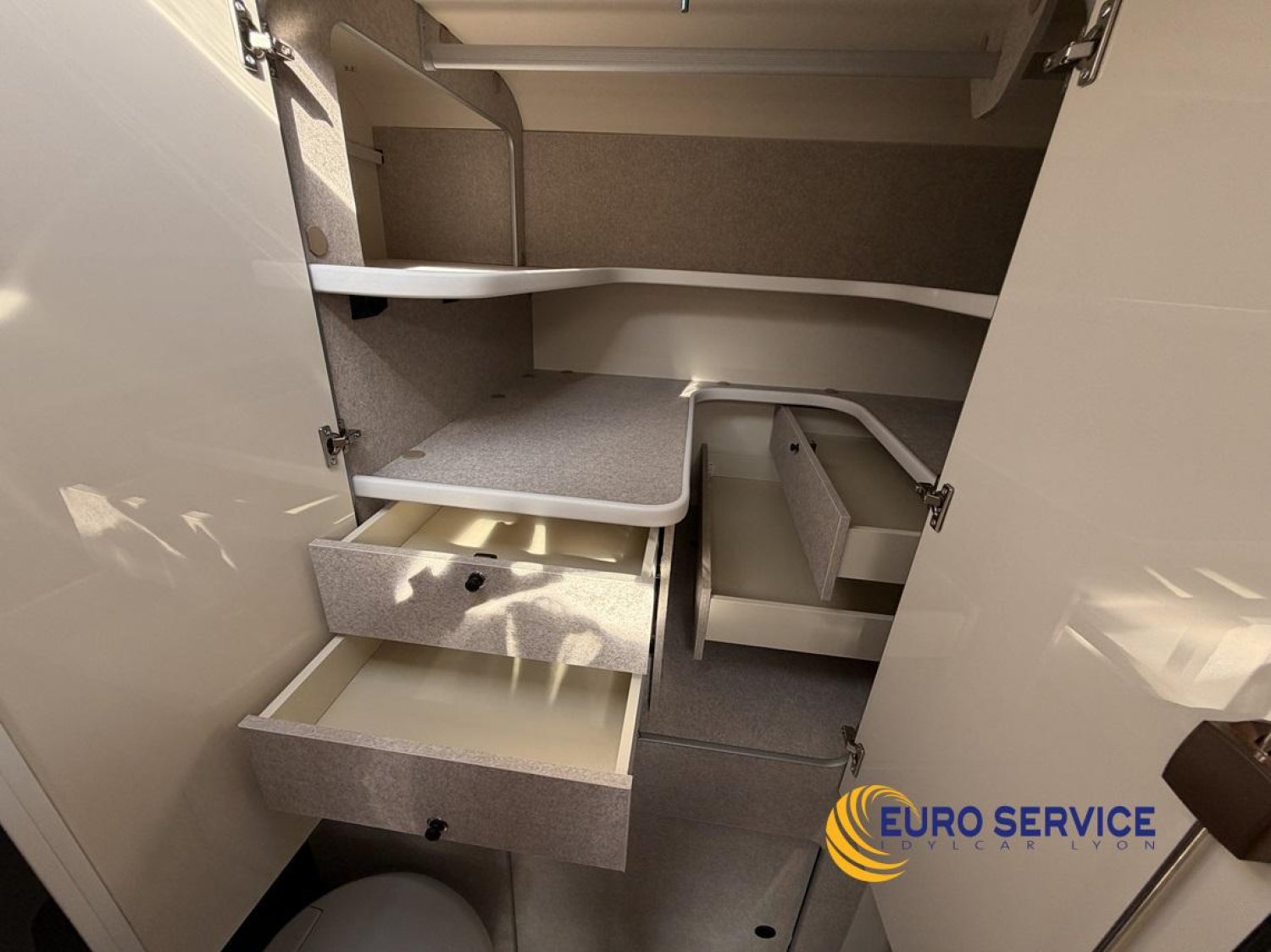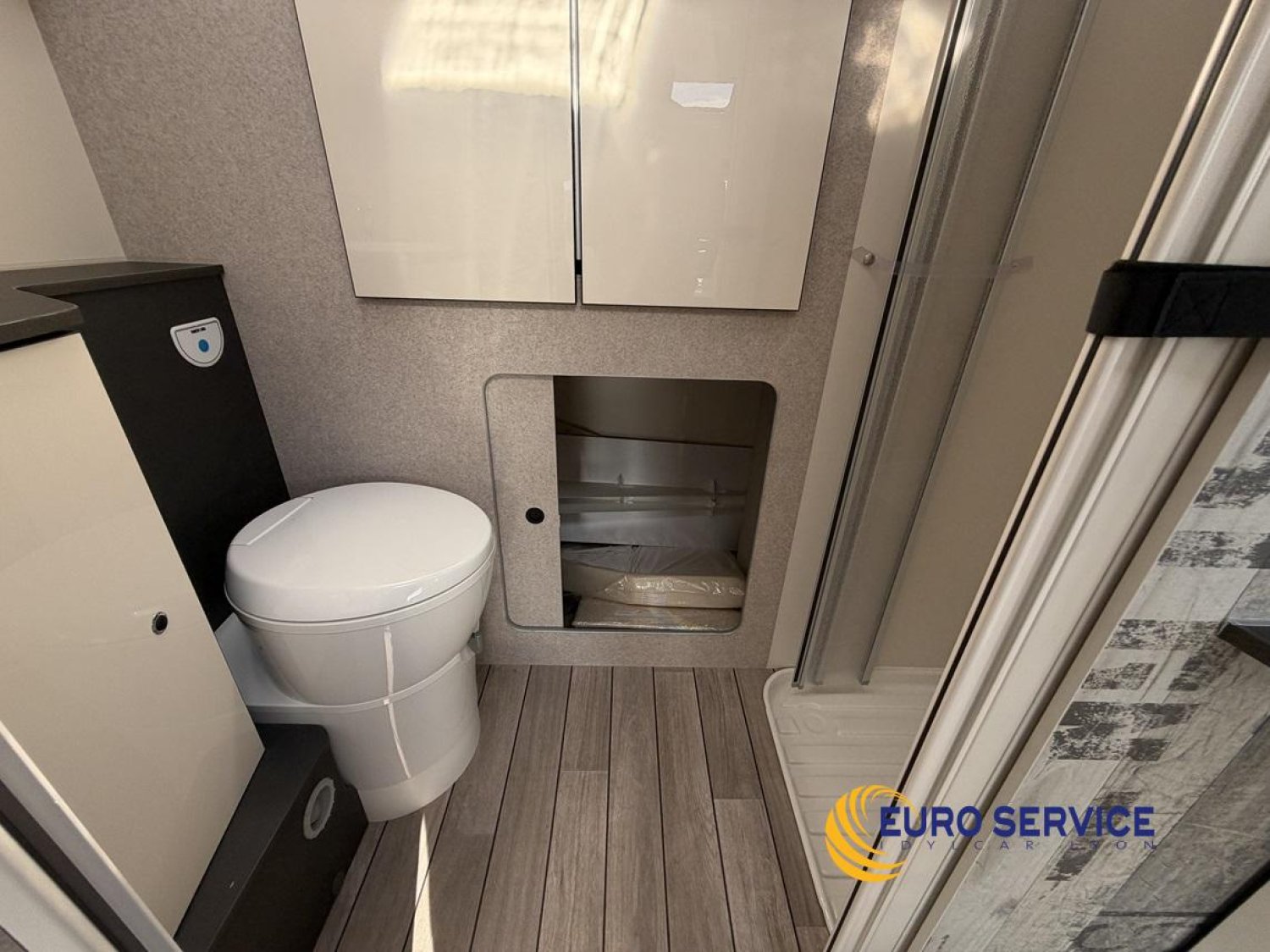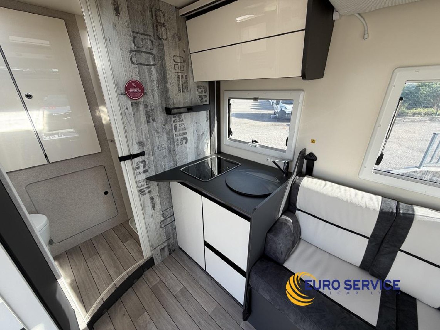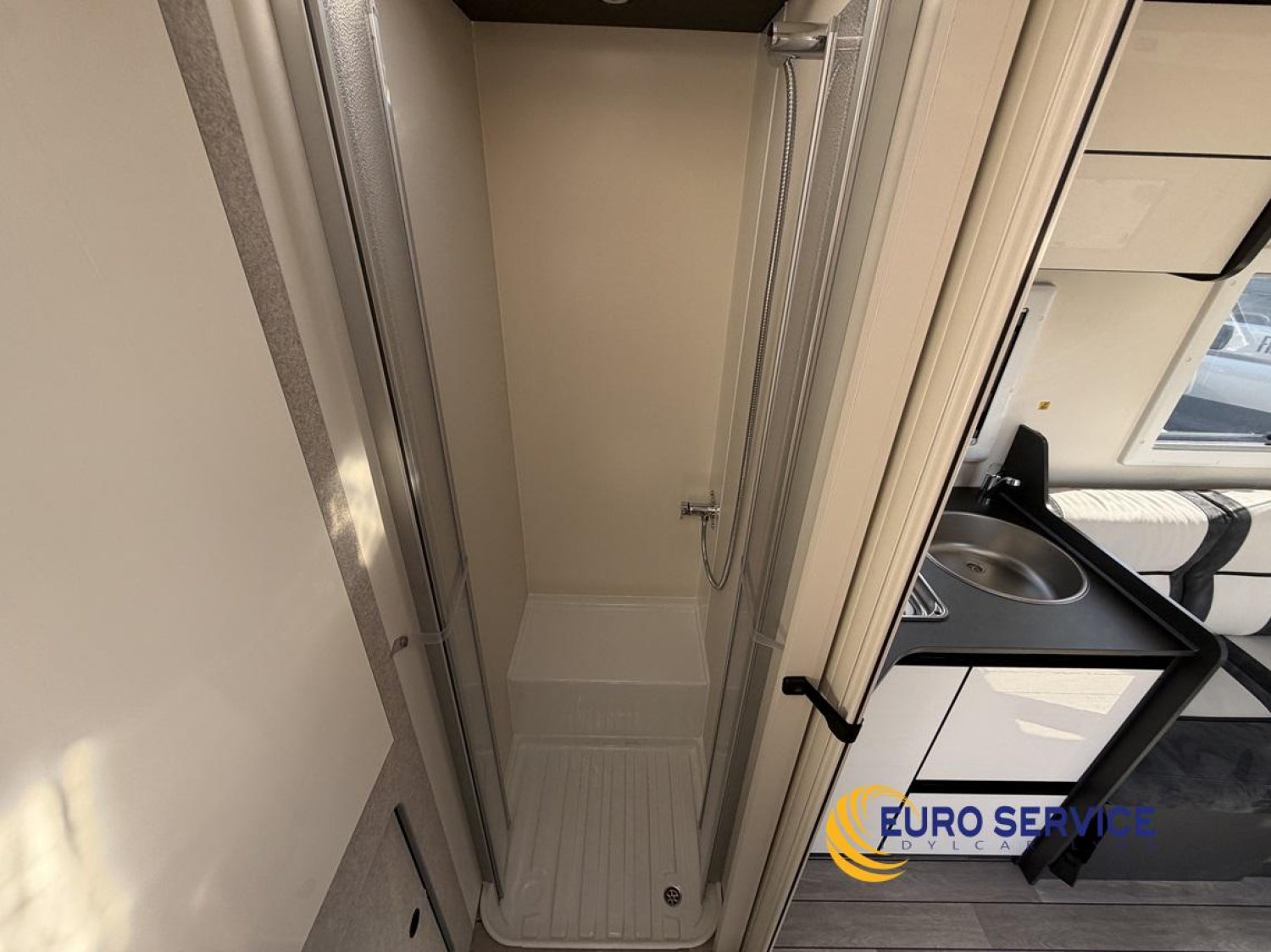 Pare-chocs avant blanc, Porte XL avec 2 points de fermeture fenêtre et fermeture centralisée, Panneau solaire 200W avec régulateur MPPT, Panneau de commandes CP-Plus, Support TV