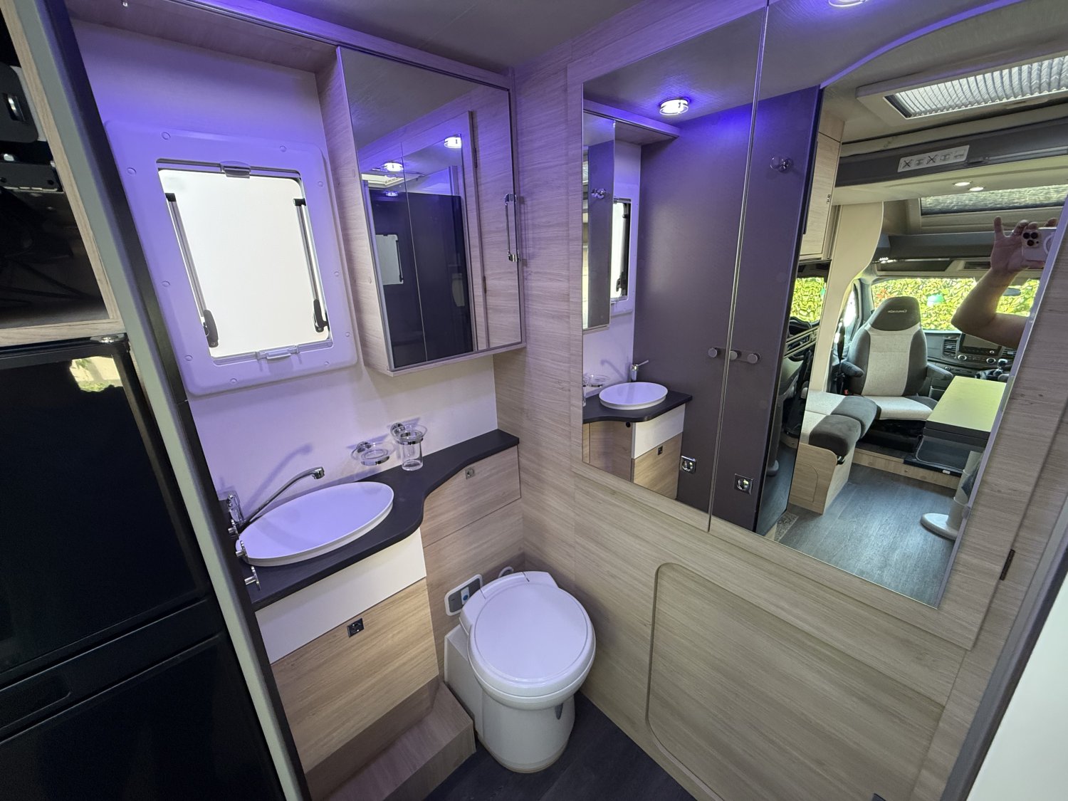 Ce véhicule est également doté d’un store extérieur, d’une TV 24’’ avec antenne satellite automatique, de stores occultants REMIS, et d’un éclairage LED intégral pour une ambiance chaleureuse à bord.