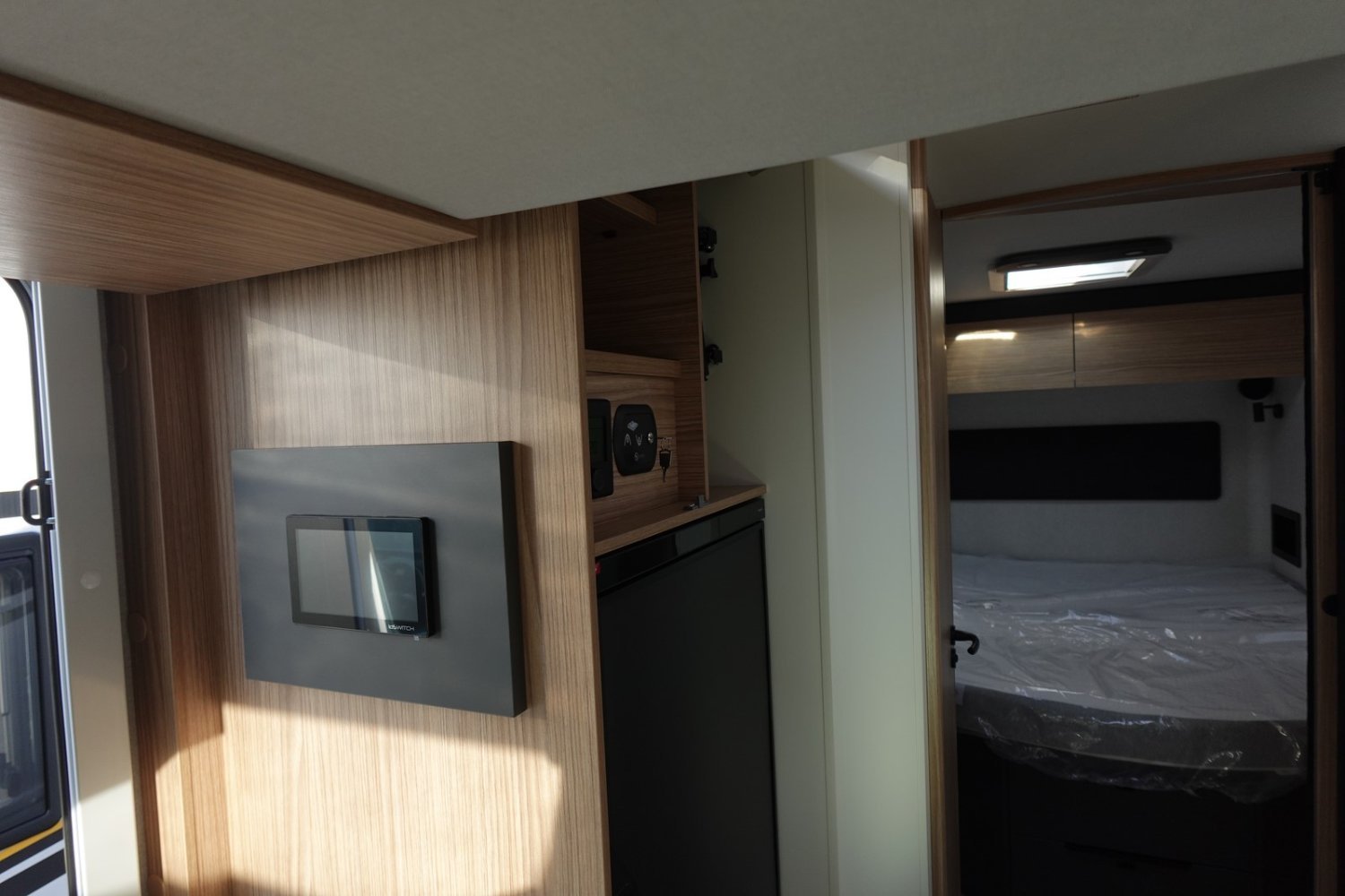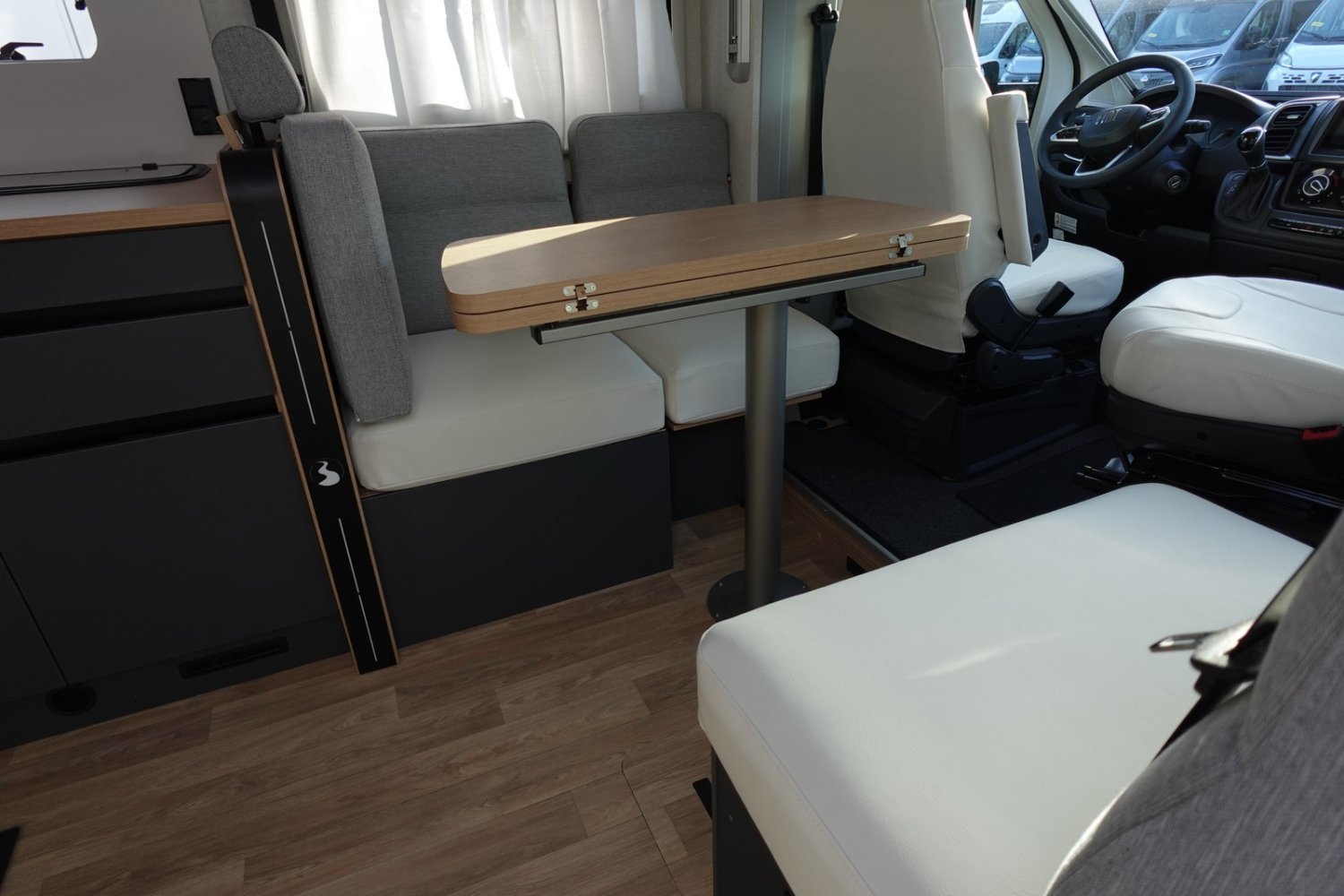 (Motorisation 140 CV, Boite automatique, Cabine noire, Batterie Lithium 200 Ah, 2 Panneaux solaire 100 W haute performance, Booster pour une charge rapide de la batterie, Chauffage hybride Truma D 6 E, Réfrigérateur à compression 158 litres, Store extérieur, Tiroir bas de caisse, Douchette eau froide/eau chaude dans la soute arrière, Lit de pavillon électrique avec sommier à lattes, Sellerie bi-ton et bi-matière simili et tissu Galet, Ambiance Pyla)