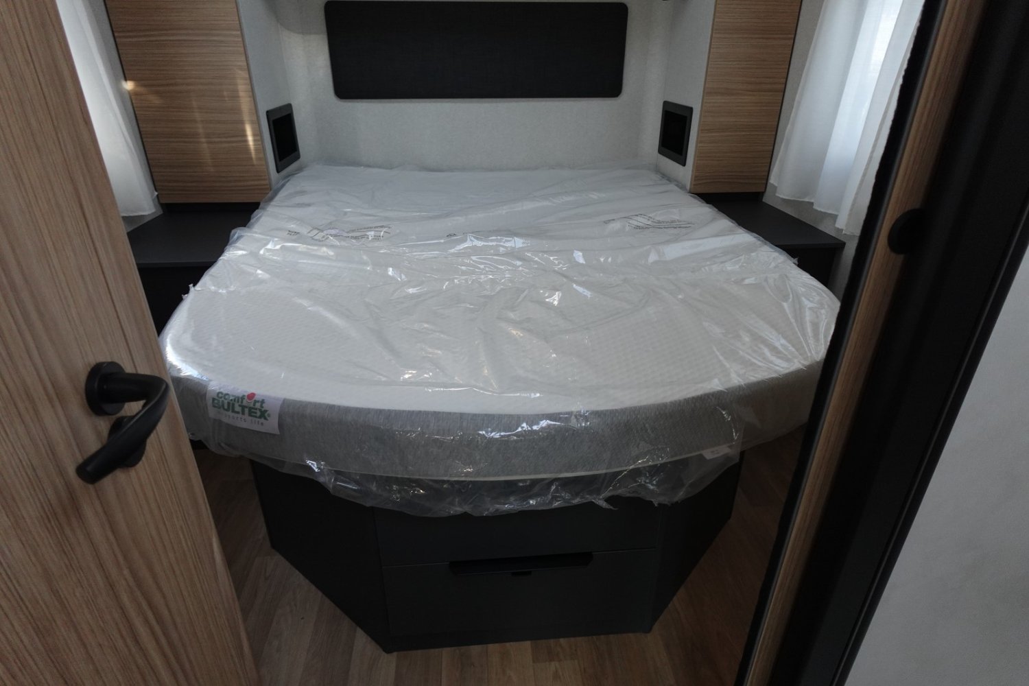 Avec la gamme **Nomade**, partez à l’aventure en toute liberté : un condensé de l’essentiel, agrémenté de touches de confort pour une expérience des plus agréable. Doté d'un salon face-face et banquettes confortables, d'un grand plan de travail en cuisine, d'une douche séparée et d'une belle chambre avec lit central, tout le confort est réuni dans le T740FC, pour des vacances sans égal.