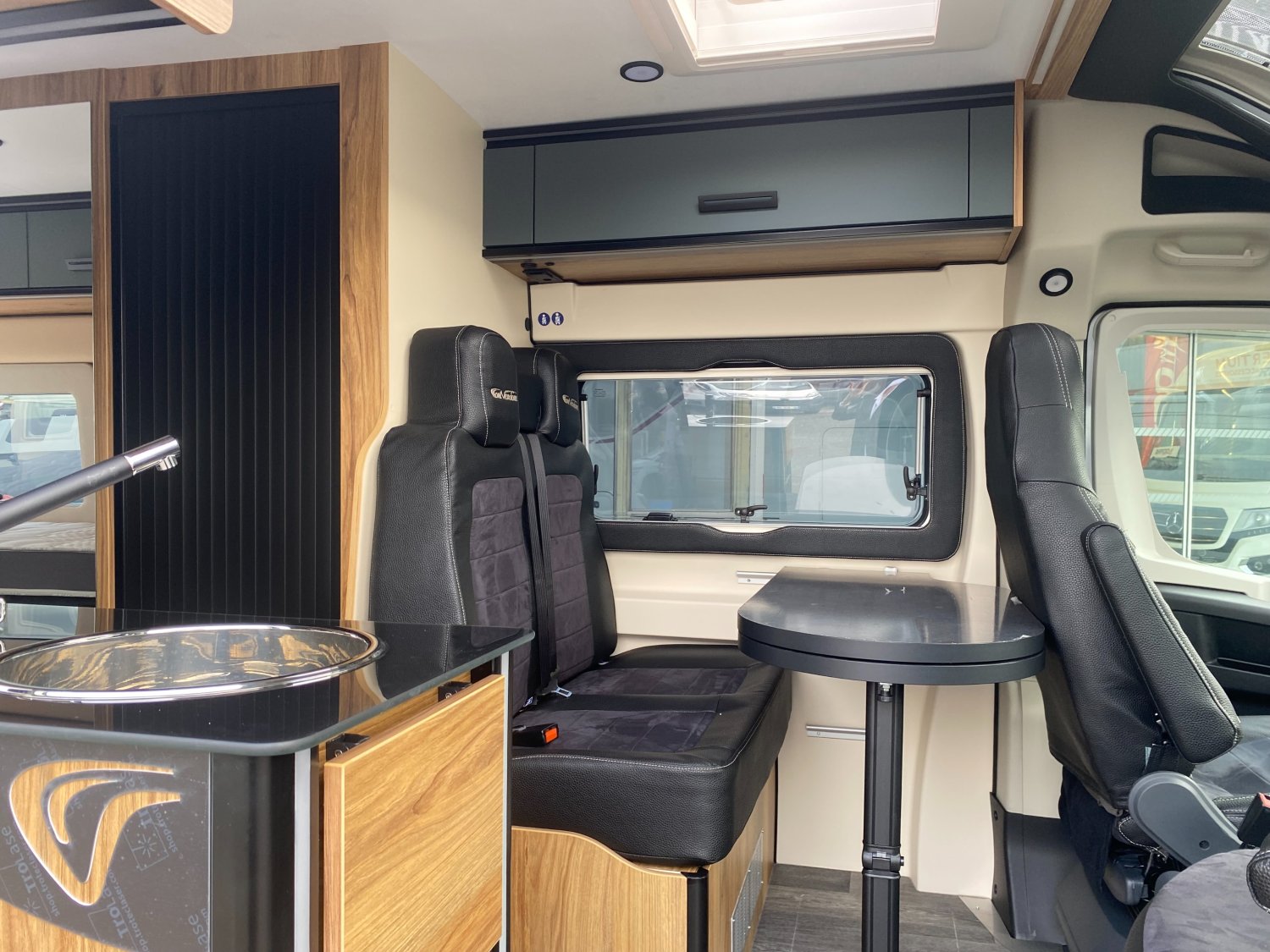 Sonde de réchauffage du réservoir des eaux usées, Chargeur de batterie DC-DC, Rétroviseurs à commande électrique et dégivrants, Airbags conducteur et passager, Chauffe-eau Truma D4 gasoil avec kit altitude, Régulateur et limiteur de vitesse, Batterie lithium 120 Ah, Store auvent, Panneaux solaires, Douchette extérieure eau froide, Pack multimédia ZENEC avec Android Auto & Apple Carplay, Réfrigérateur à compression 138L, Climatisation avant de cabine, Commande radio au volant, Volant en cuir, Jantes Alu 16", Caillebotis de douche, Moustiquaire de porte latérale, Rétro-caméra de recul, Pack Safety, Stores occultants plissés de cabine et portes arrières