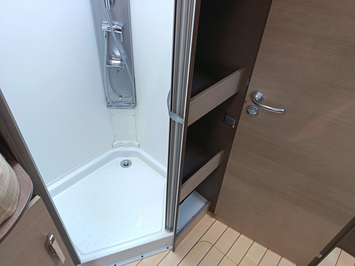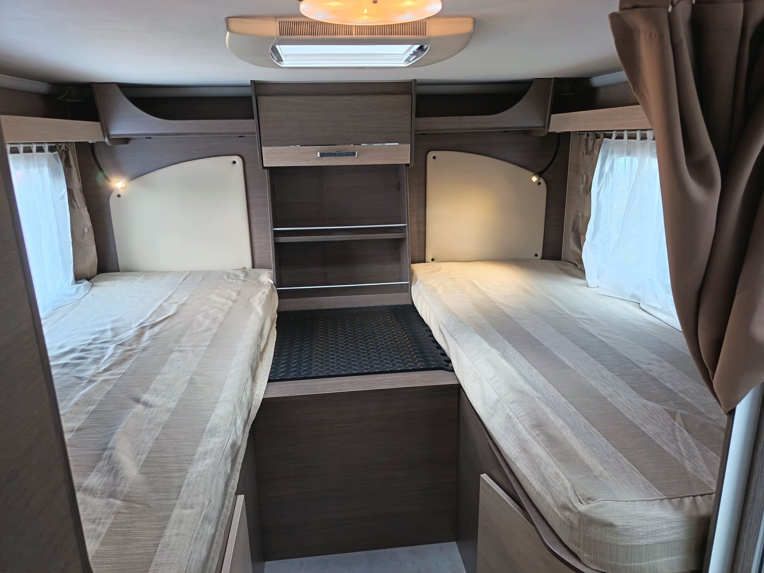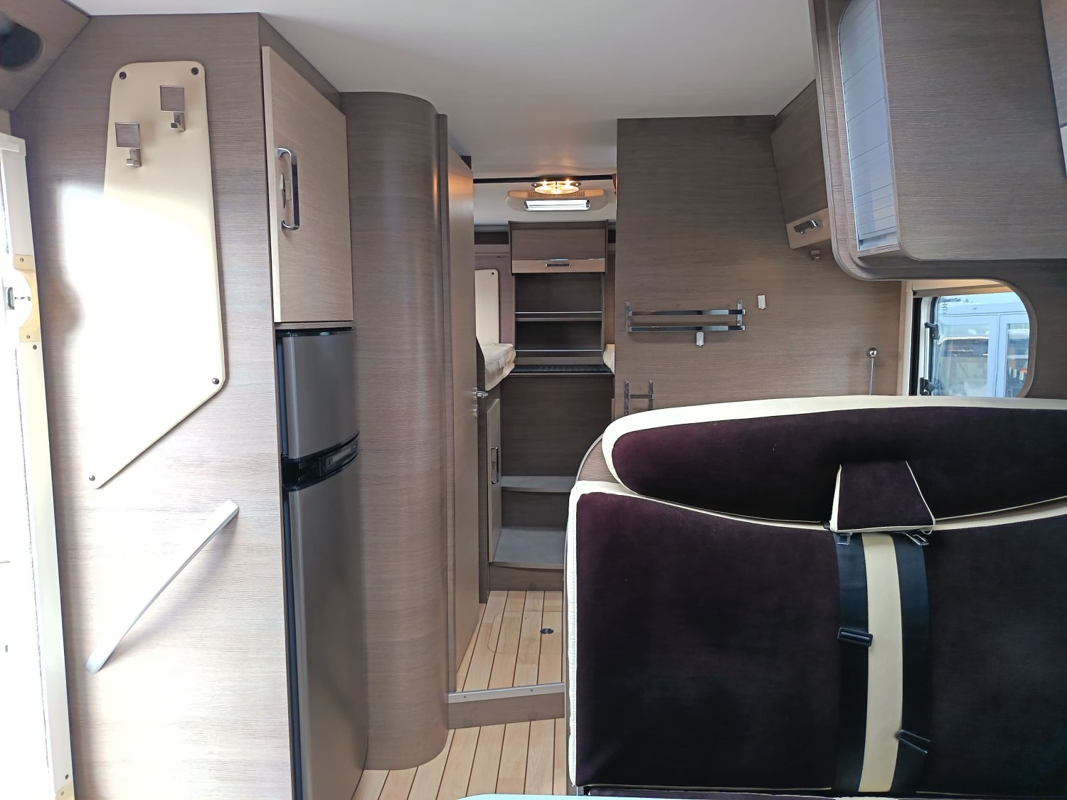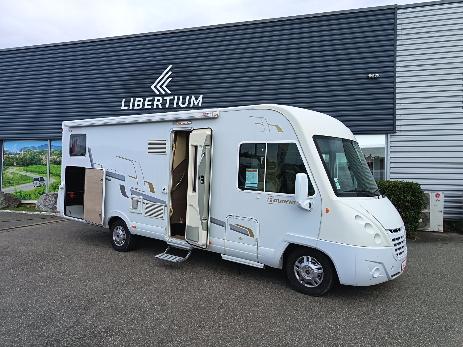 Très belle occasion de la marque Bavaria. Cet intégral offre 4 couchages dont 2 lits jumeaux à l'arrière sur une grande soute garage et un grand lit de cabine pour 2 personnes qui laisse le salon toujours utilisable et n'obstrue pas la porte d'entrée. La douche est séparée du toilette. La cuisine, de belles dimensions dispose de beaucoup de rangement et du grand frigo avec congélateur.