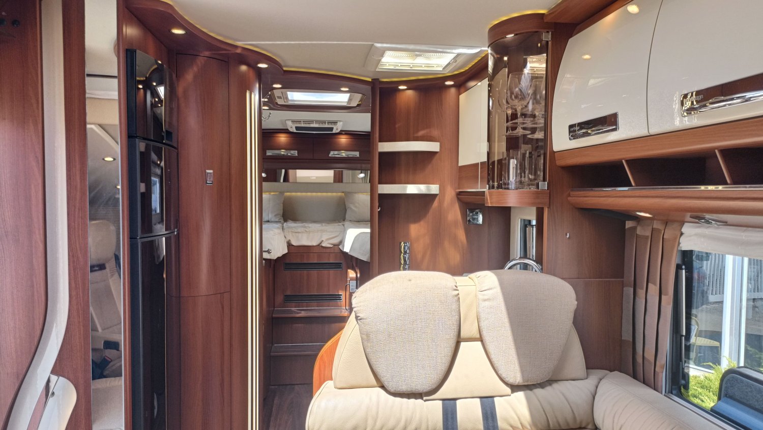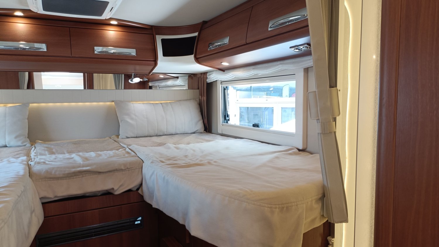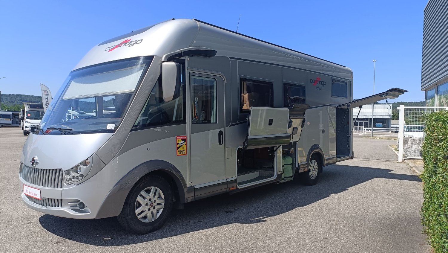 Intégral très haut de gamme pour les clients les plus exigeants. Carthago dispose d'un véritable savoir-faire dans la fabrication des intégraux et des poids lourd. Cette occasion de première main est dans un très bel état général. Sa grande soute garage, isolée et capitonnée, peut accueillir une moto. Conçu sur un châssis ALKO avec un double plancher rangement et traversant, une utilisation en toutes saisons et par des températures rigoureuses est possible. Le volume de vie et sa qualité de finition ne laisse pas insensible.