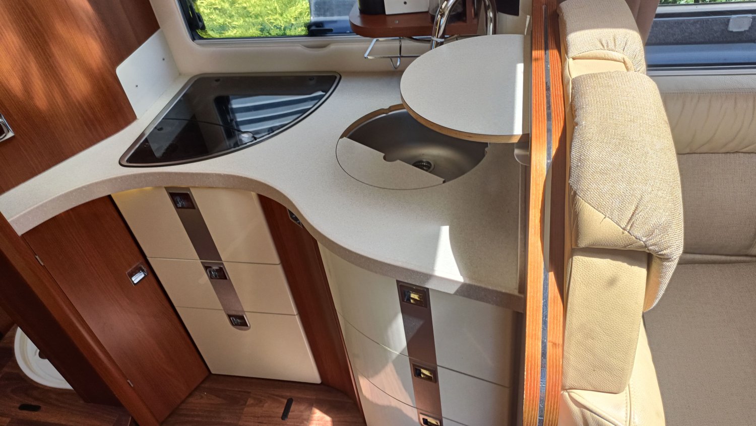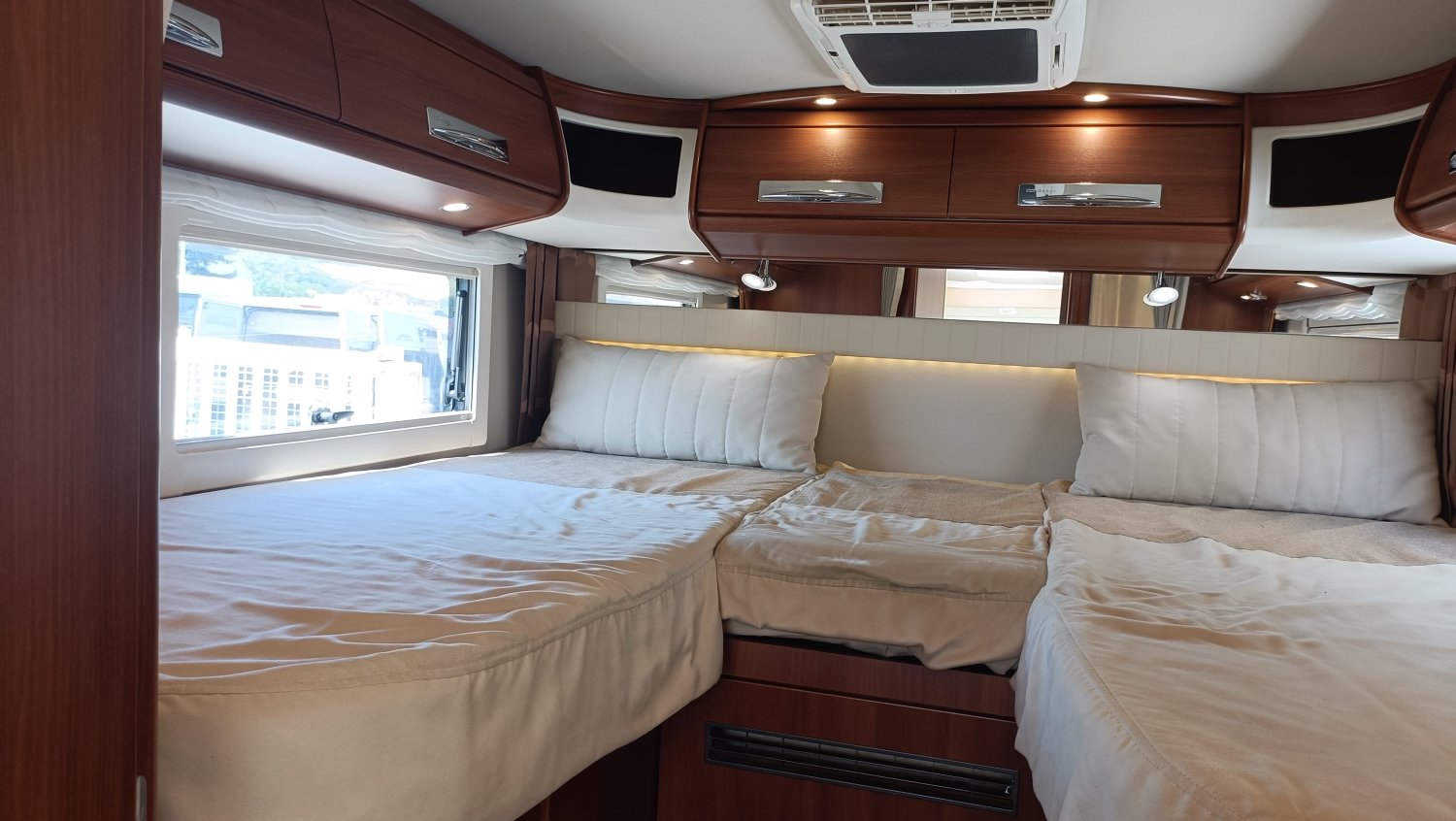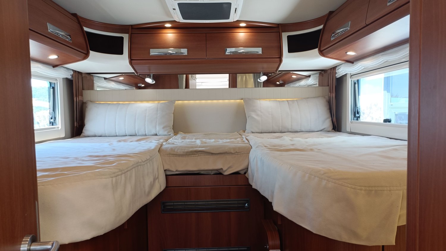 Intégral très haut de gamme pour les clients les plus exigeants. Carthago dispose d'un véritable savoir-faire dans la fabrication des intégraux et des poids lourd. Cette occasion de première main est dans un très bel état général. Sa grande soute garage, isolée et capitonnée, peut accueillir une moto. Conçu sur un châssis ALKO avec un double plancher rangement et traversant, une utilisation en toutes saisons et par des températures rigoureuses est possible. Le volume de vie et sa qualité de finition ne laisse pas insensible.