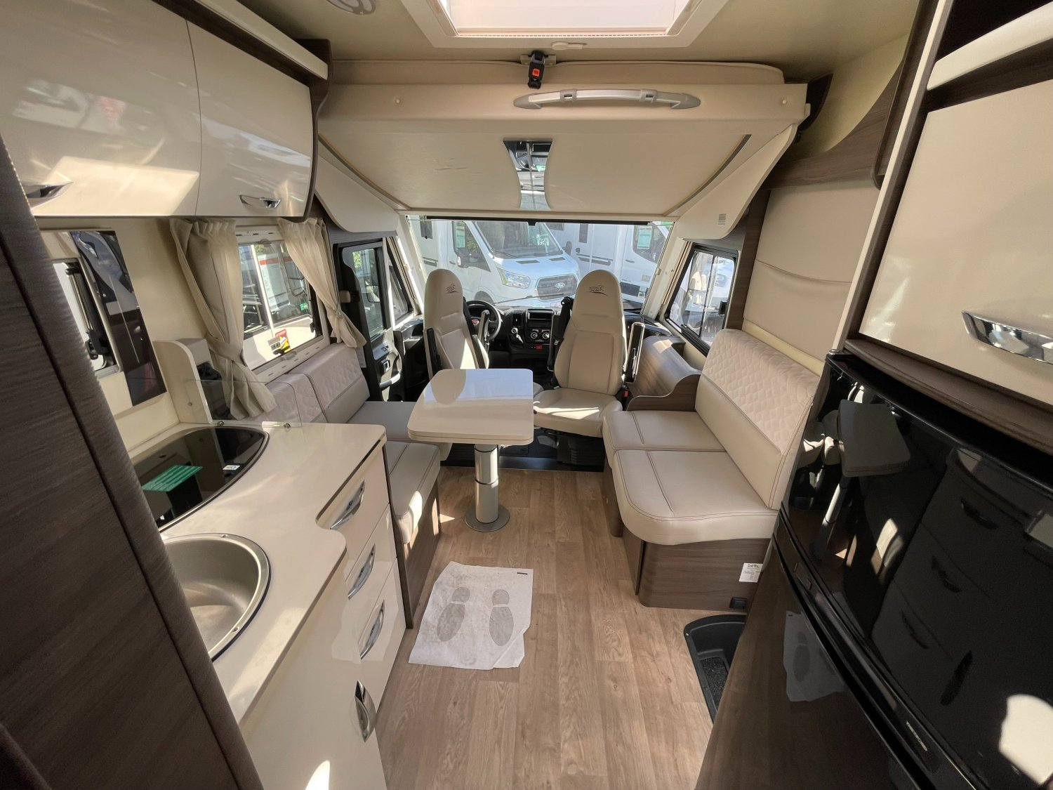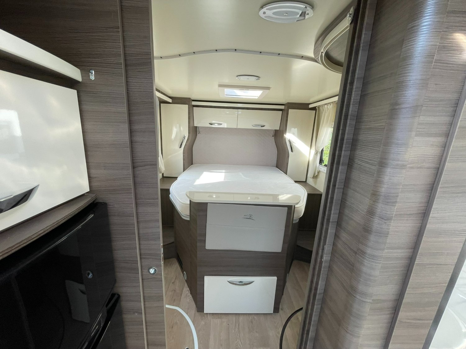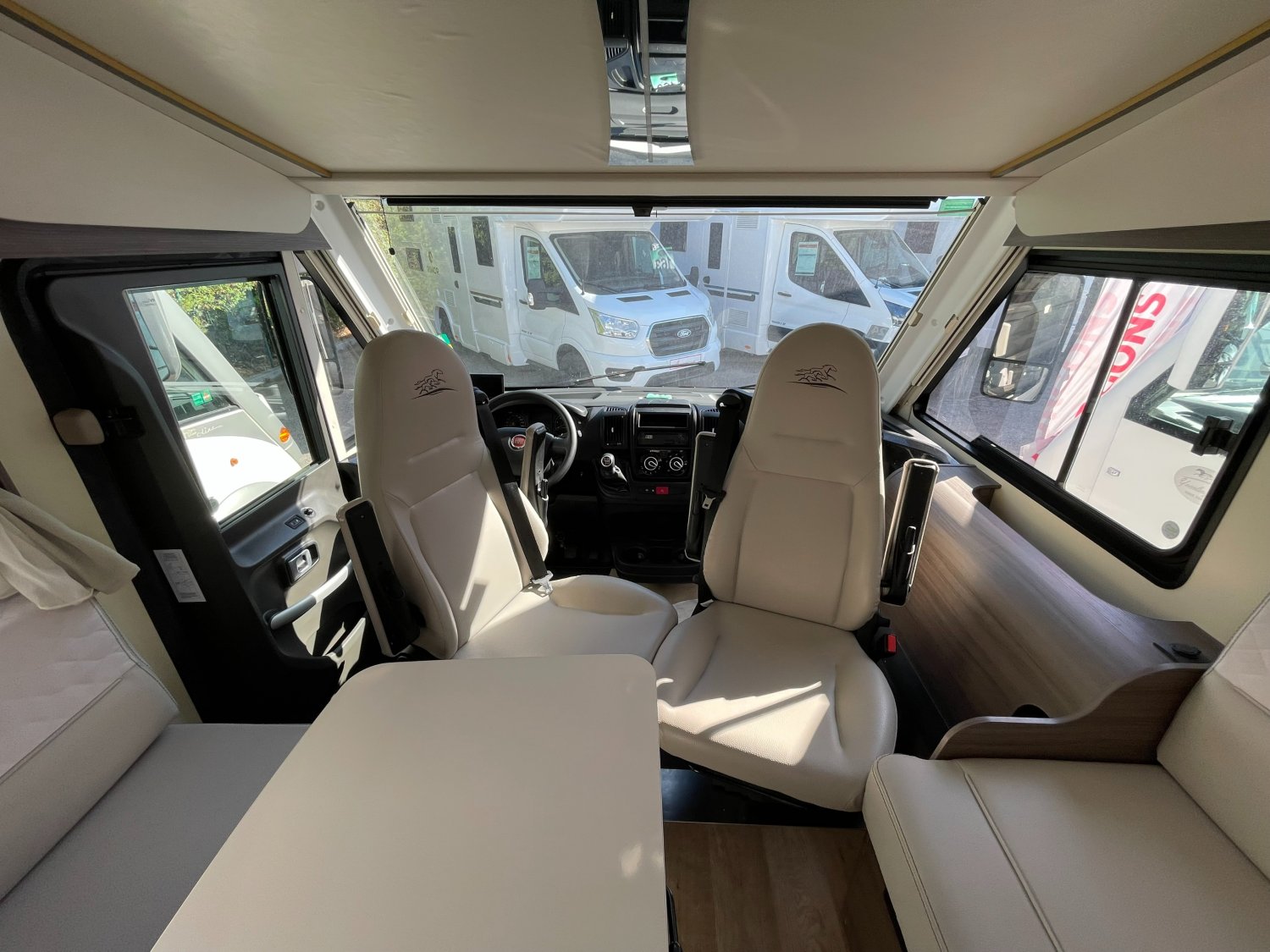 le salon face/face transformable en places route débarque en force. Il est proposé sur un intégral lit central de 7,40m en l’associant à un lit de pavillon . Le Yearling 881 ajoute un étonnant meuble en pied de lit central dans lequel s’escamote la TV et qui a le mérite de renouveler le genre.