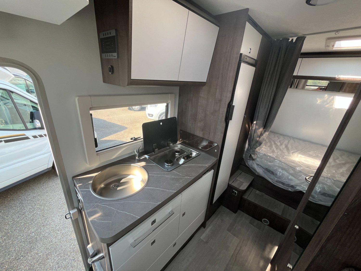 Camping-car profilé neuf, collection 2025. Longueur 6,34 m, largeur 2,35 m, hauteur 2,90 m. Motorisation Ford Transit 2.0L Diesel 130 ch, 4 places carte grise et 4 couchages. Configuration avec lit sur soute, idéale pour voyager en couple ou en famille.
