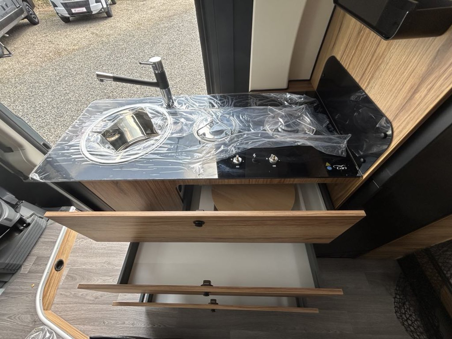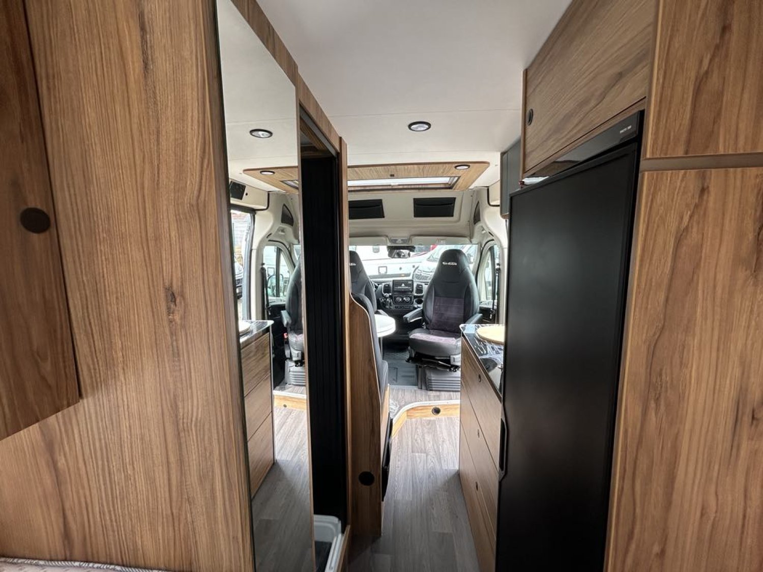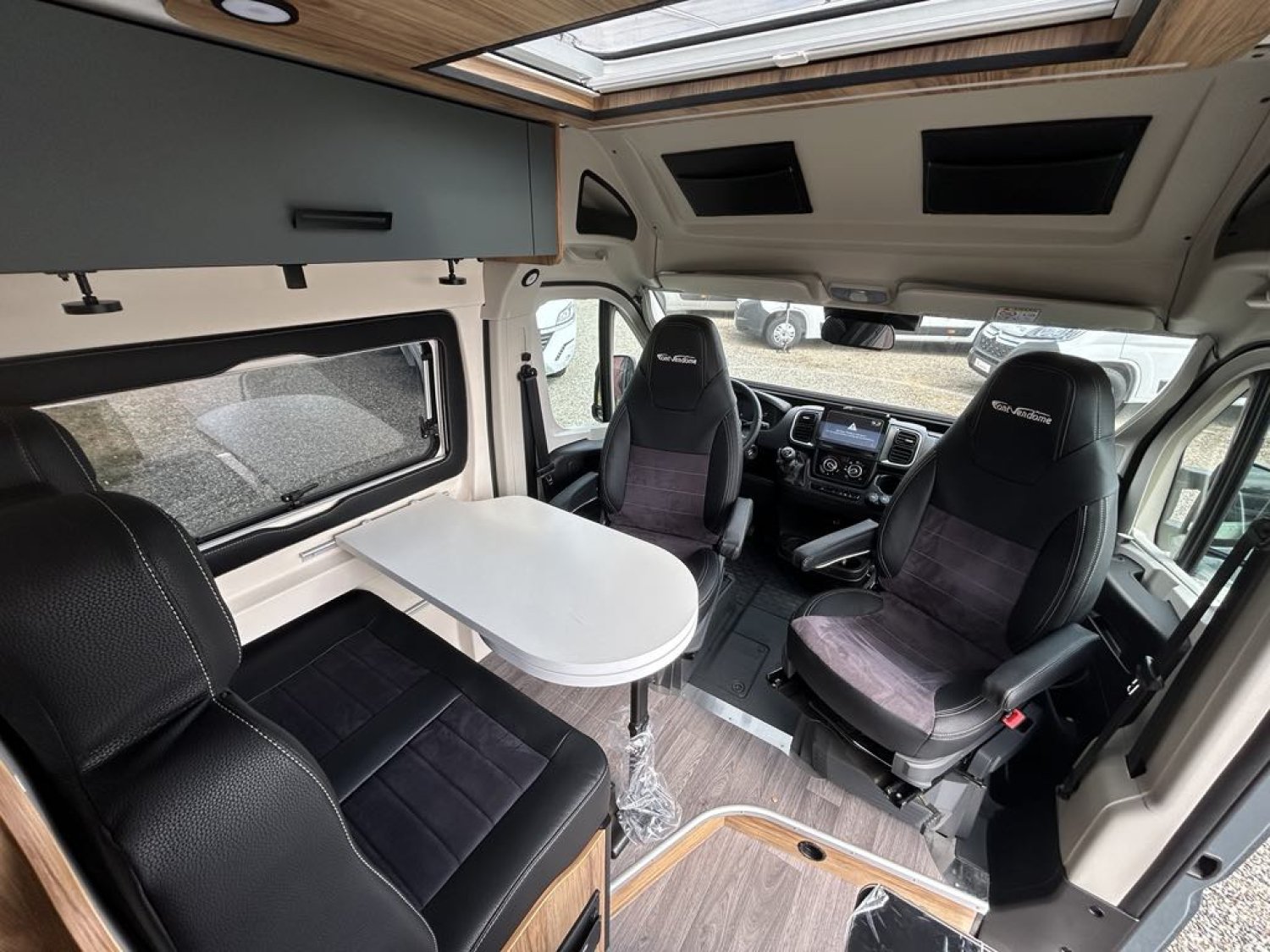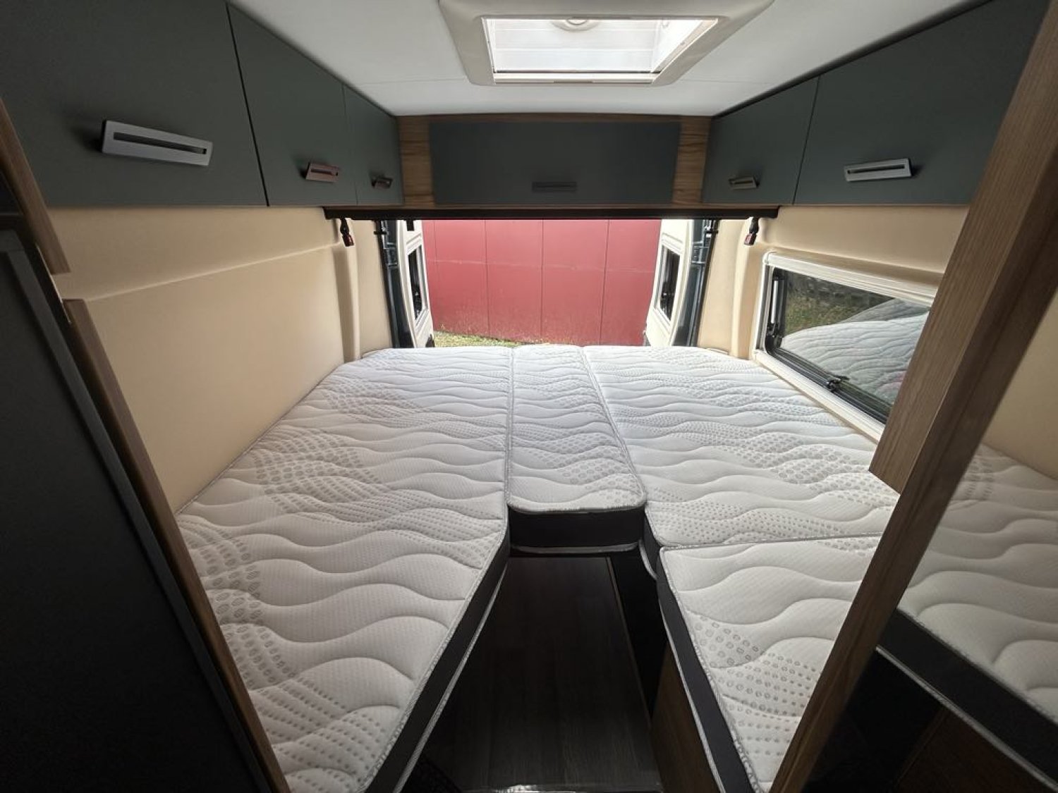 Le Duo Van crée en 2014, a été spécialement conçu pour les couples, offrants des espaces de vie généreux. Ses lits arrière jumeaux sur sommiers à lattes peuvent se transformer en un grand lit simple, avec de nombreux rangements intégré. Son coin toilette, avec WC escamotable et paroi de douche, est à la fois pratique et spacieux.