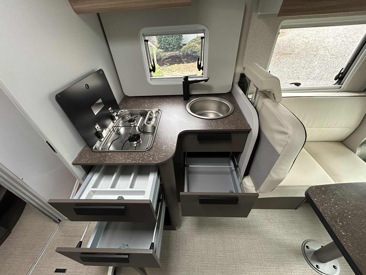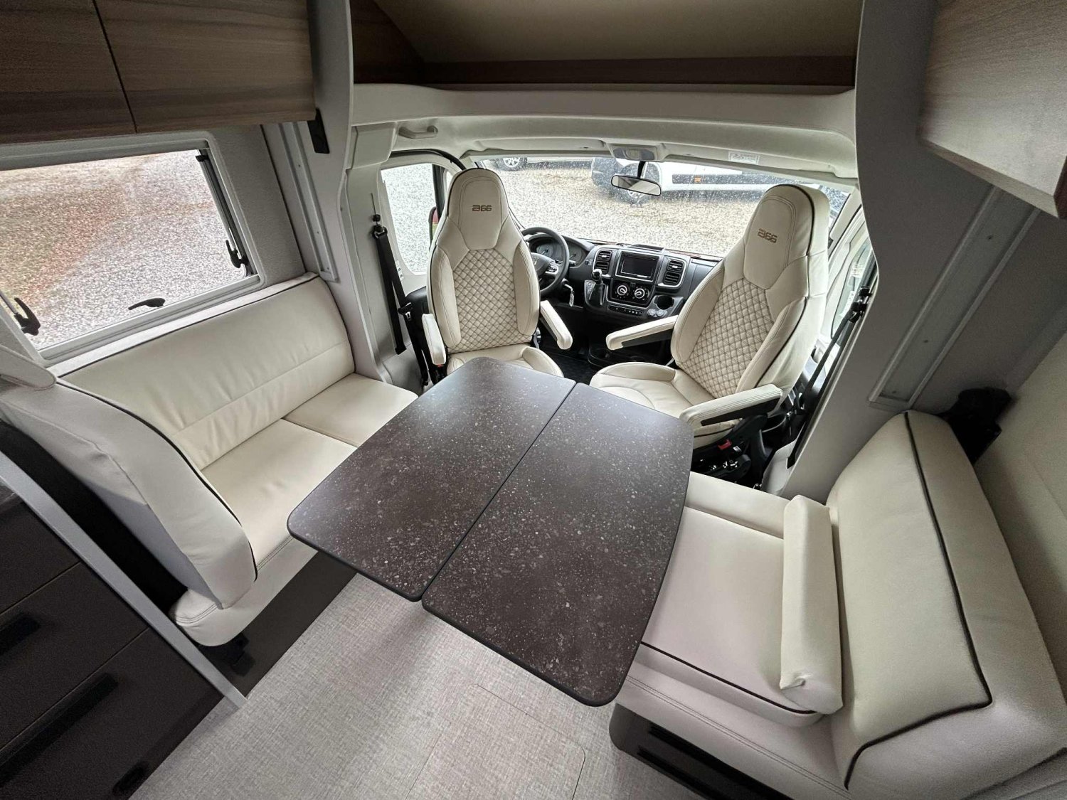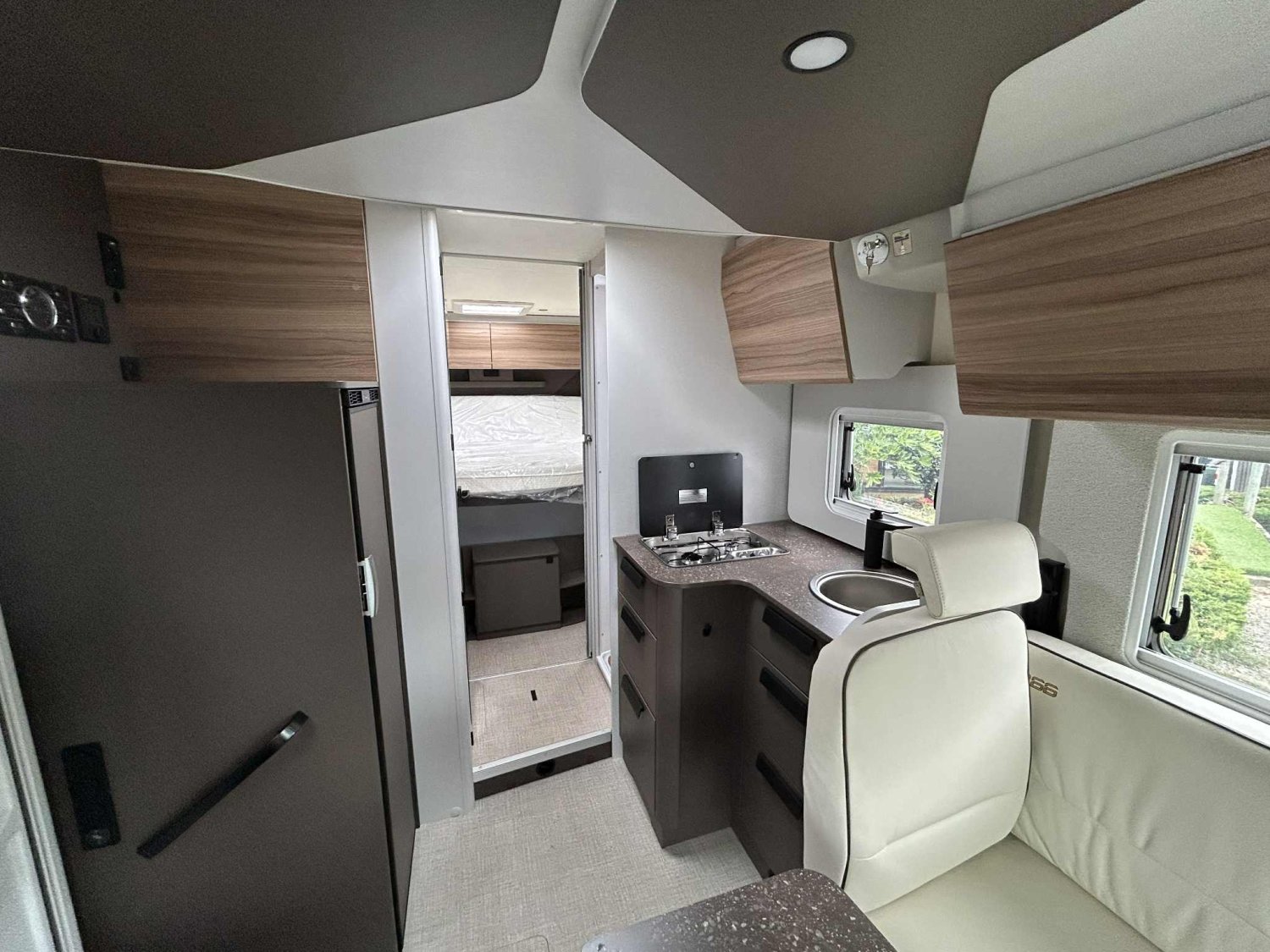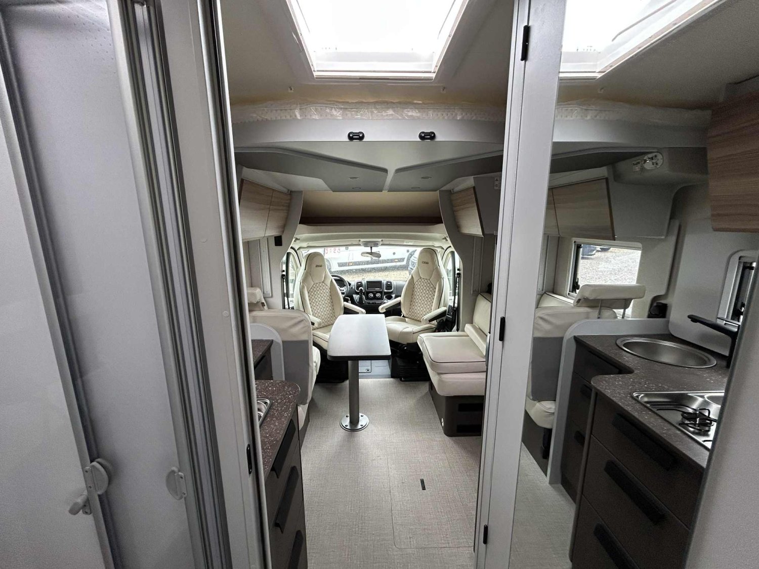 DE SERIE, BVA140 CV, Jantes alu 16 '' bi colores, Station mltimedia, Lit pavillon électrique au dessus de la dinette, Caméra de recul, Batterie lithium, Porte d'entrée XL, Réfrigérateur à compression 131.5L
