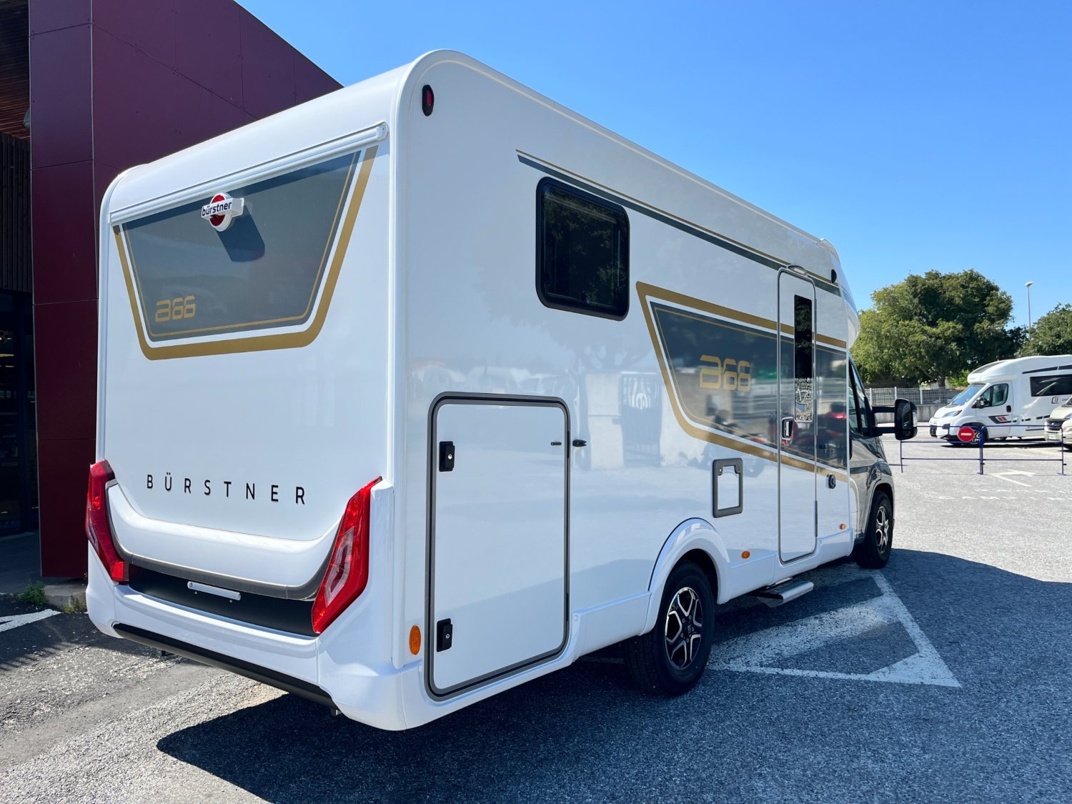Le **Bürstner B 66 T 732 TD**, motorisé par le performant **Fiat 2,2 L 140 ch avec boîte automatique**, offre une conduite fluide et un confort haut de gamme pour 4 personnes, grâce à son agencement spacieux et fonctionnel, son lit central, son salon convivial face-face, sa cuisine entièrement équipée, sa salle d’eau avec douche indépendante, et ses nombreux équipements de série pensés pour voyager en toute sérénité.