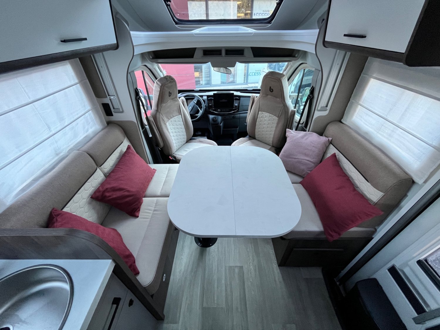 Le camping-car Benimar Tessoro 497, basé sur un châssis robuste de Ford et animé par un moteur 2,0 litres de 165 chevaux associé à une boîte automatique, allie puissance et confort de conduite, tandis que son intérieur moderne et lumineux, doté d’une implantation avec lit central et salon face-face, offre un espace convivial et pratique pour voyager à deux ou en famille, en profitant pleinement de chaque étape avec sérénité et bien-être.