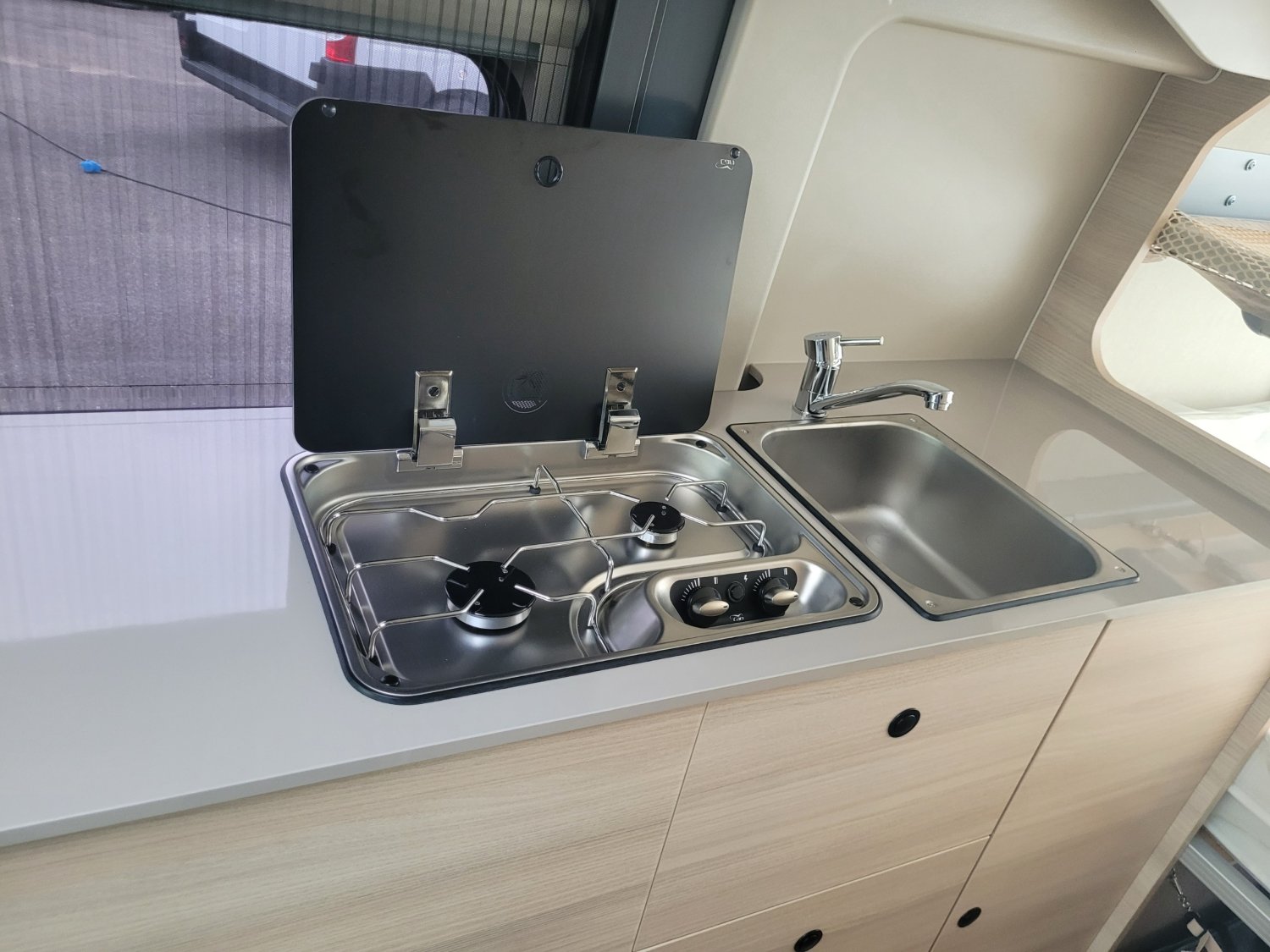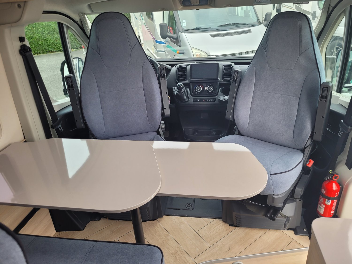 Extension table dinette, Fenêtres double vitrage avec combiné stores moustiquaire, Fix and go, Jantes acier 15", Rétroviseurs électrqiues dégivrants, Hill descent control, Pneus 4 saisons, Prises USB/USB-C, Rideaux d'isolation thermique des baies de cabine, Régulateur / limiteur de vitesses, Sièges de cabine pivotants réglables en hauteur, Start & Stop, Traction +, Marche pied électrique, Lanterneau panoramique (ou double lanterneau), Salle d'eau avec fenêtre, Pré-disposition panneau solaire (MPPT ready), Pré-équipement TV, Précâblage caméra de recul, Climatisation manuelle de cabine, Double airbag, ESP, Baies arrières ouvrantes, Chauffage au gaz
