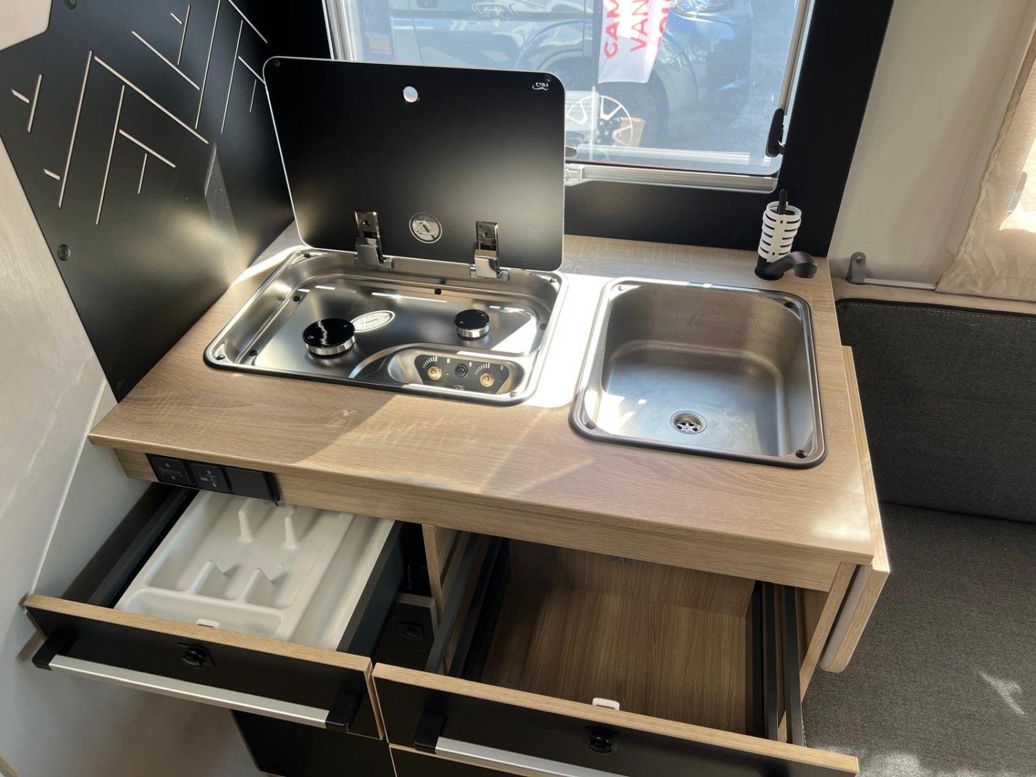PACK ACCESSOIRES:, STORE EXTERIEUR, PANNEAU SOLAIRE 140 W, MOUSTIQUAIRES DE PORTES, BOITE AUTOMATIQUE 8 RAPPORTS, CHASSIS FORD 3T5, MOTORISATION 165CV, STORE INTERIEUR DE CABINE, PACK LOOK :, JANTES 16"