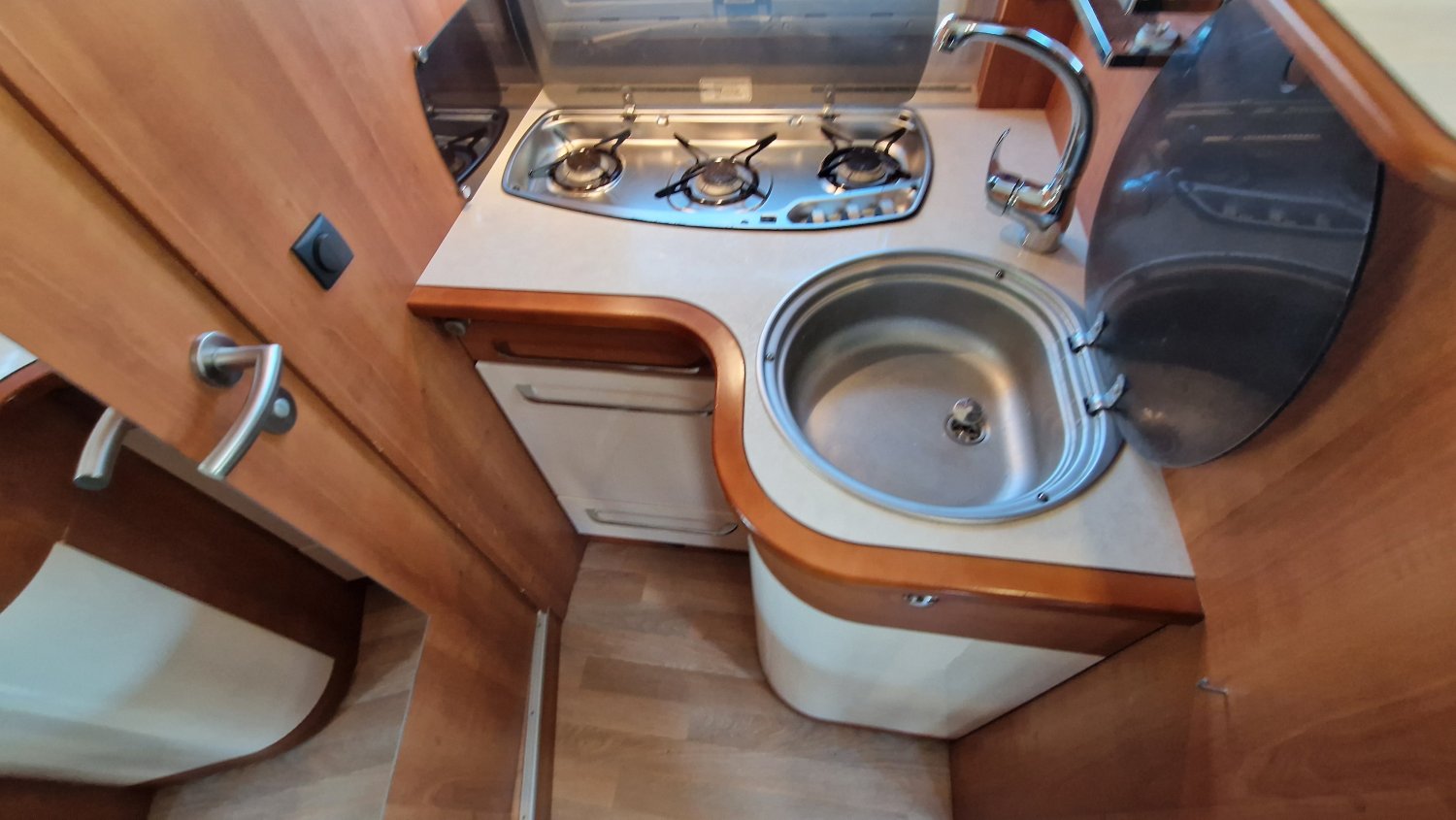 CHAUFFAGE COMBI TRUMA 6, STORE EXTERIEUR 4M, GAZINIERE 3 FEUX, TIROIRS FERMETURE RALENTIE, PORTE SEPARATRICE, CUISINE EN L, DOUCHE ET WC SEPARES, ECLAIRAGE LED, HOTTE ASPIRANTE, MOUSTIQUAIRE DE PORTE CELLULE, PORTE VELO, REFRIGERATEUR TRI MIX, STORES PLISSES DE CABINE, DOUBLE CLOISON DE SEPARATION, MARCHEPIED INTÉGRÉ