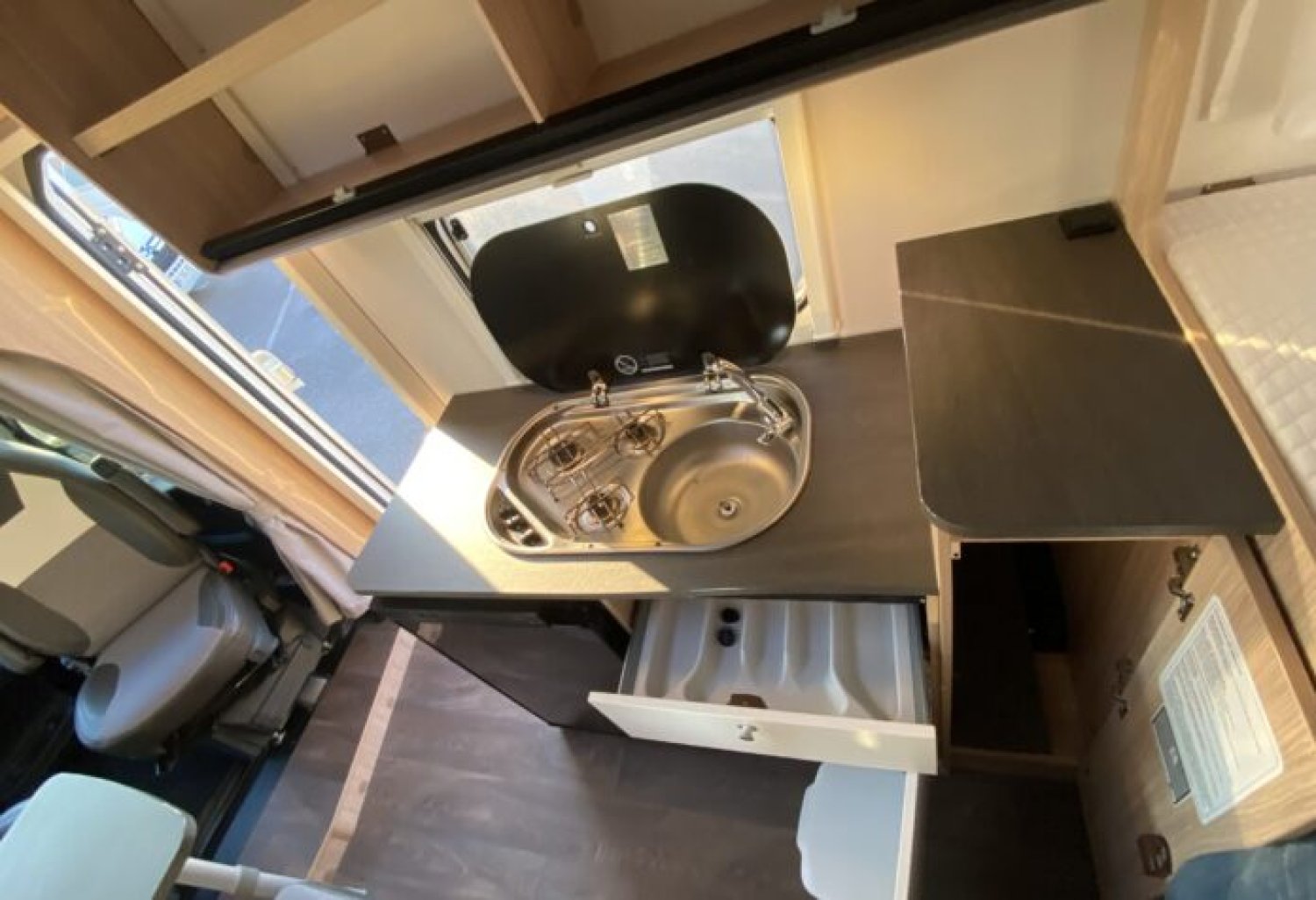 Camping-car compact (L 6,69 m x l 2,14 m) sur porteur Jumper 2.2L 140 ch., idéal pour voyager confortablement à deux.