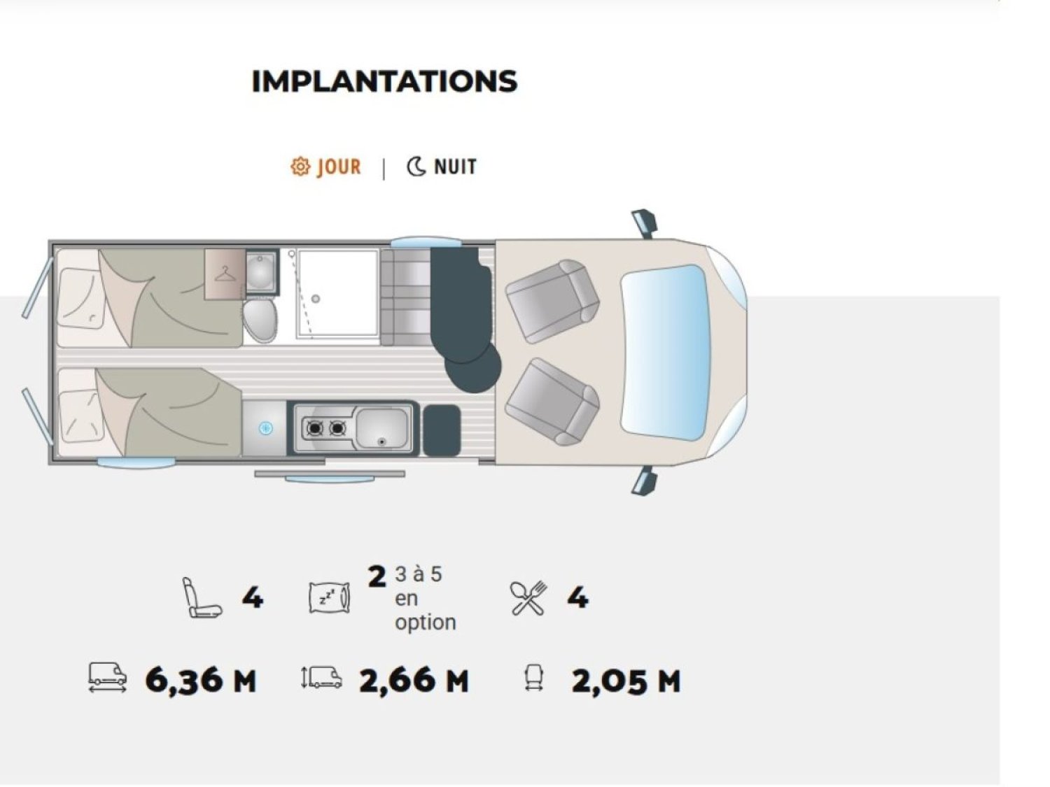SIEGES REGLABLE EN HAUTEUR, STORE EXTERIEUR, TRACTION +, VERROUILLAGE CENTRALISE A DISTANCE, AIDE A LA CONDUITE ESP ABS, COMMANDES RADIO AU VOLANT, PANNEAU SOLAIRE, REFRIGERATEUR A COMPRESSION 138L, RESERVOIR CARBURANT 90L, RETROVISEURS ELECTRIQUES ET DEGIVRANTS, VITRES TEINTEES A COMMANDE ELECTRIQUE, COMBINE CHAUFFAGE/CHAUFFE-EAU TRUMA D4 GASOIL AVEC KIT ALTIT, DOUCHE EXTERIEURE, MOUSTIQUAIRE PORTE LATERALE, TABLEAU DE CONTROLE+CHARGEUR DC-DC, CAMERA DE RECUL, Marche pied electrique