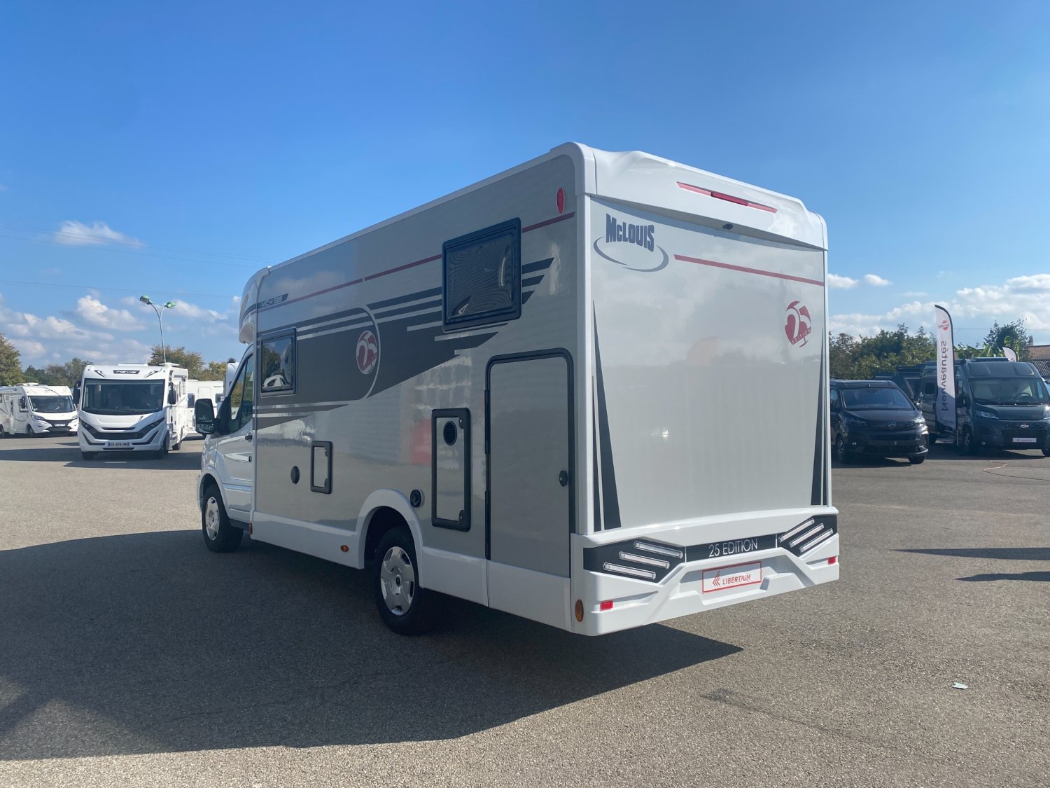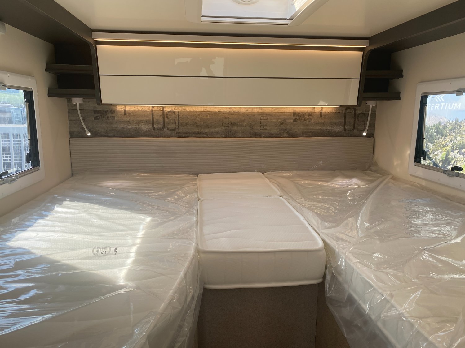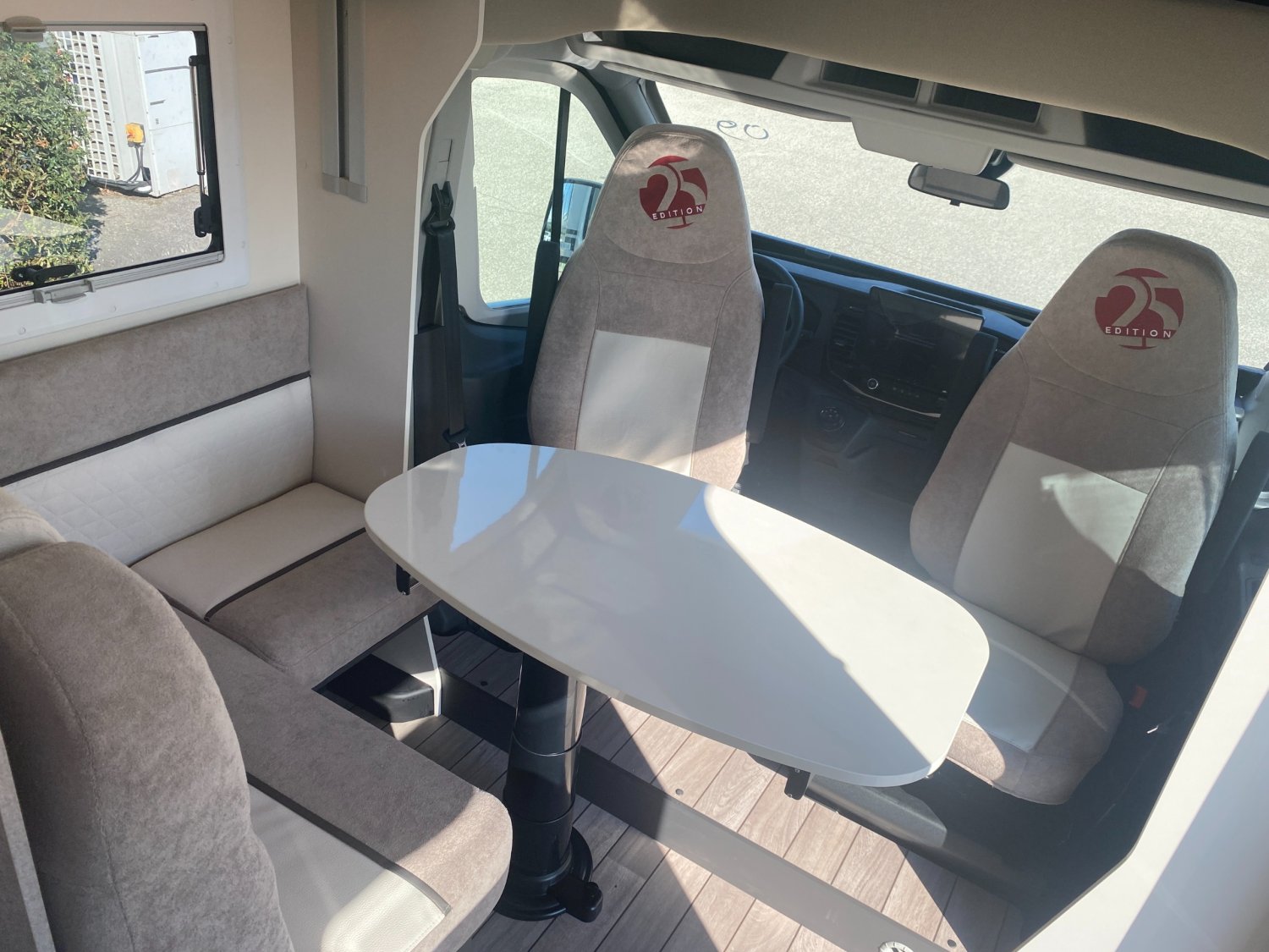 Le Slim 339 est un profilé avec une largeur réduite à 2.15m et une longueur de 6.69m. Il dispose d'une très grande soute garage avec des lits jumeaux, faciles d'accès. Sa salle de bain type Vario permet un gain de place à l'intérieur du véhicule. La version série limité 25eme Edition offre un niveau d'équipement important et une motorisation de 165 cv avec boite automatique.